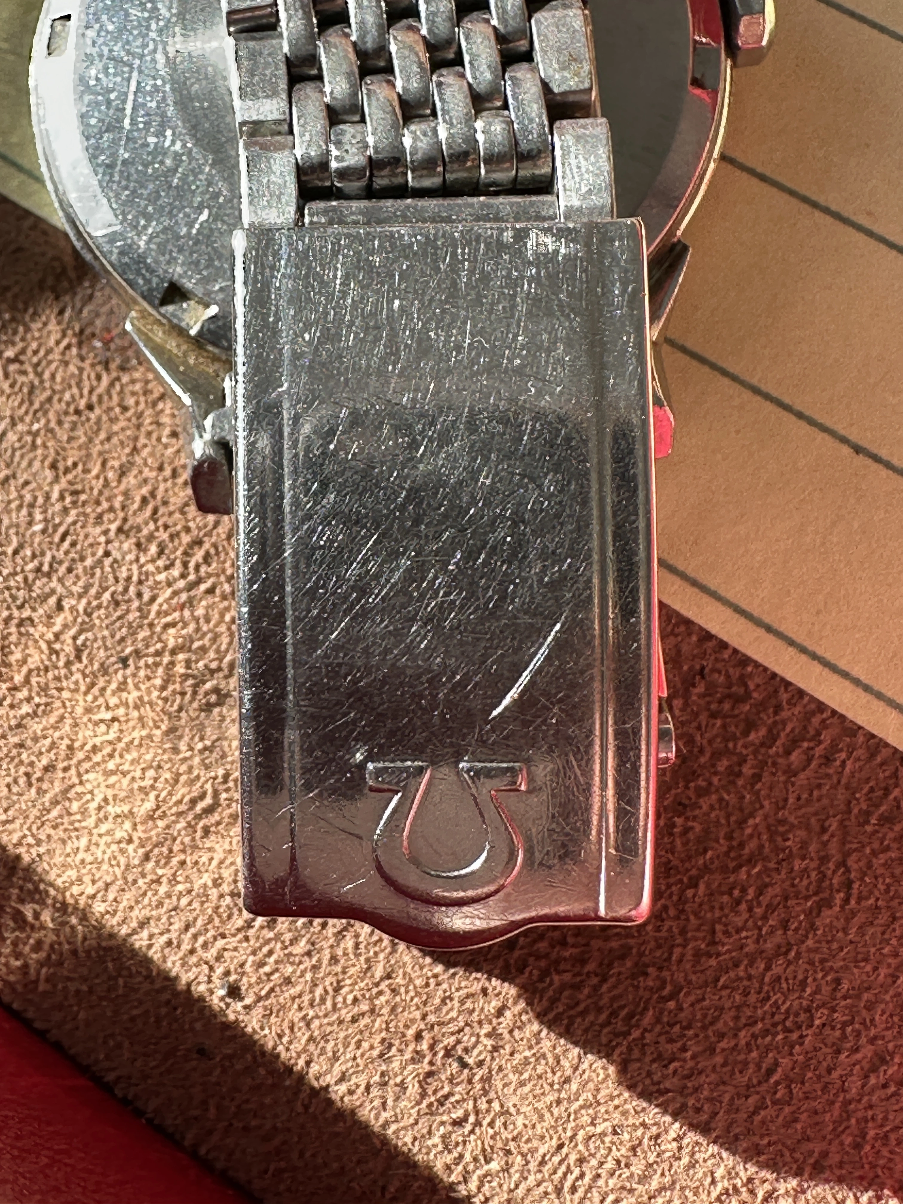 Comes with a period correct but not original to the watch Constellation Box which is missing the inside part. Box has scuffs and scrapes