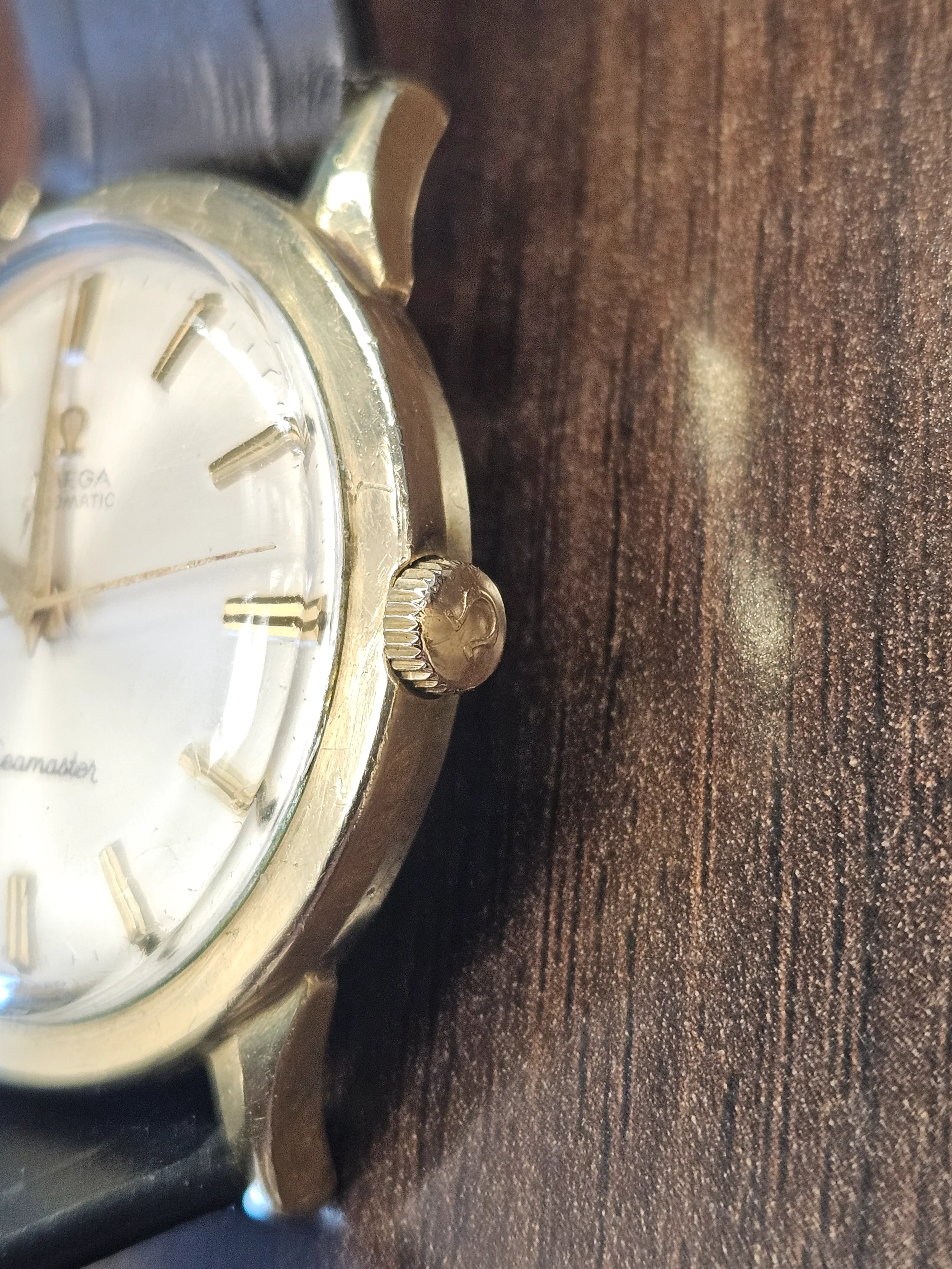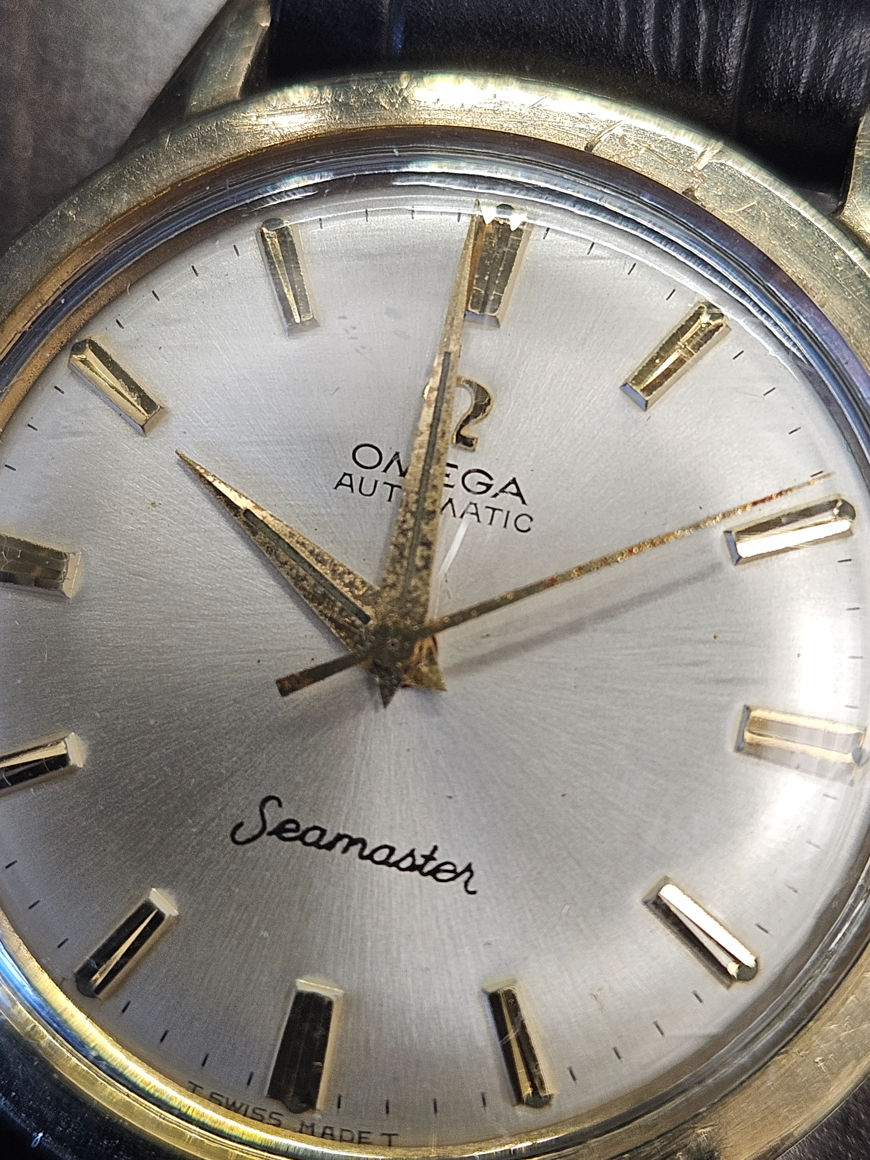 ·Picked up this mid-60s Omega Seamaster Automatic in a US-cased 14K gold-filled case (J. Wadsworth), with a nicely preserved silver sunburst dial signed Omega Automatic Seamaster and correct? applied indices. Caseback is engraved “25th Century Service Award - Roy Weaver - 1966,” which lines up well with the era. Inside is an Omega automatic marked Seventeen Jewels, Unadjusted (US import), running at 19,800 bph. On the timegrapher it’s currently about -30 s/day with very low beat error (~0.3 ms), though amplitude is modest (~150°), so a service is likely due. Crown appears Omega-signed and period-correct. Would appreciate thoughts on dial originality, exact movement ID, and whether the case/dial combo looks right for a US-market Seamaster of this period.