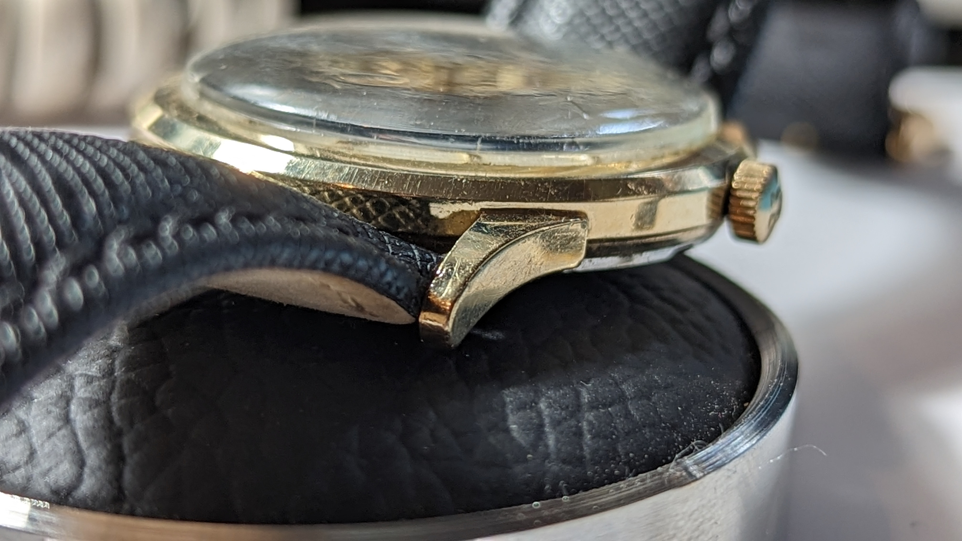 Movement: Caliber 560, what some consider to be a rare US Only movement as only 3,000 (!) were reportedly made for the US Market to bypass increasing taxes on imported Swiss watches. Read more HERE at Desmond's blog. Serial number 27632793 dates it to 1965 putting it close to the end of the production run in 1967. Running as adjusted on the timegrapher but it could probably use a service as it was not done while I owned it not prior to me purchasing it. Appears to be a tiny bit of rotor rub at one point. As you may or may not notice, there was some damage around the movement holder screws that I had repaired recently. (Receipt in hand.)