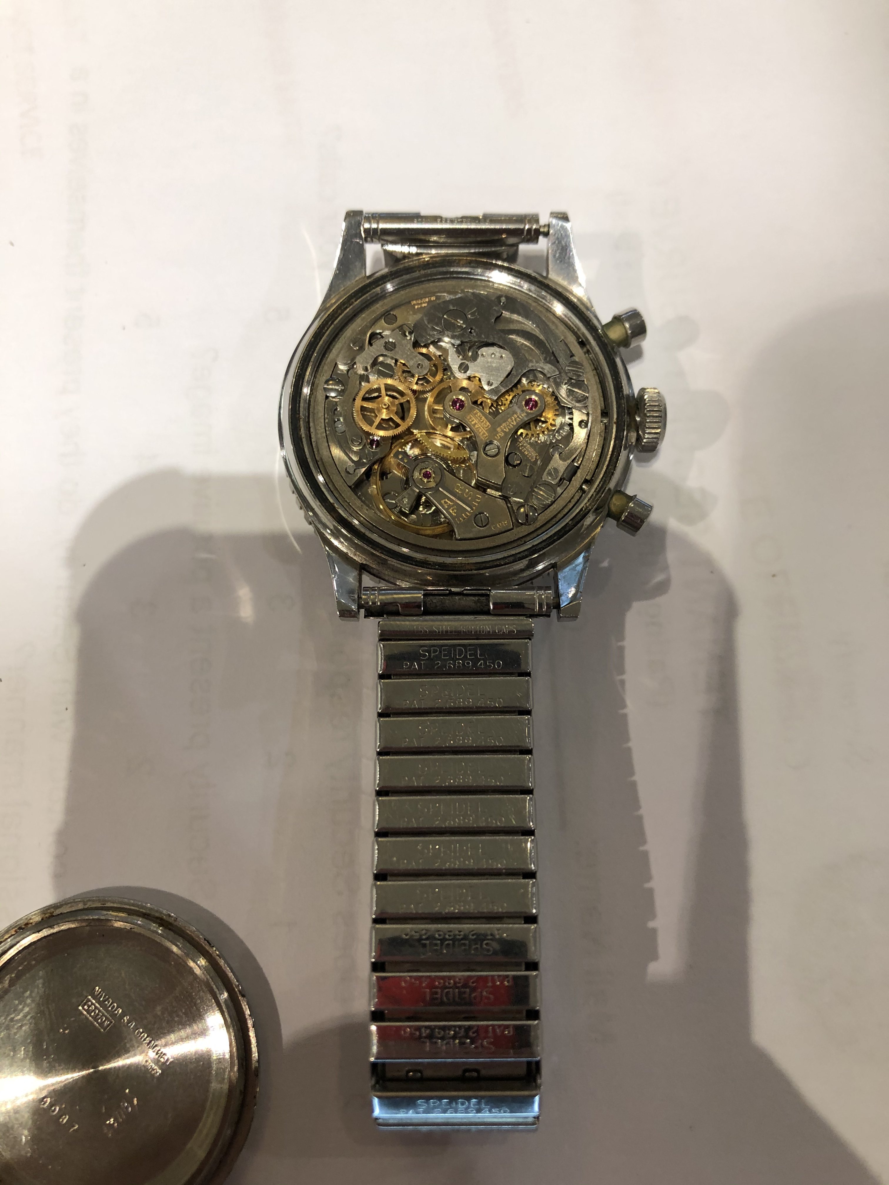 I have never seen that dial before, but it is essentially identical to a 1st-generation Nivada Grenchen-Croton CASD with the word "chronograph" instead of "chronomaster", suggesting that it may have a Venus 210 movement. Condition looks good from the photos shown. I would price it a bit lower than similar 1st-gen Nivada-Croton examples, which are reasonably common, so the OP should be able to find plenty of comps.