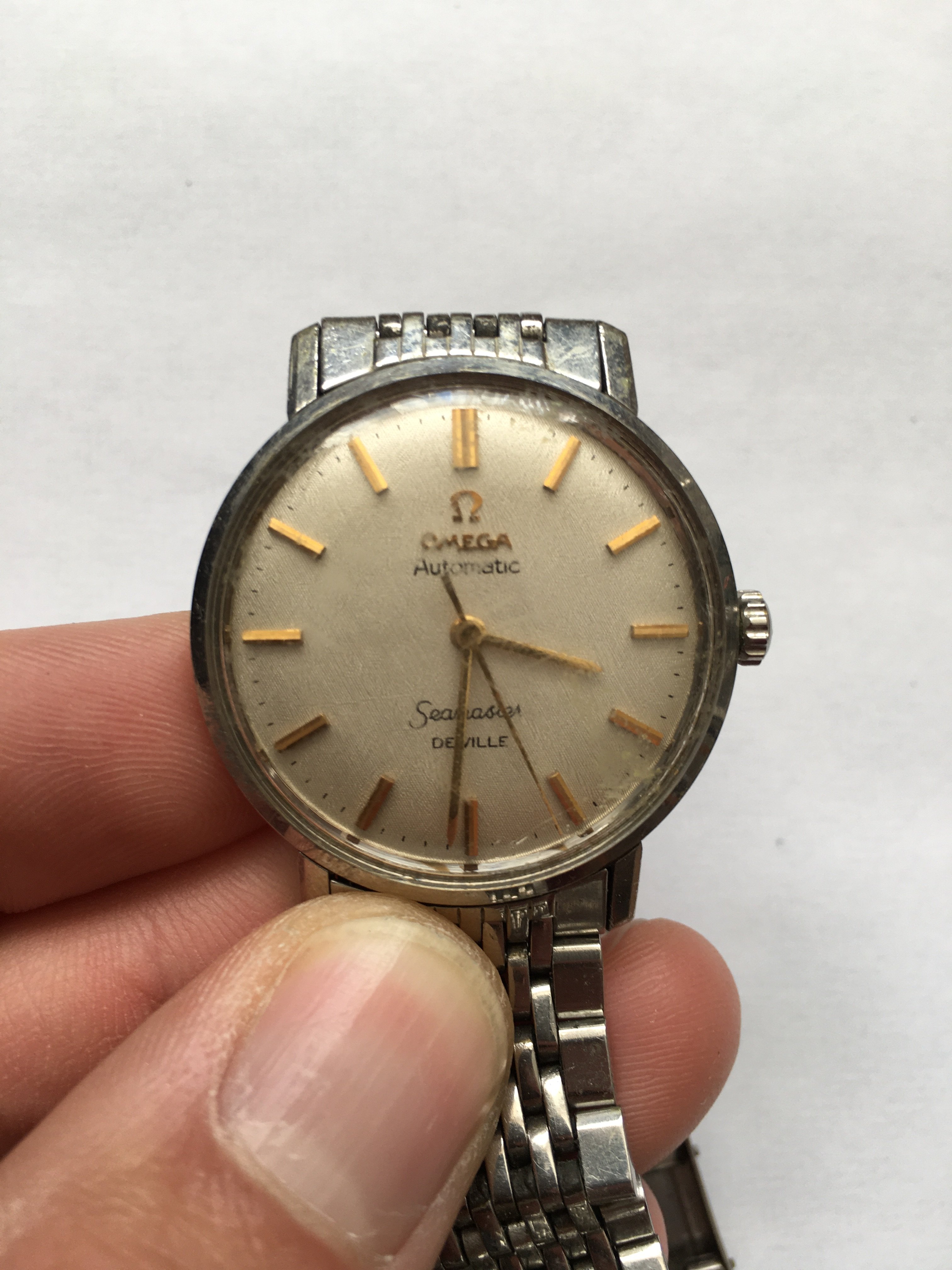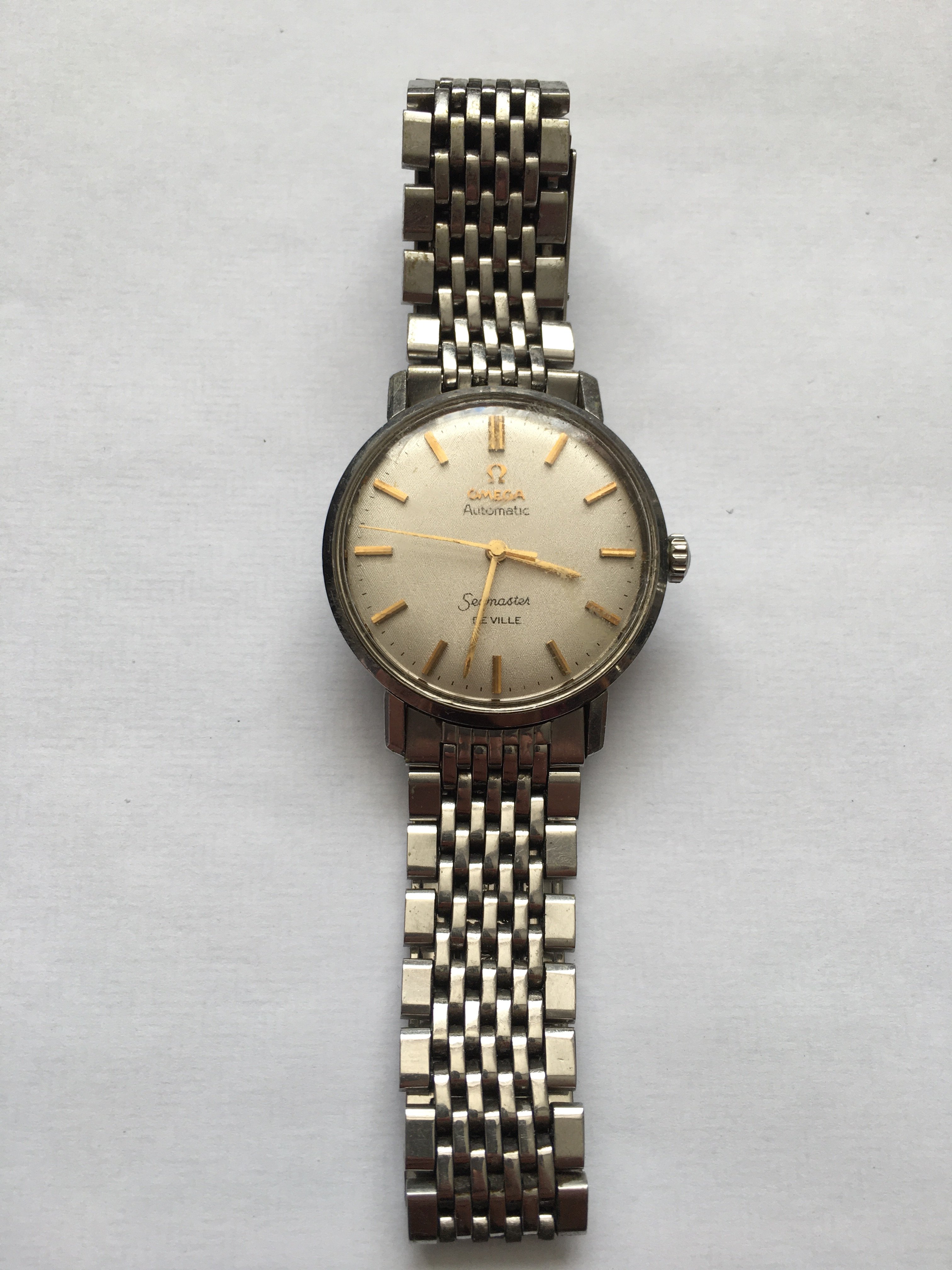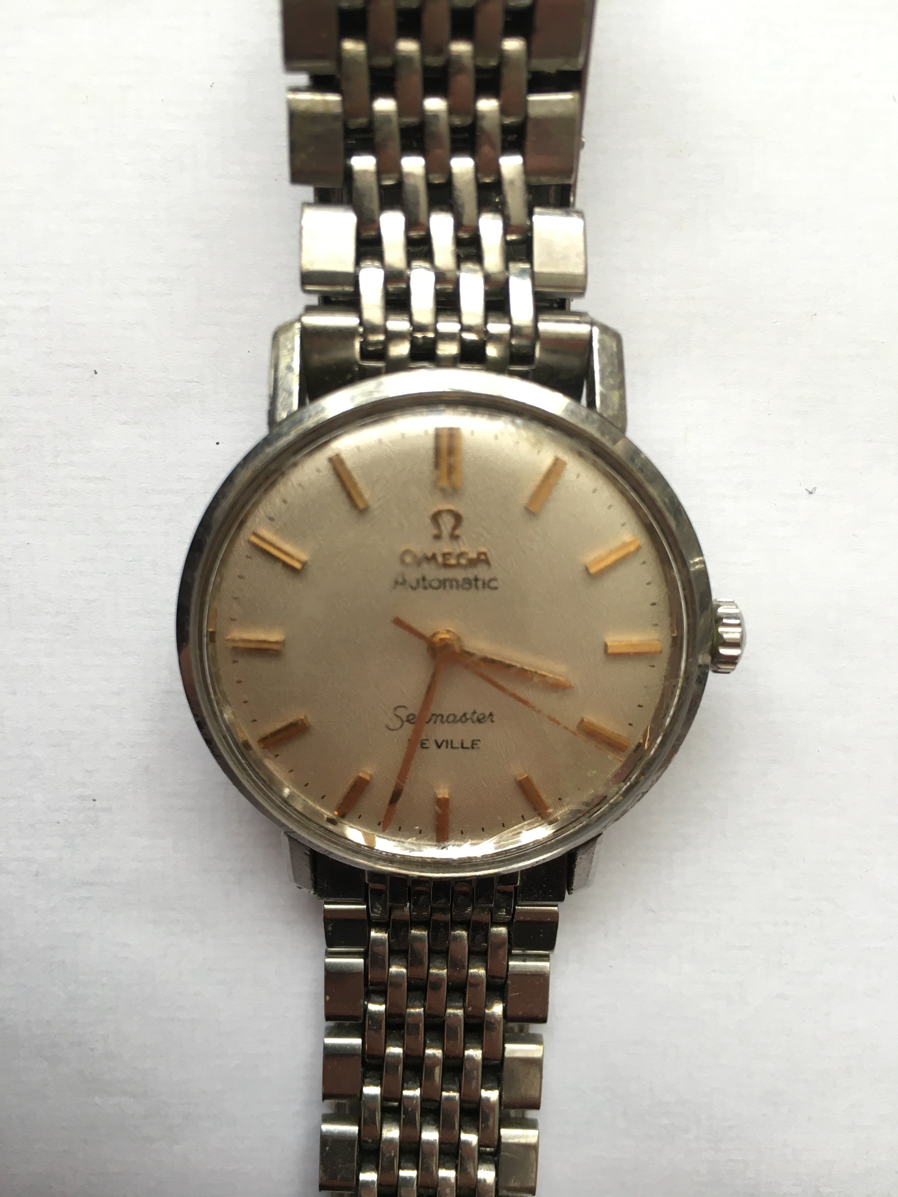 An elderly neighbour of my fathers recently gave him her late husbands watch. An Omega Seamaster De Ville. It’s well worn and has battle scars. No box or papers, but my father was told it was purchased new sometime in the 60’s.