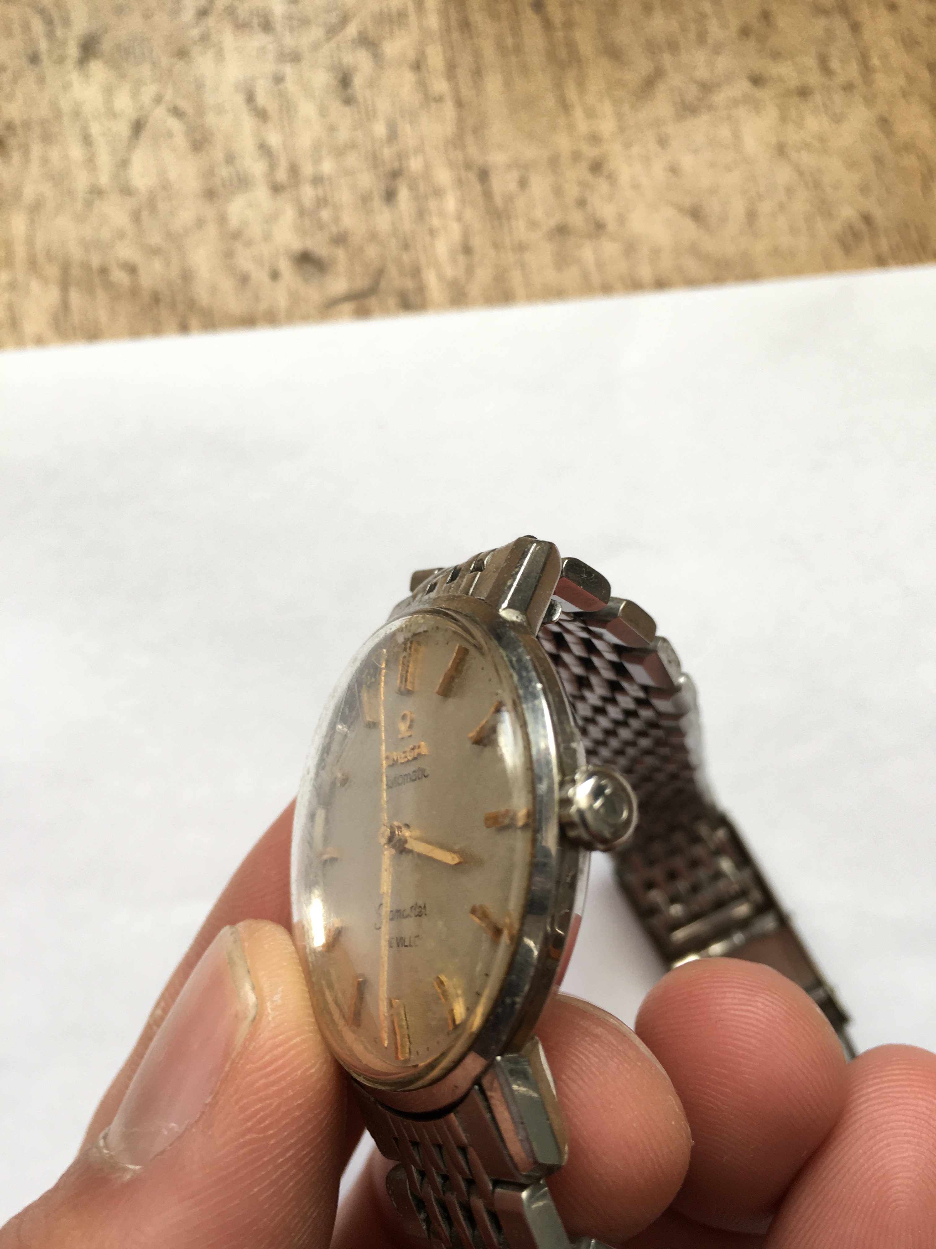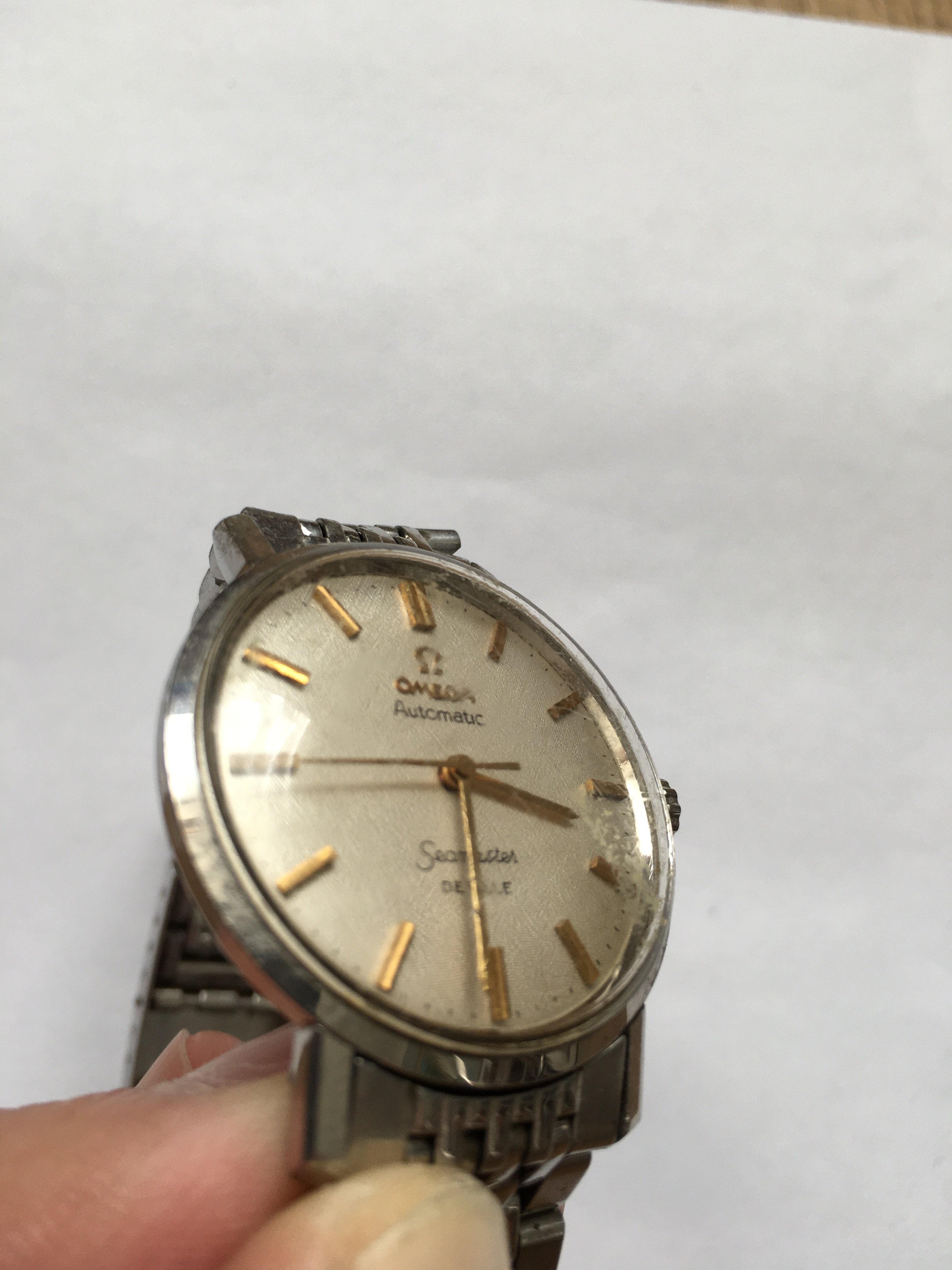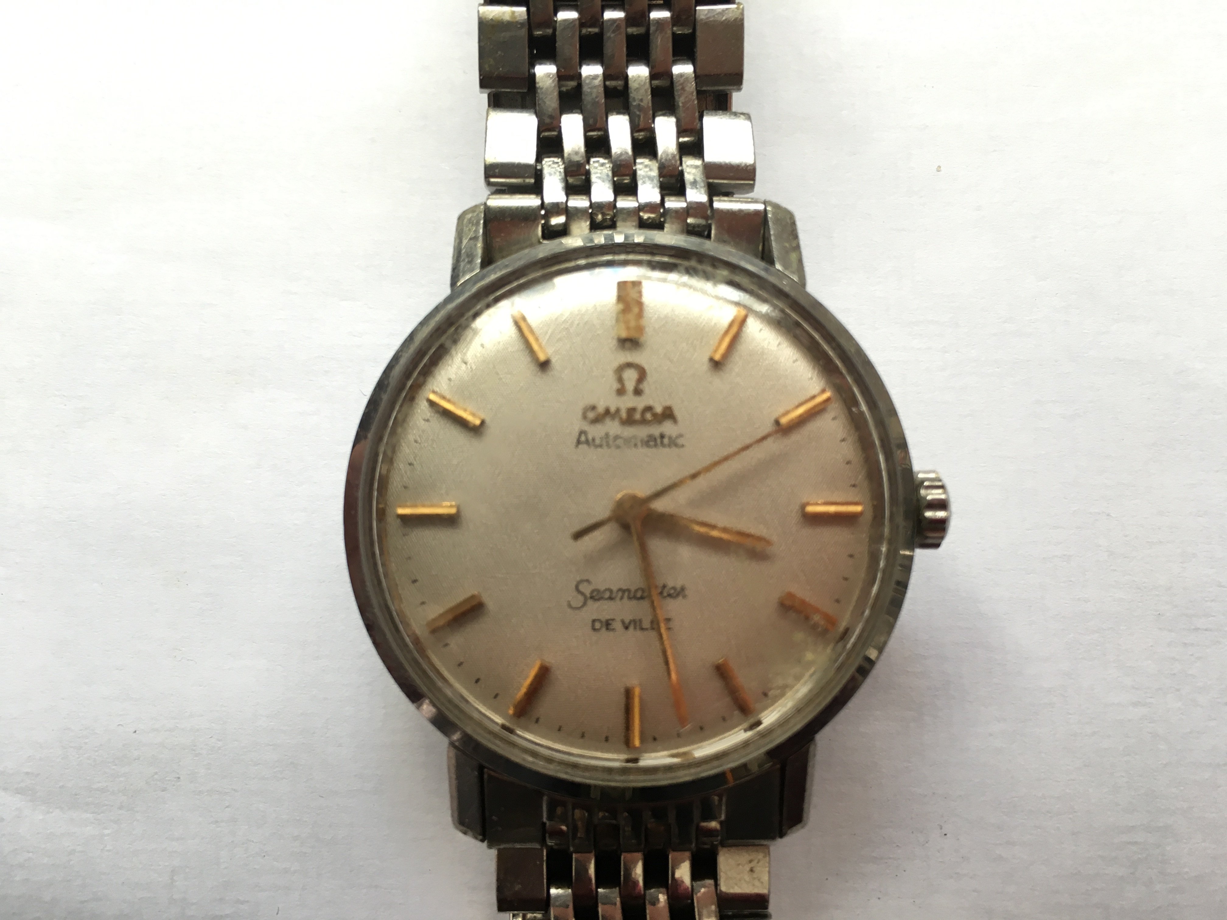 An elderly neighbour of my fathers recently gave him her late husbands watch. An Omega Seamaster De Ville. It’s well worn and has battle scars. No box or papers, but my father was told it was purchased new sometime in the 60’s.