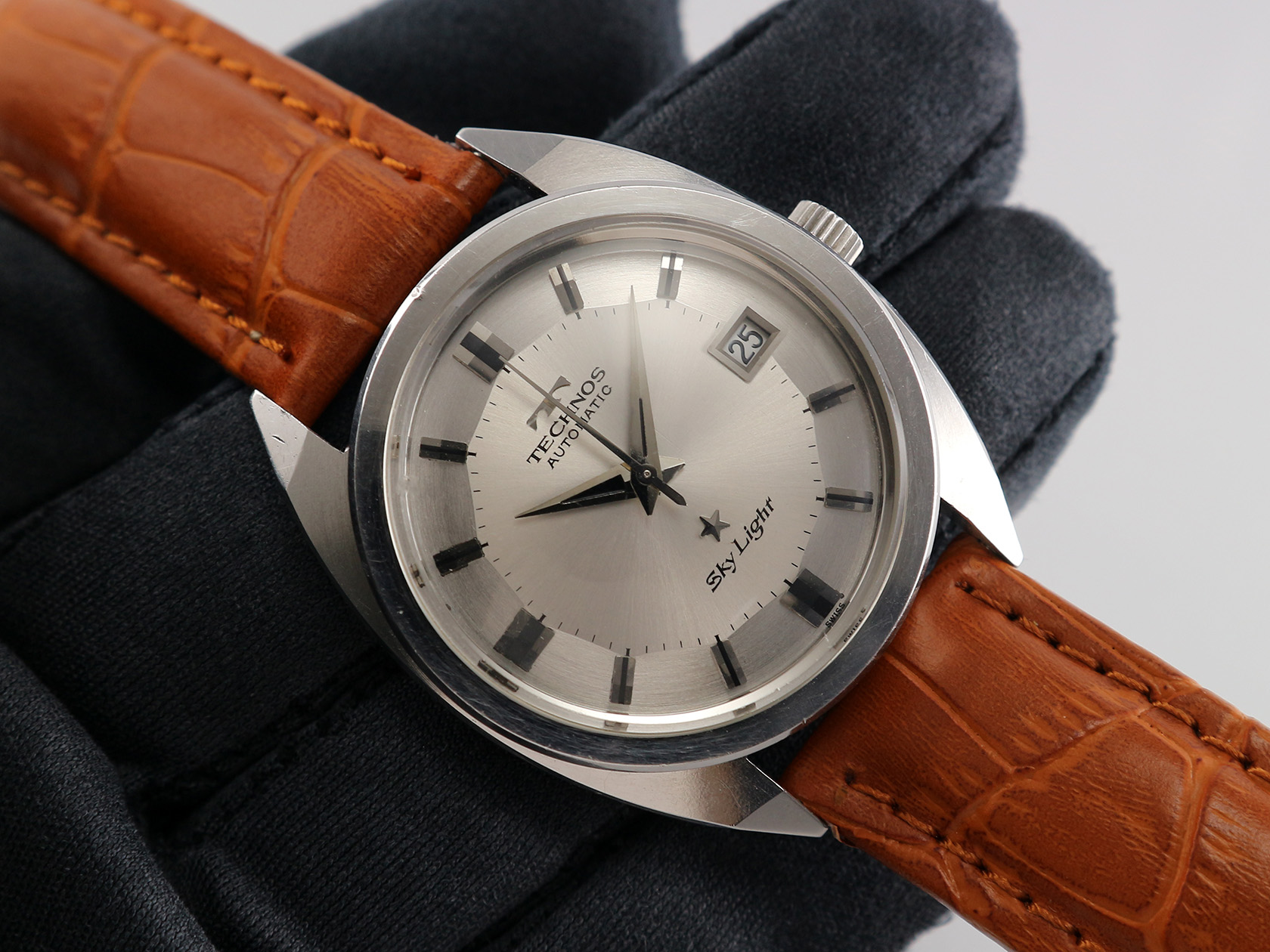 ·Up for sale is a very nice Technos Sky Light automatic watch. The silver pie-pan dial is in great condition. The SS case is unpolished and in great shape plus the original crown. It measures 35mm wide without crown and 42.5mm lug to lug, lug width is 19mm. Inside is the ETA 2522, service history unknown but still running strong & keeping decent time.