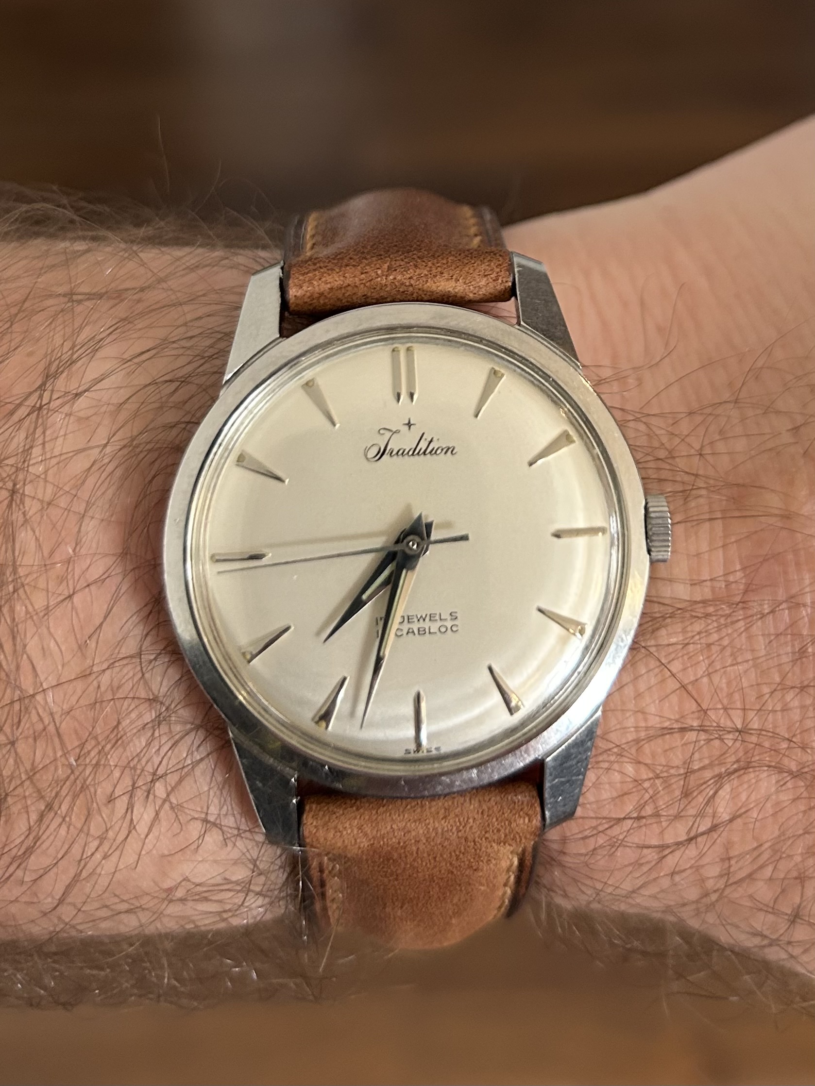 Posts 621 Likes 2,827 chadpowe11 ·Sep 8, 2024 Good day all, For sale is a 1960s Tradition watch. Case - Stainless steel 36mm Movement- AS1700 Price $200 USD shipping included