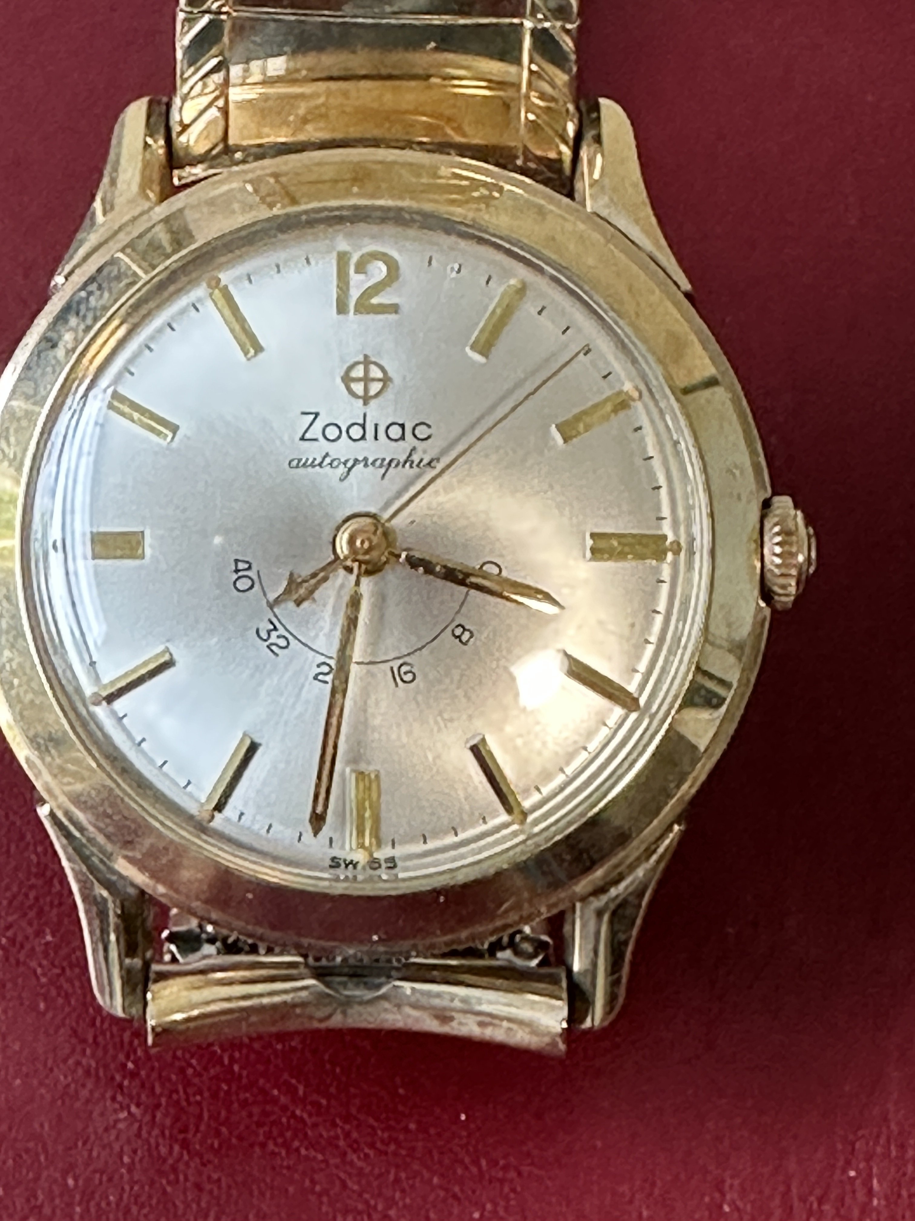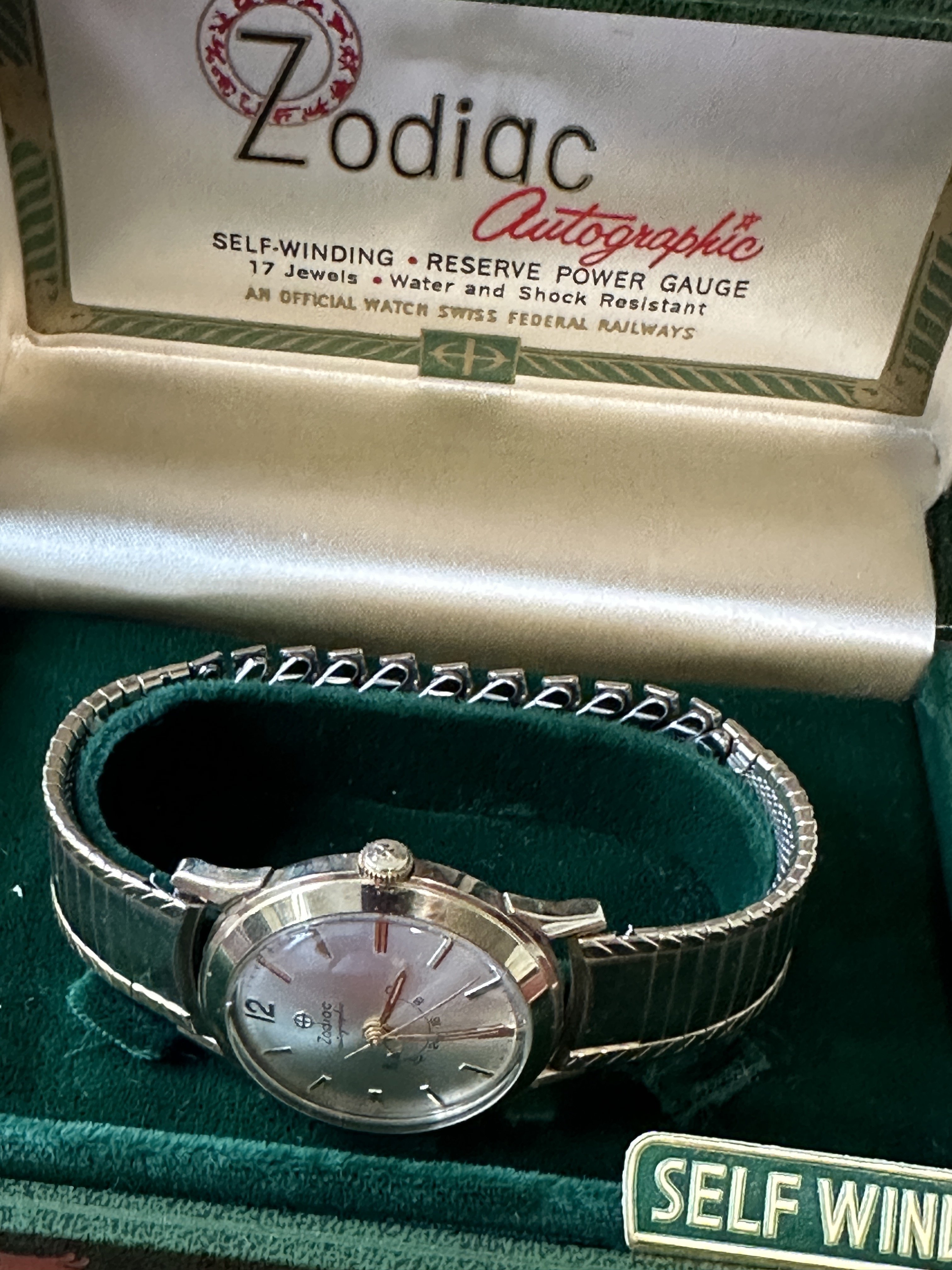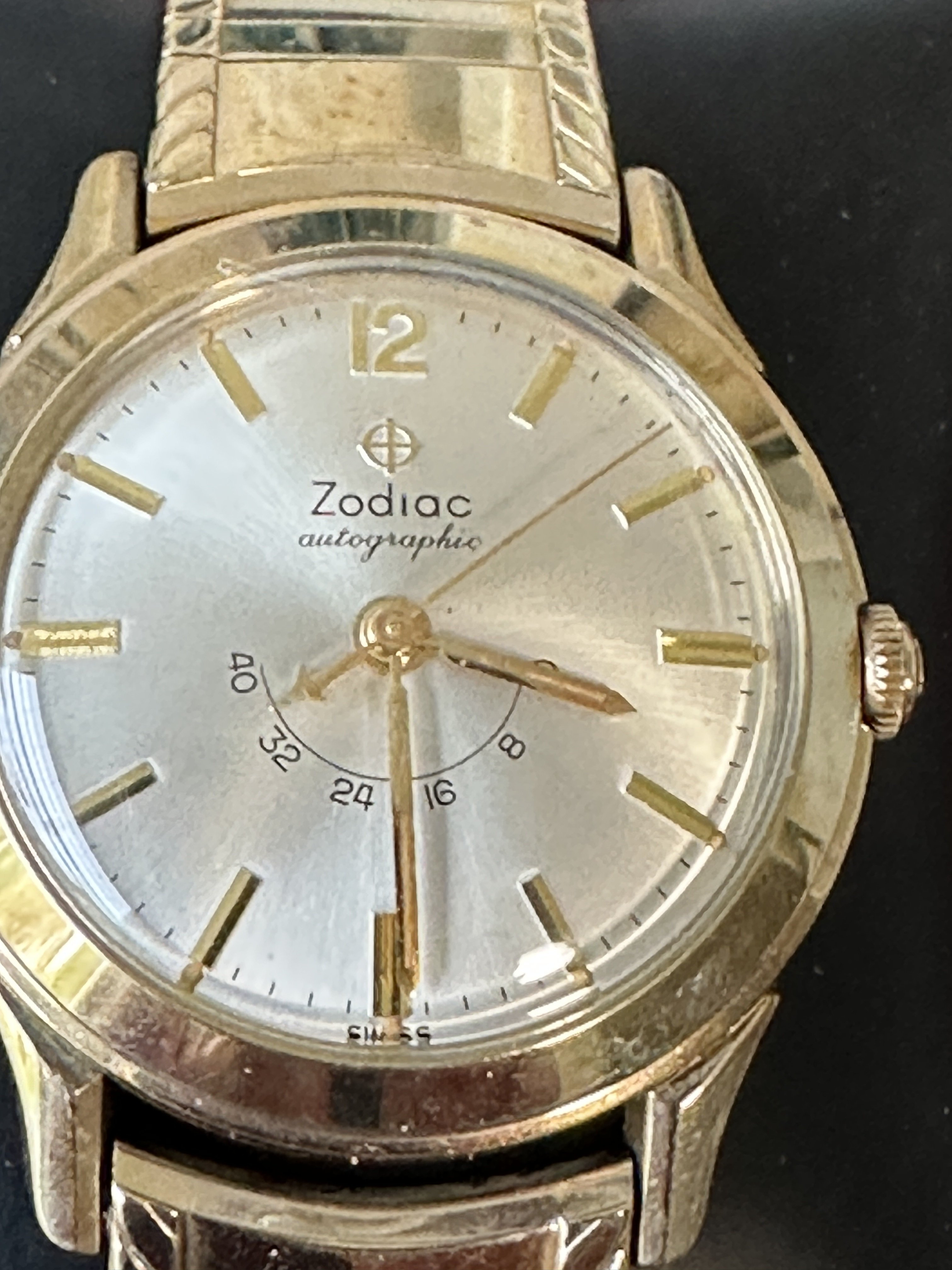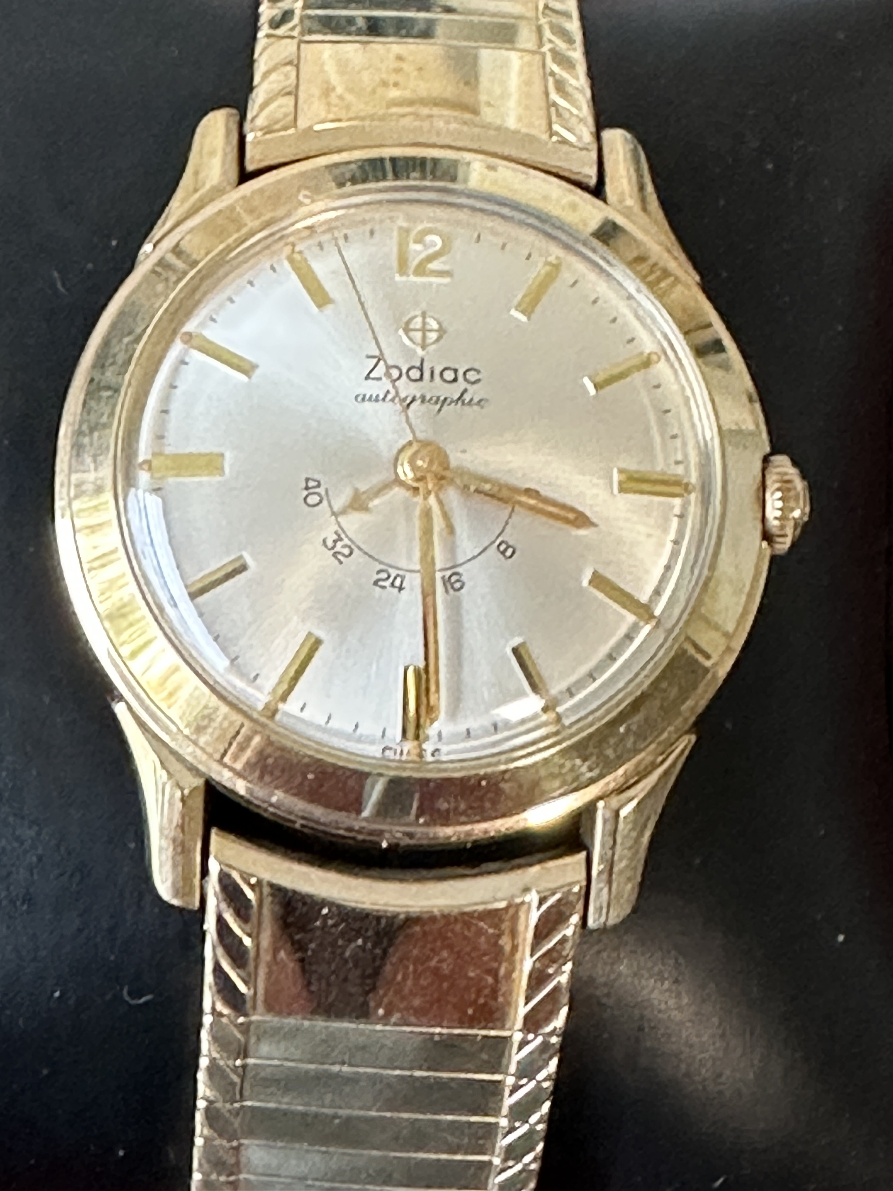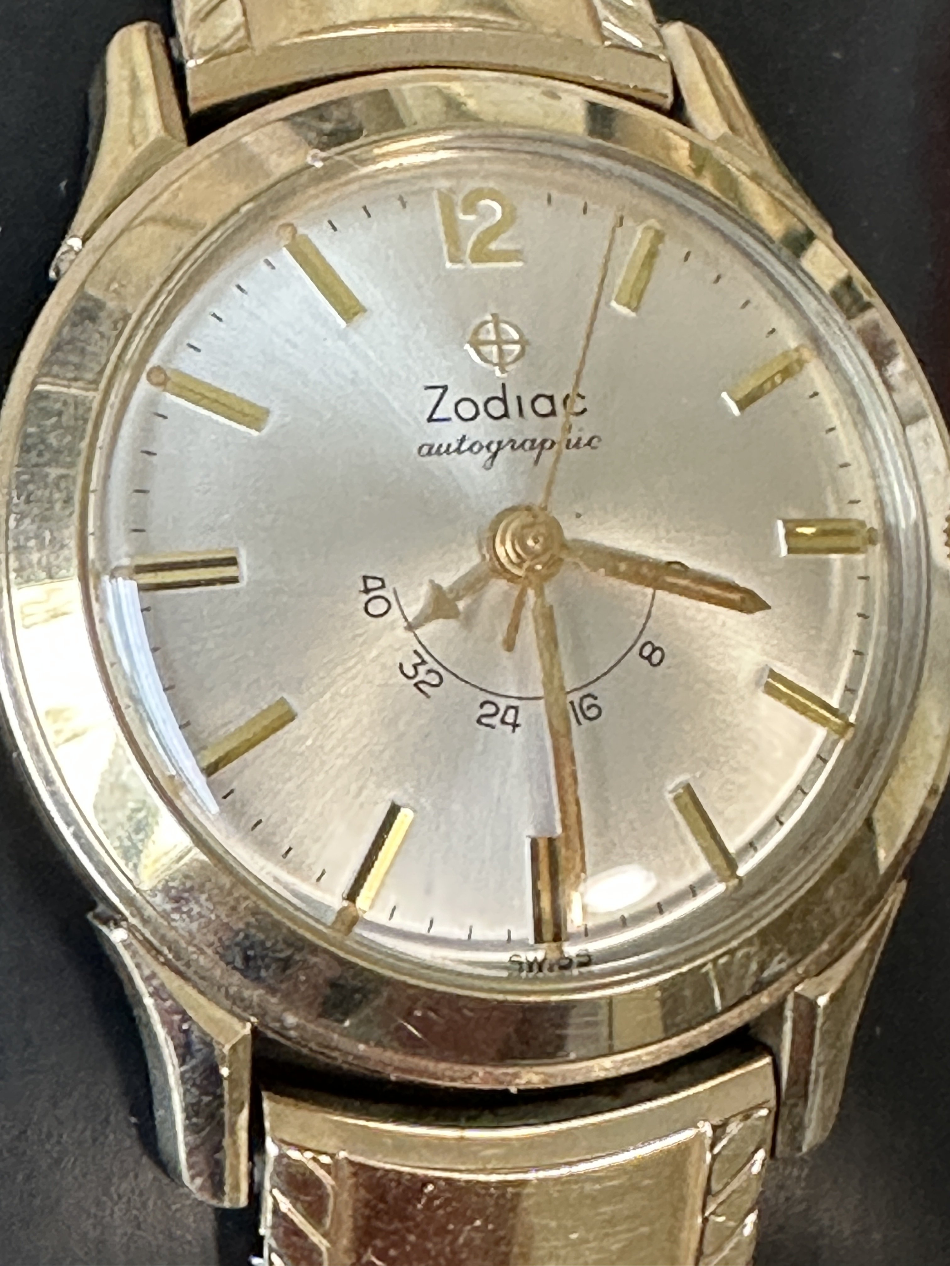 1960’s Zodiac Autographic Reserve Power Gauge Automatic Watch + Vintage Kreisler 10k Gold Filled and Steel Bracelet Uncommon Version