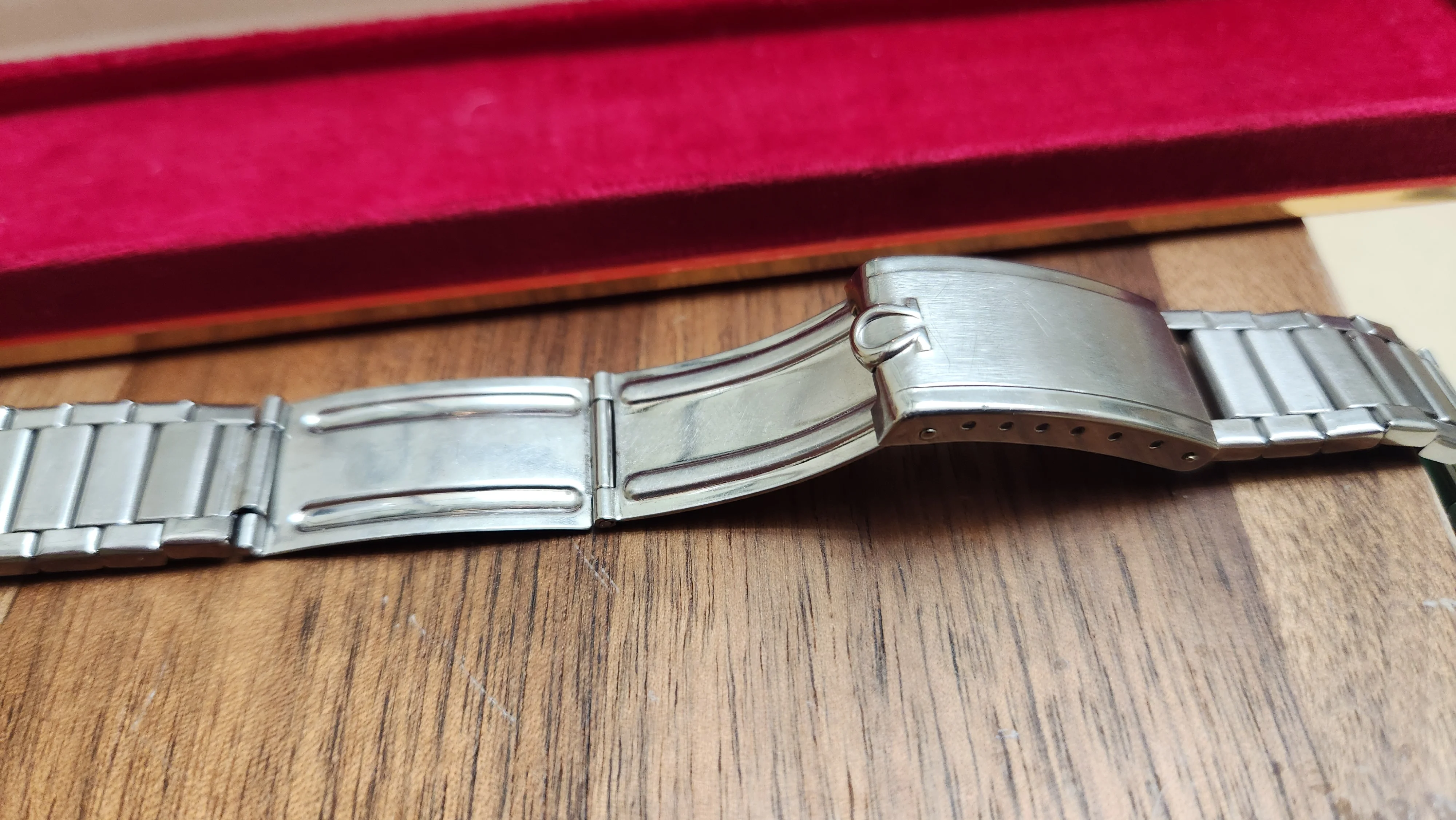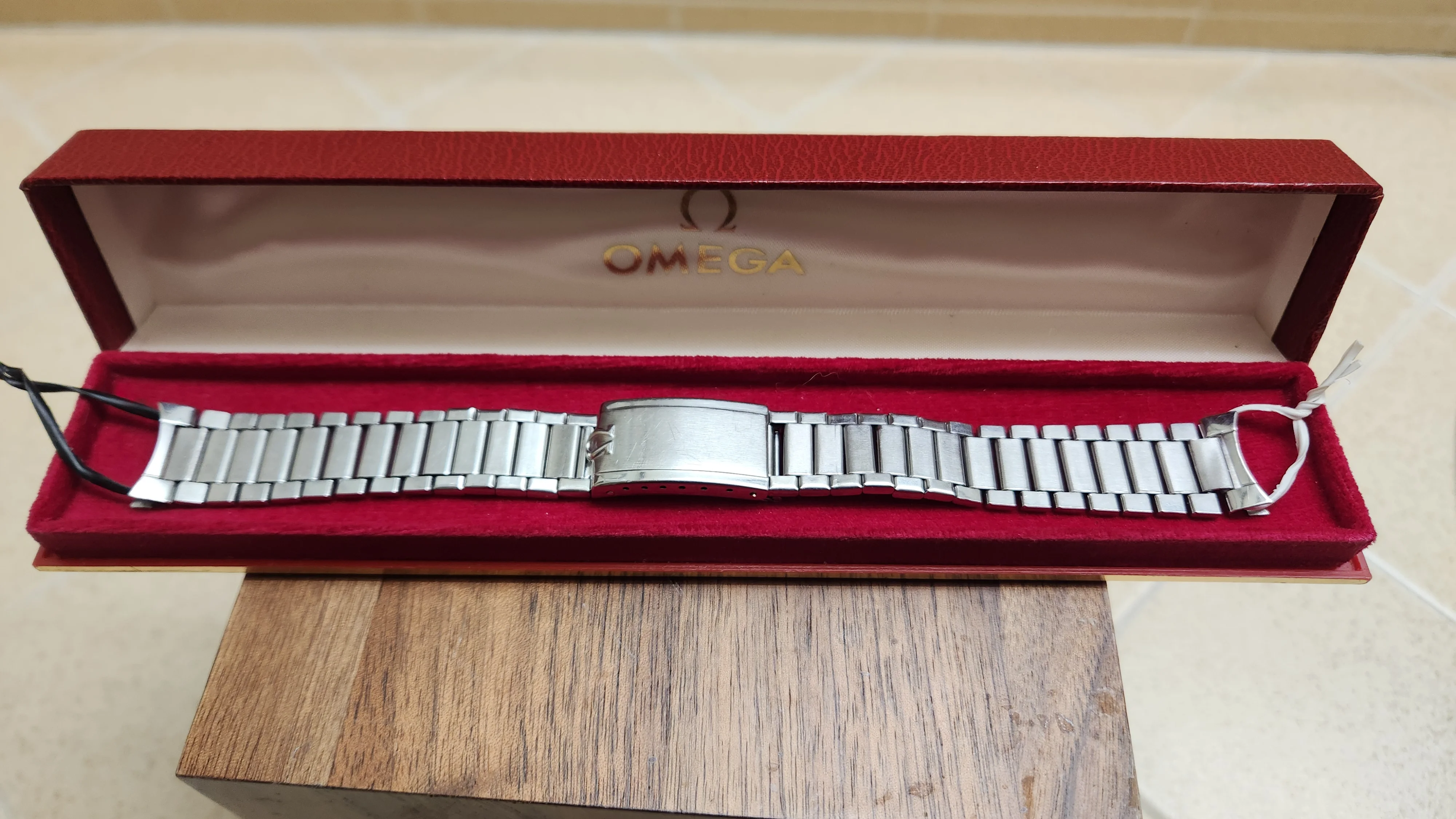 It will be shipped in this vintage red-felt lined Omega case.