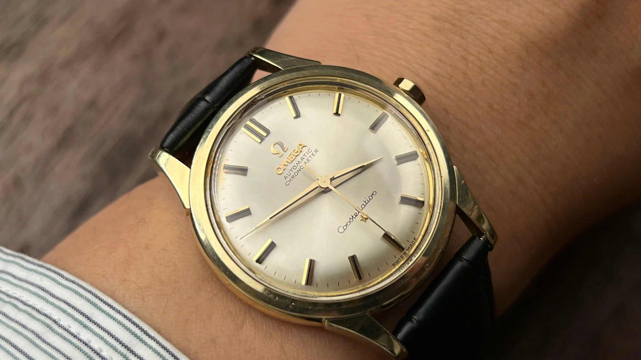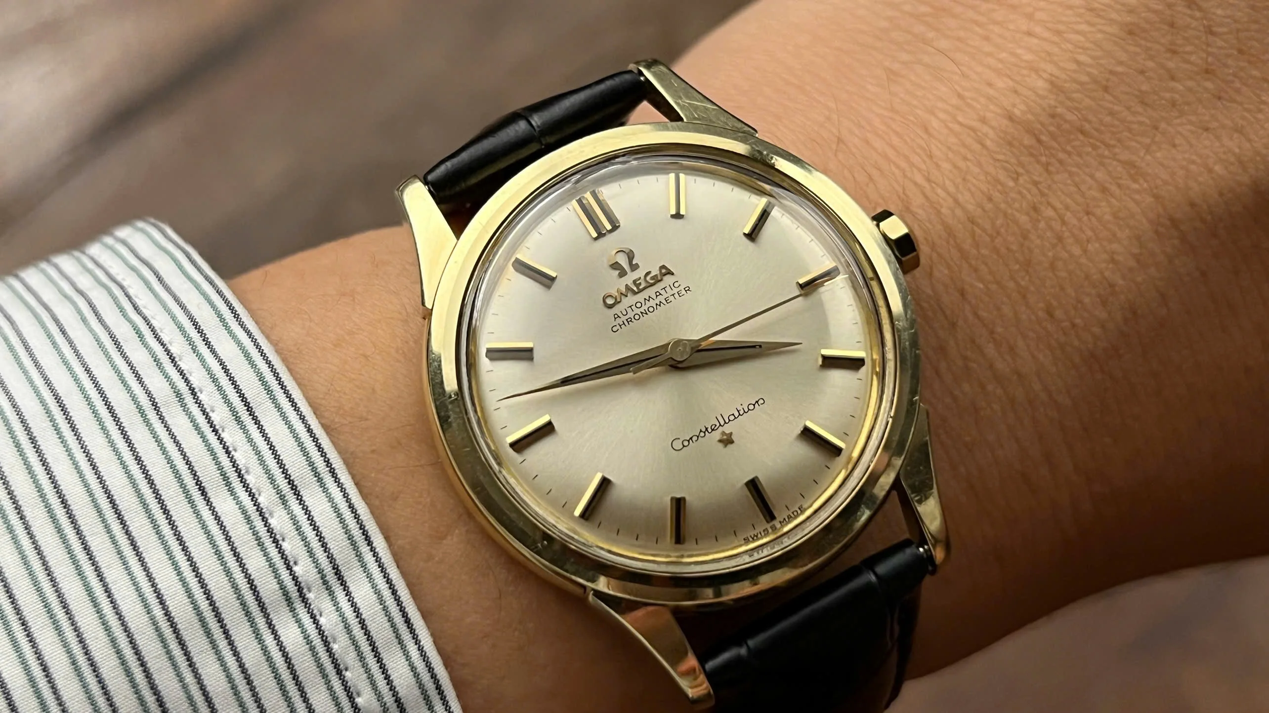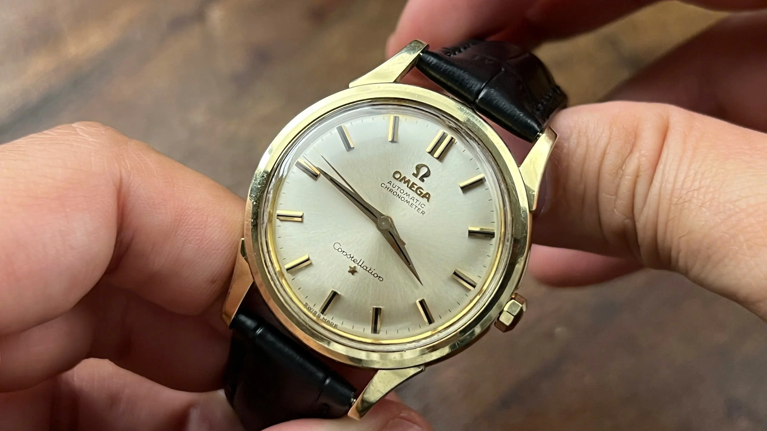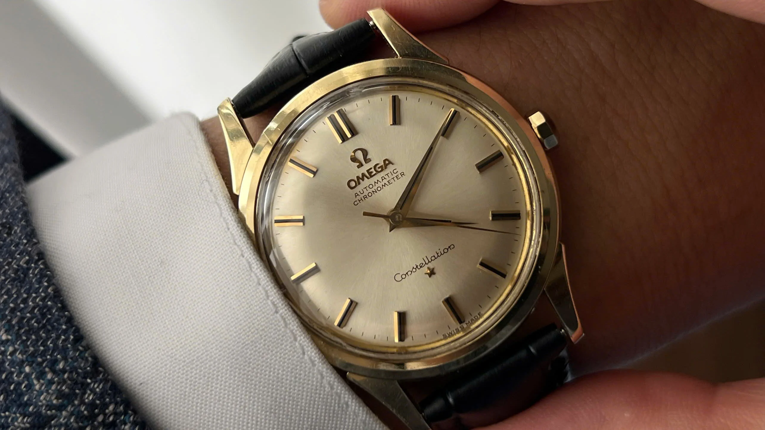 For sale is an interesting Omega Constellation ref. 14778-61 SC - the 37mm “jumbo” no-date Connie (gold-capped case, stainless back with observatory medallion in good condition). Clean dial and hands (both in great condition)