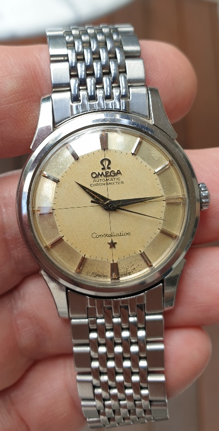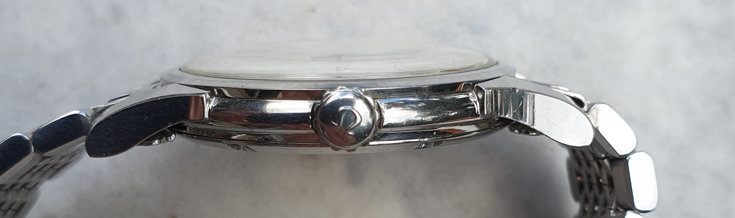 Posts 678 Likes 2,947 RCAFBuster ·Sep 13, 2021 For Sale - 1961 Omega Pie Pan Constellation 14381-7SC with Box. The dial has a creamy champagne tone, some discolouration at the 6 o'clock position. Nice Omega BOR 1037/ 570 band, 1/71. A superb slim line dress watch. USD$ 2000 plus Fedex. Wire payment preferred. Cheers, Buster