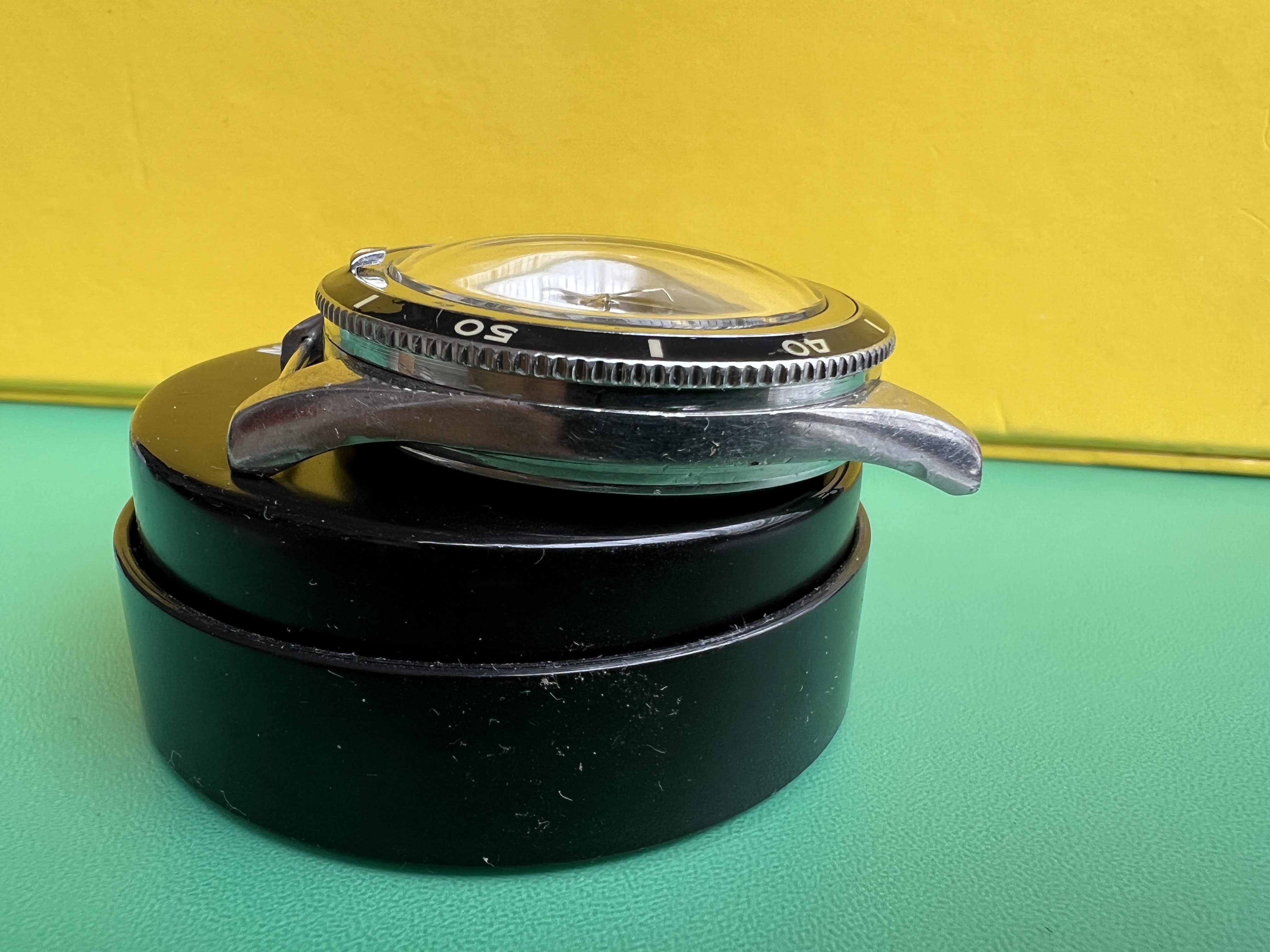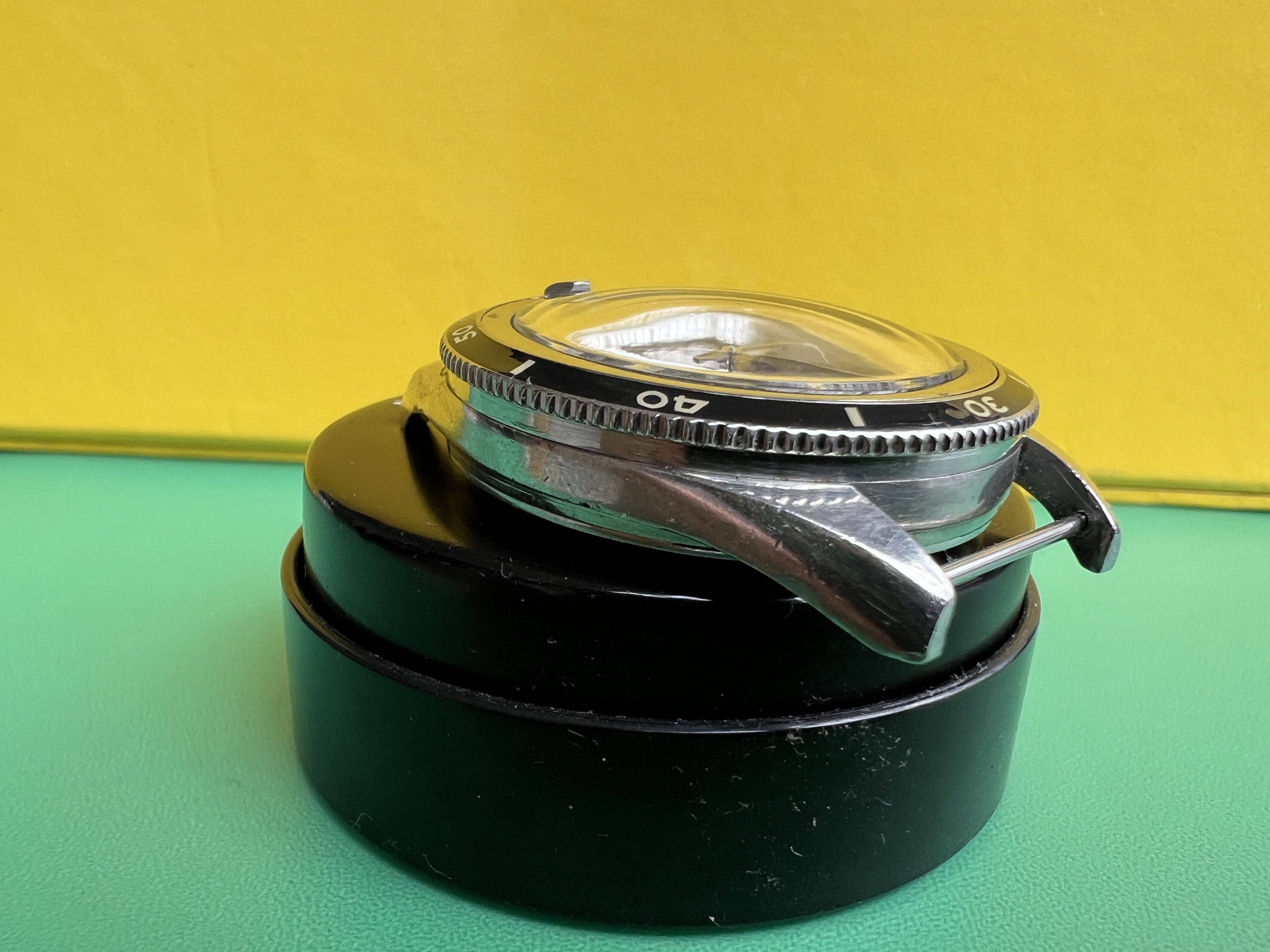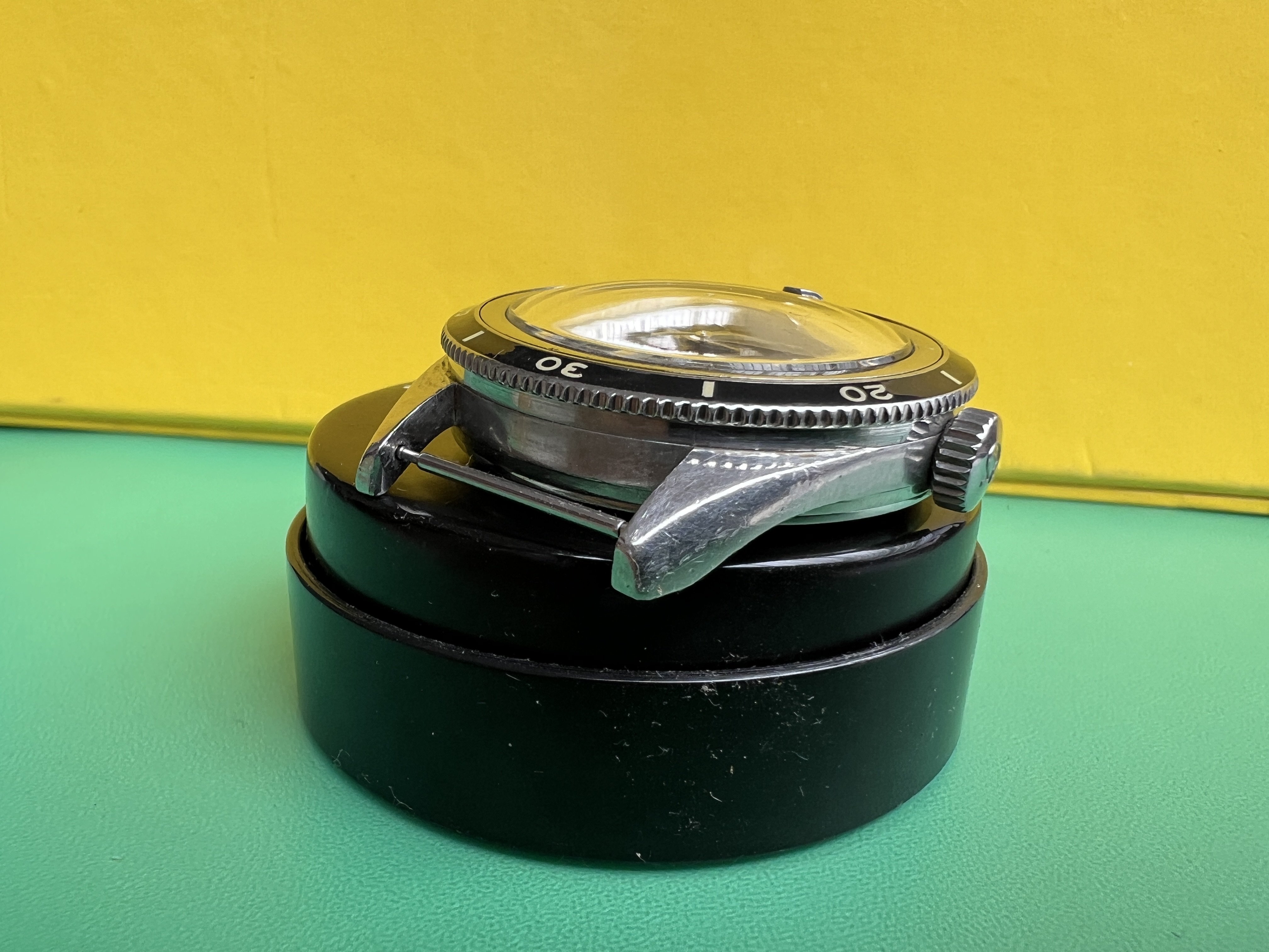 The watch is in very good condition overall and makes for a great daily wearer. The case shows signs of age as it should and the dial was refinished to a high standard and the hands have a lovely patina. The bezel insert is a modern reproduction by our own McGyver, as like most of these it was missing one on arrival.
