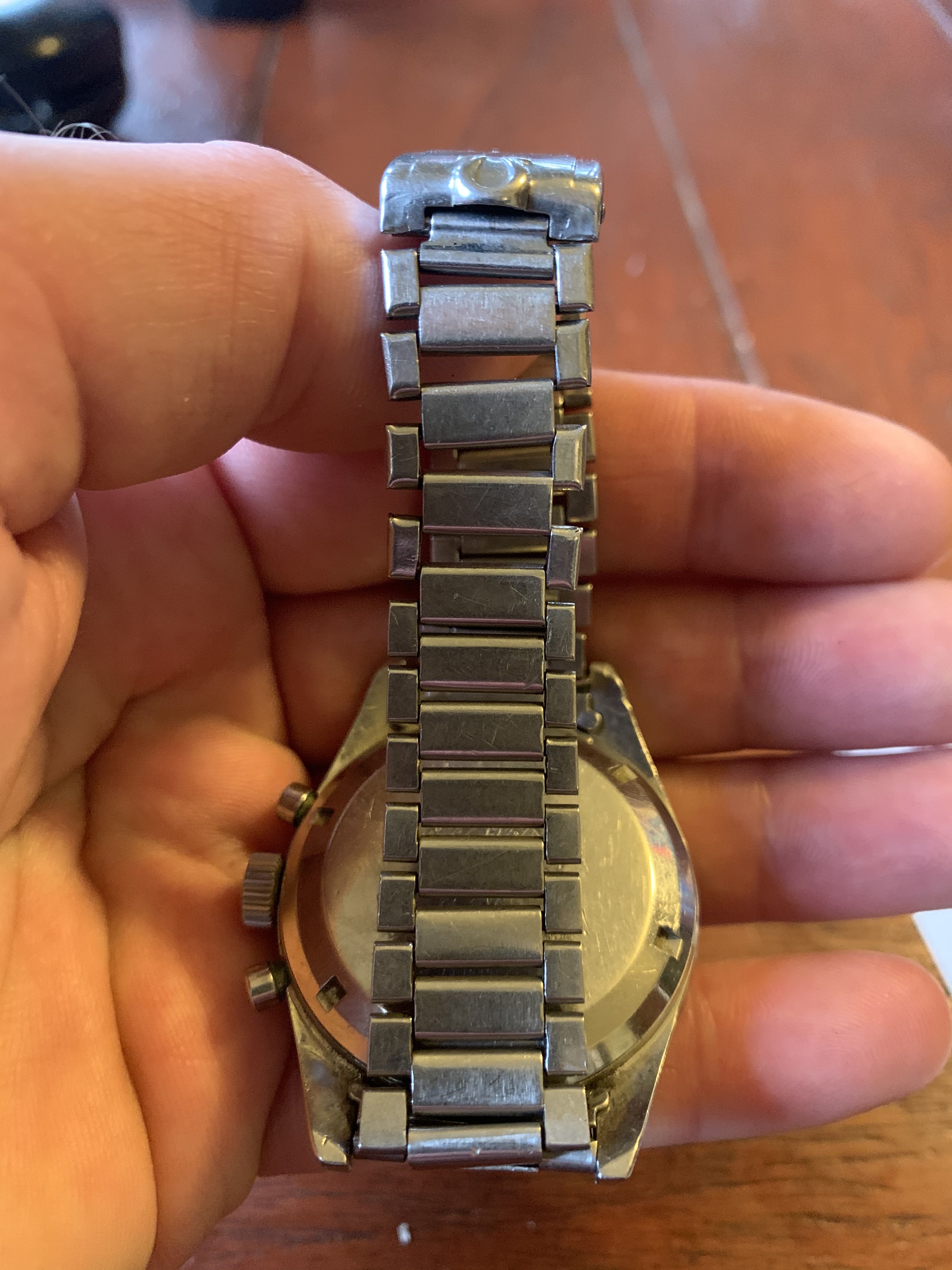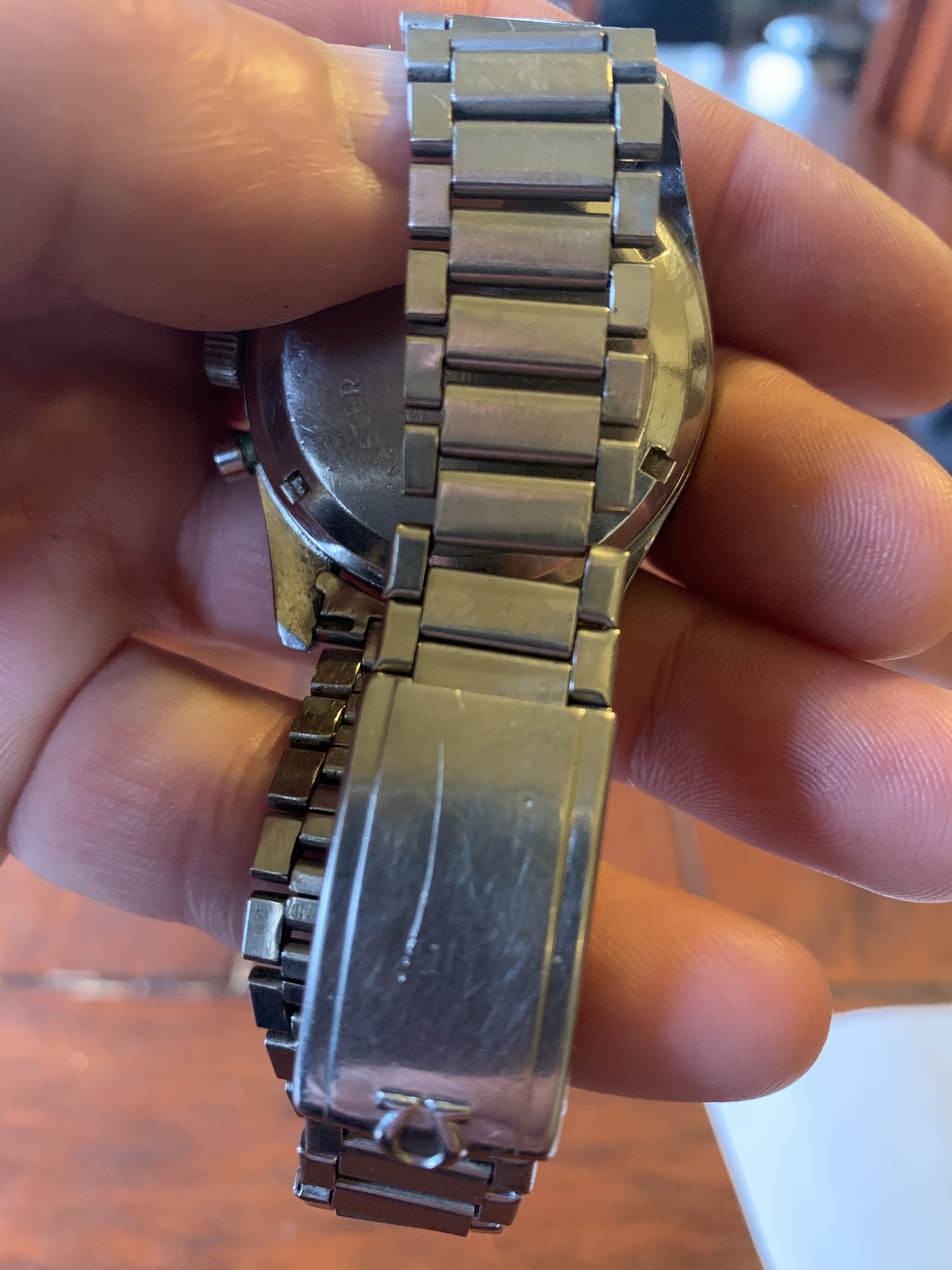 if it is not worth very much given the condition I would like to repair the band (several of the stretchy links appear blown out) and wear it. It has been sitting on a shelf for years if not decades - likely since the band loosened rendering it not wearable. I would be surprised if he ever serviced it (hence why I think it is all original.