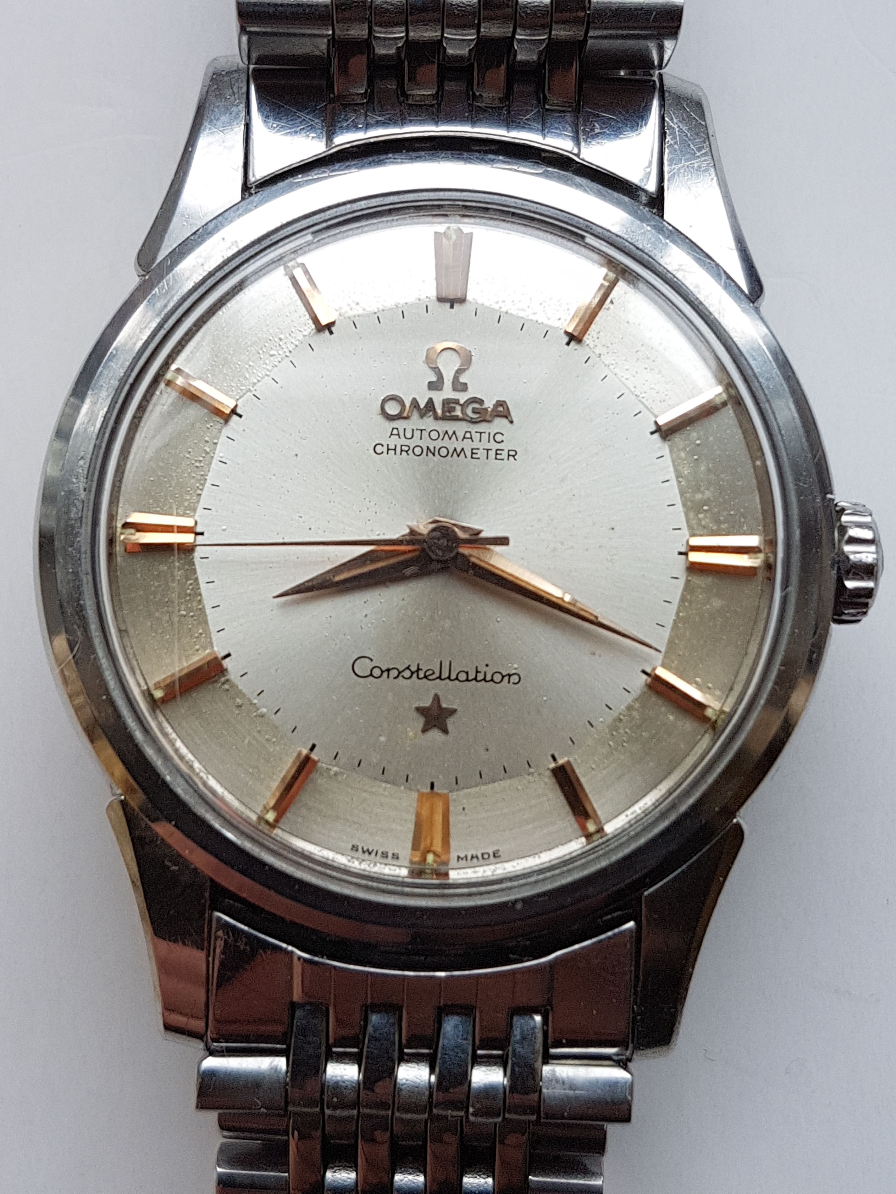 This is a good, classic Constellation with the famous "pie pan" dial that is now so sought-after and so difficult to find in good order. I will answer any questions to the best of my ability and provide extra photos if required. I am located in England. I would like £1100 net to me for the watch, to include Royal Mail Special Delivery. I would prefer a UK sale and will accept Paypal F and F, bank transfer or a UK cheque.