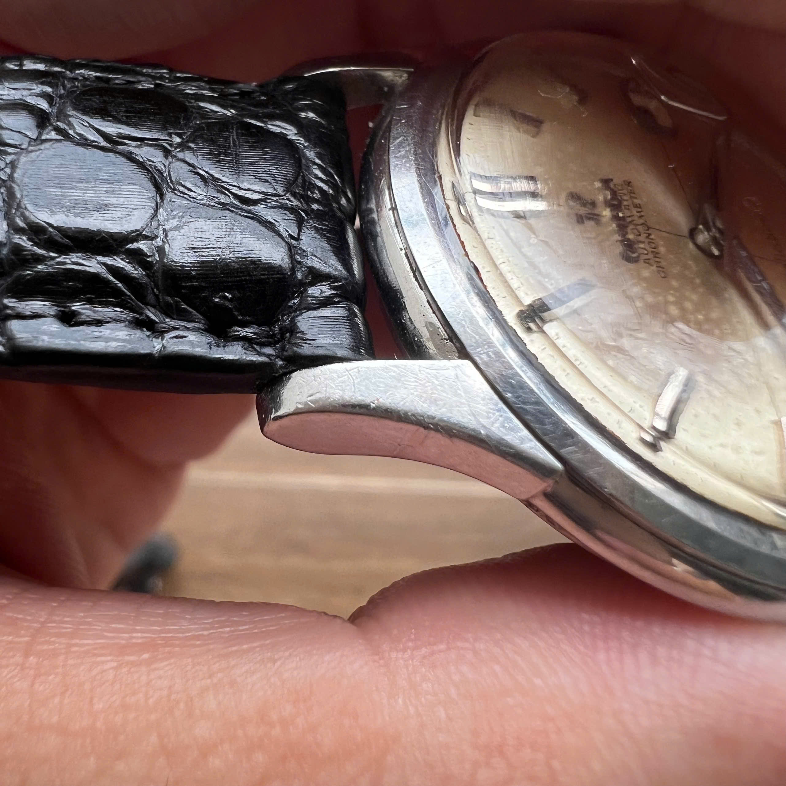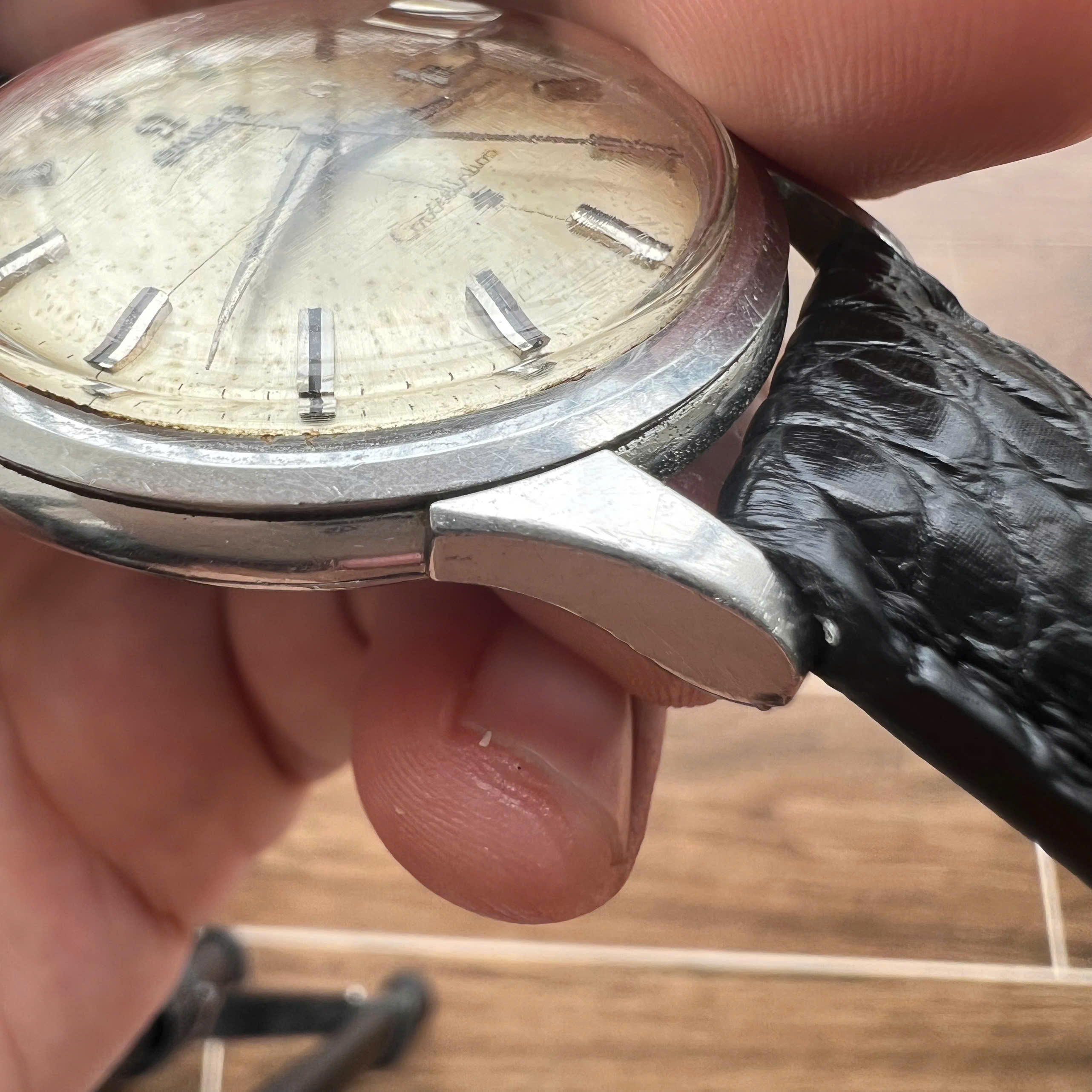 - Dial: Original dial in average condition (literally average, probably 5/10) with clear signs of aging as shown in the pictures. Texts and minute markers are still visible. Correct set of hands and onyx inserted hour markers.