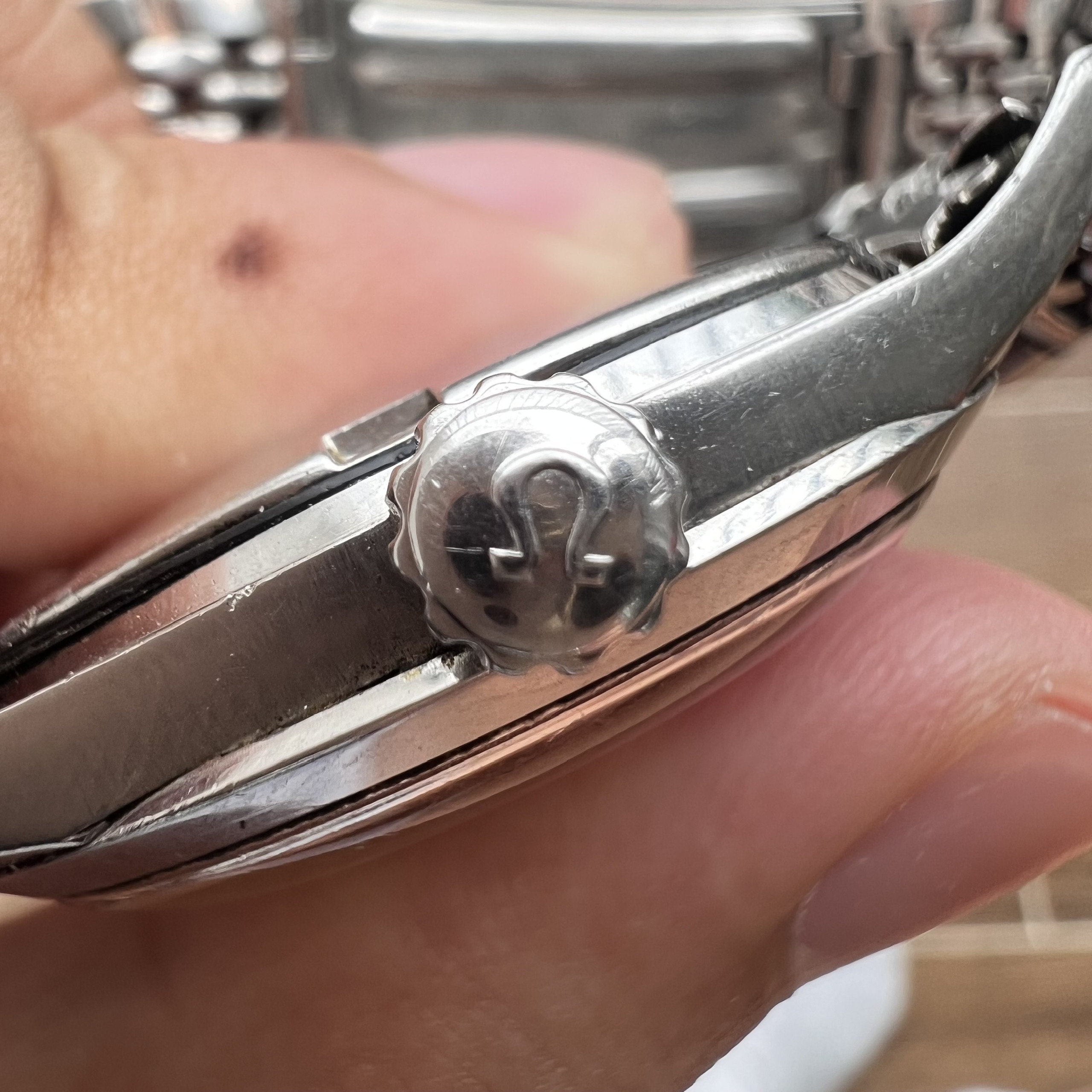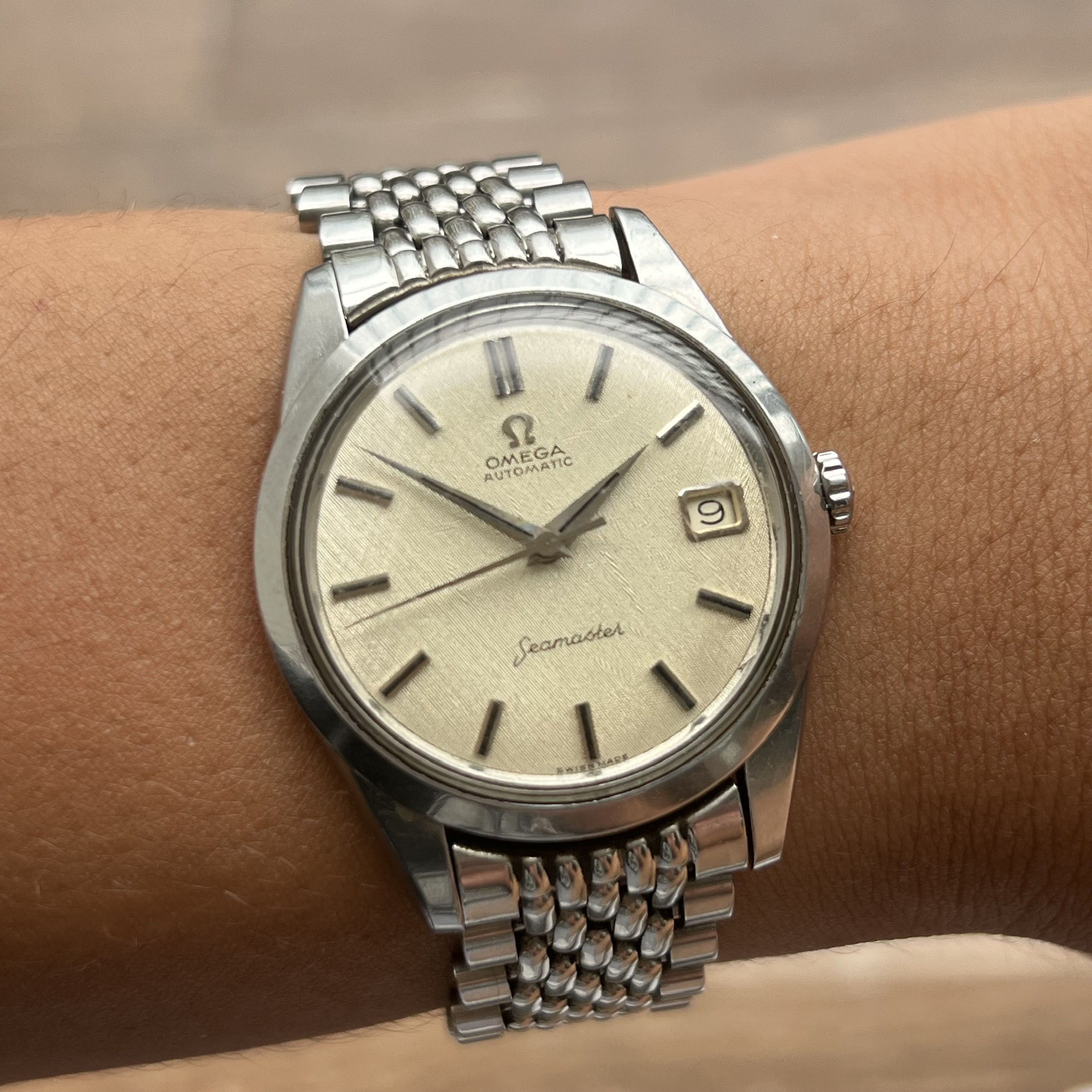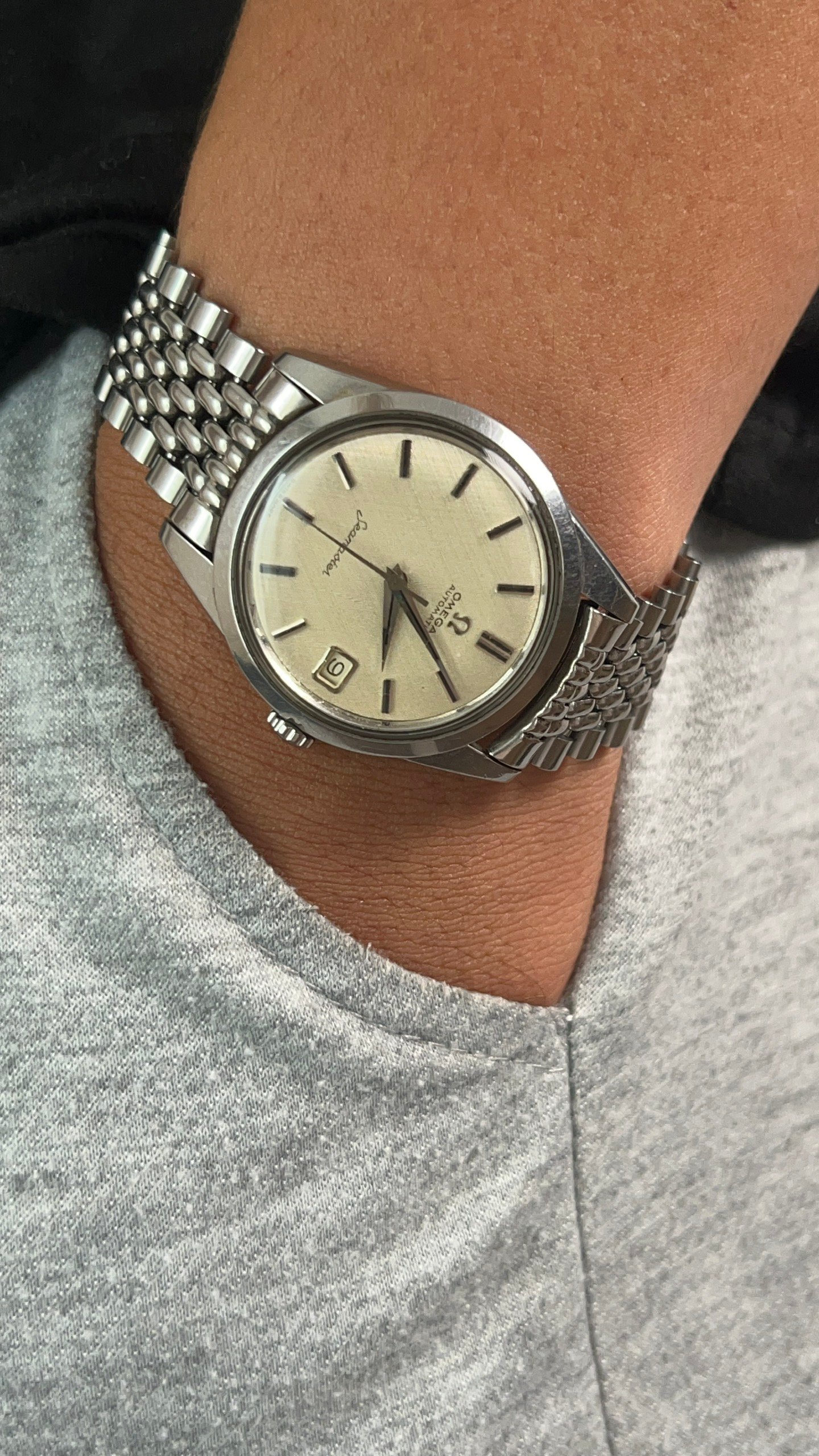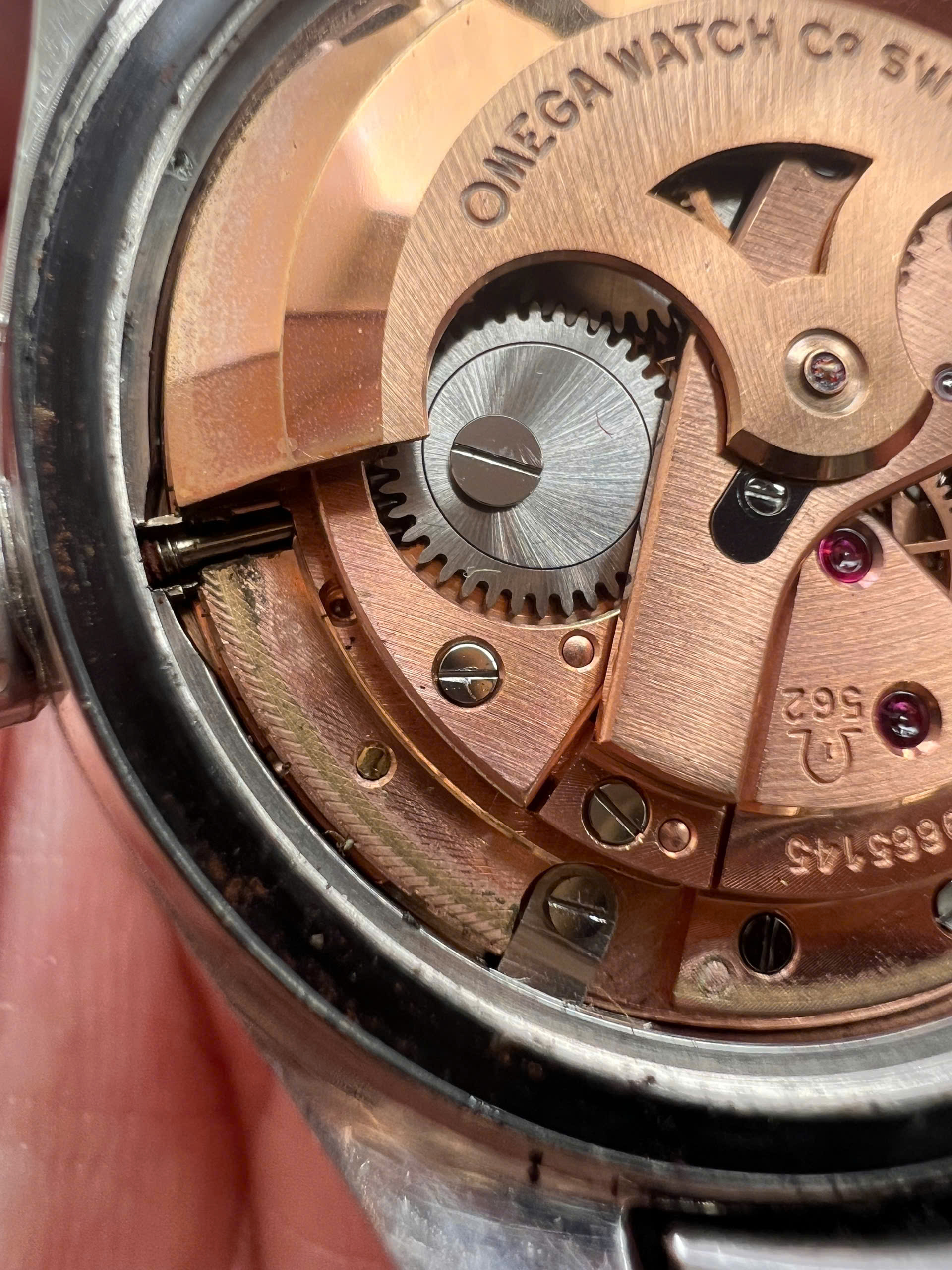 - Movement: Omega Cal. 562 with serial number in 19mils range. Watch is running, winding smoothly, datejump and semi quickset date function checked. Service history is unknown.
