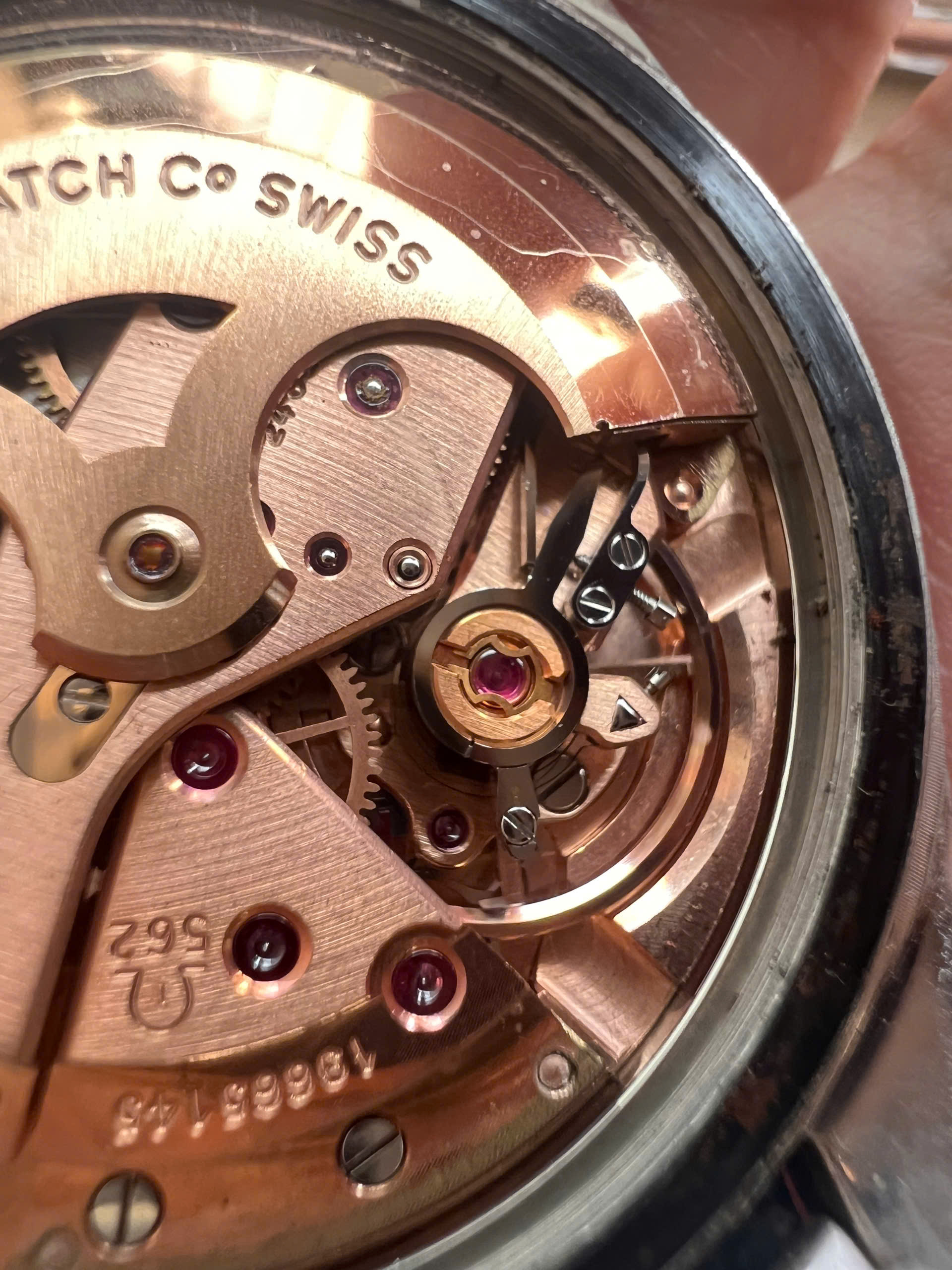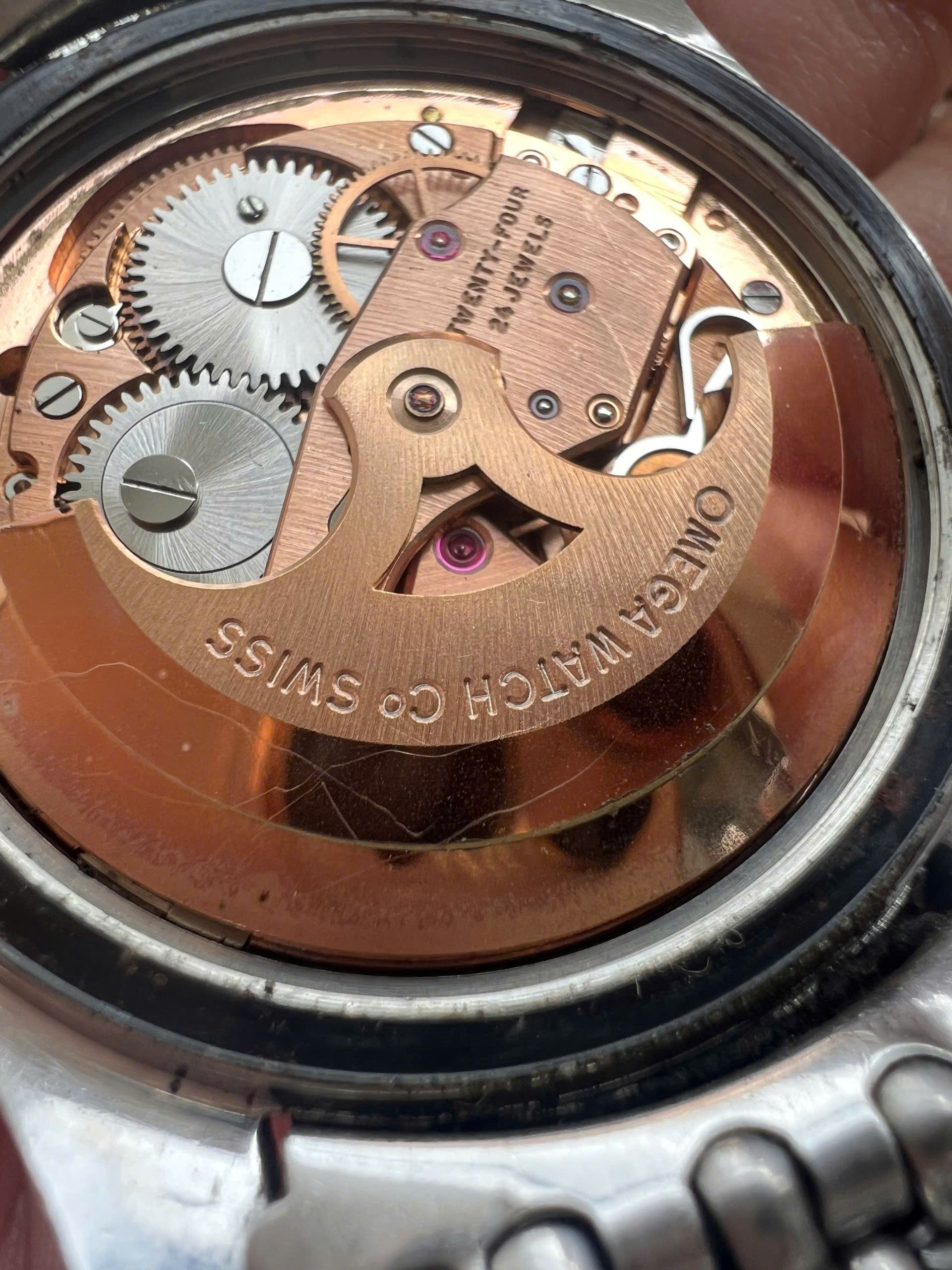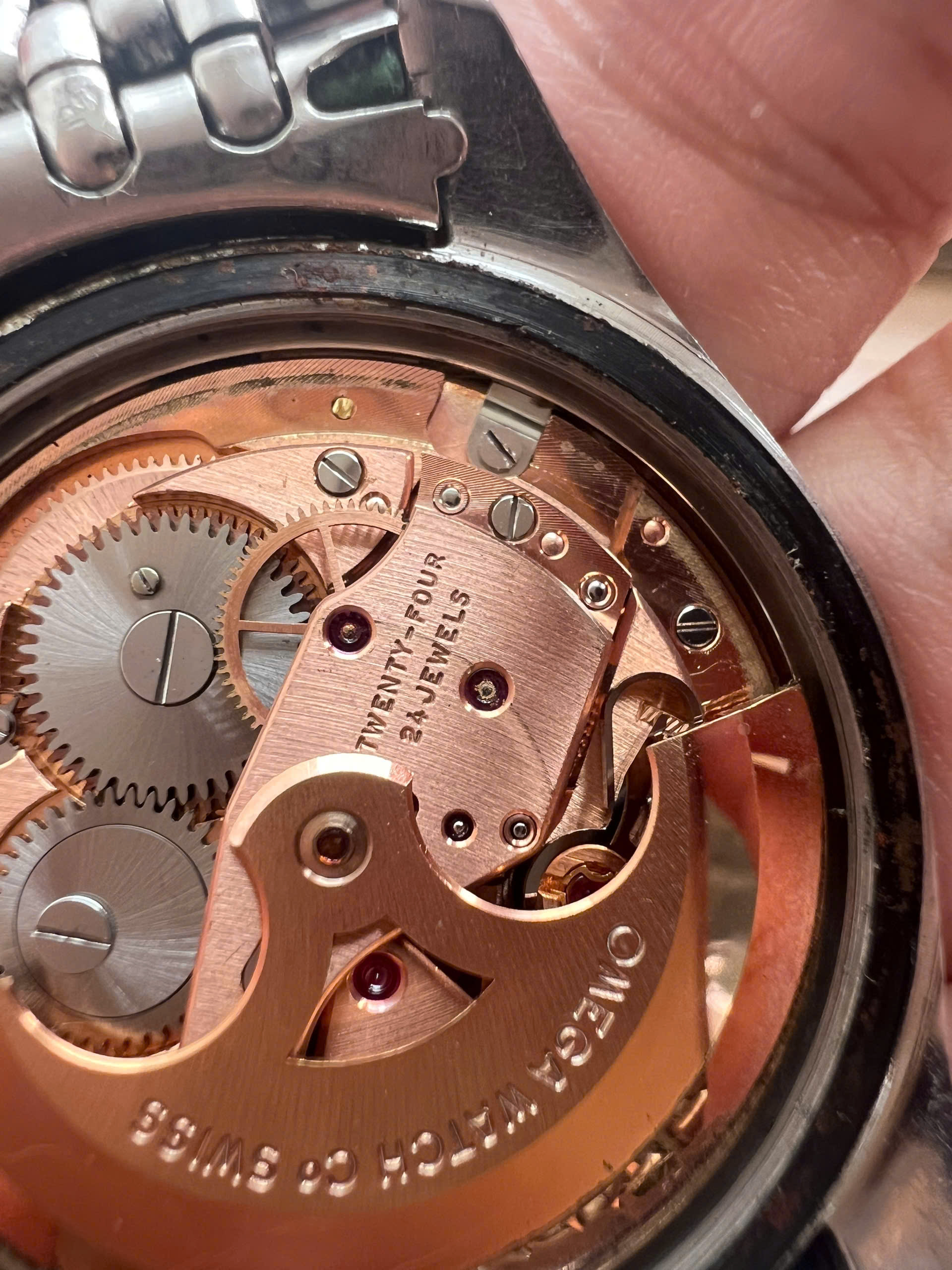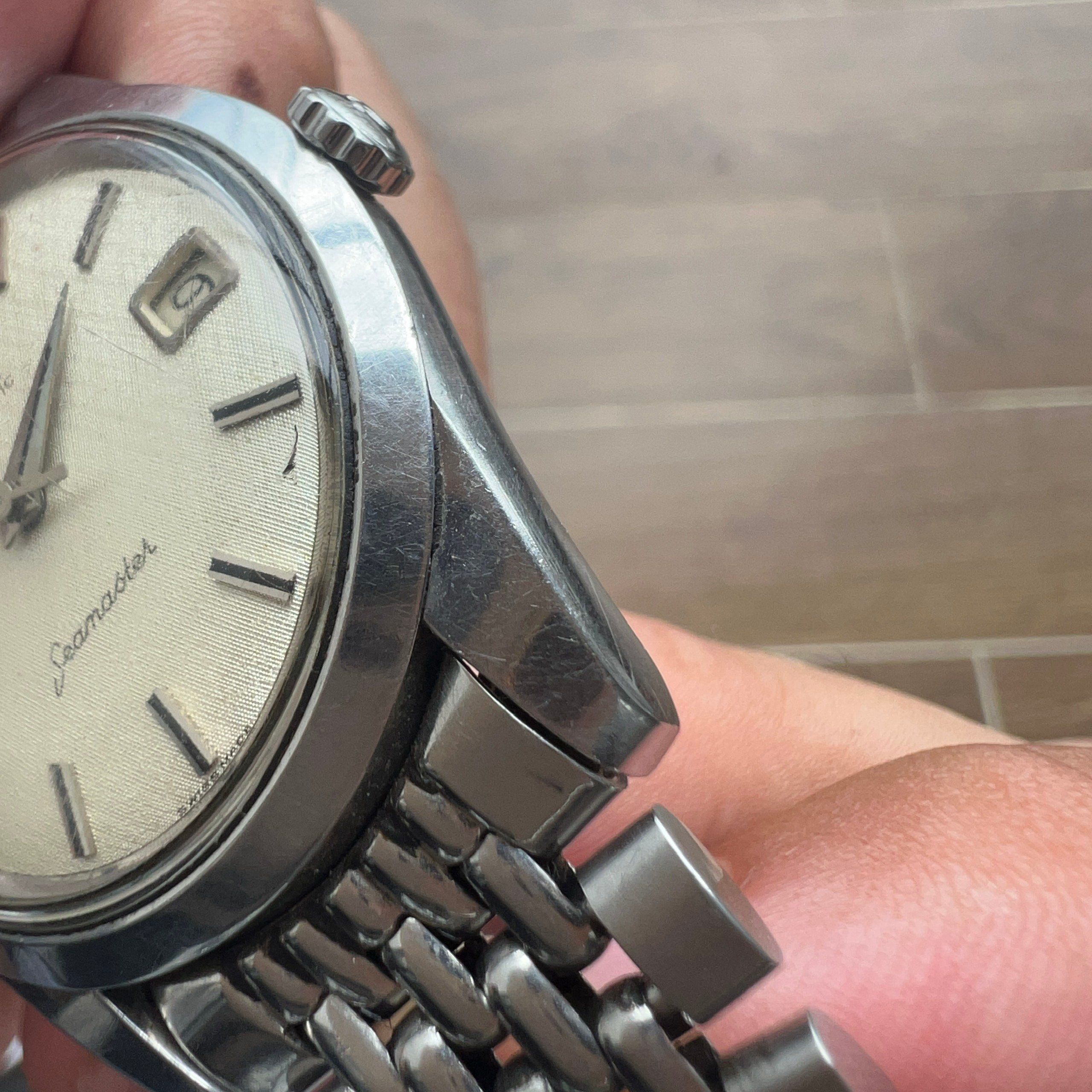 - Movement: Omega Cal. 562 with serial number in 19mils range. Watch is running, winding smoothly, datejump and semi quickset date function checked. Service history is unknown.