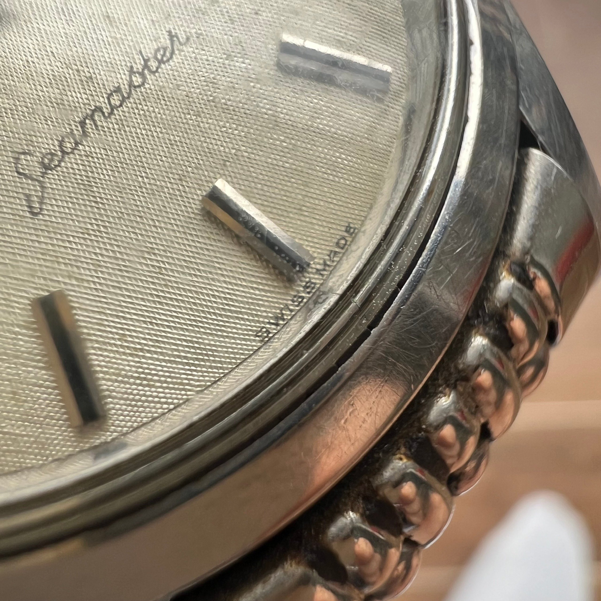 - Dial: Original dial in good condition. All the texts are clearly visible. Why the dial didn't have minutes markers, you may ask? Well it's actually a thing with Omegas in the 50s to early 60s, how about this thread. And more, the hour markers are onyx inserted.