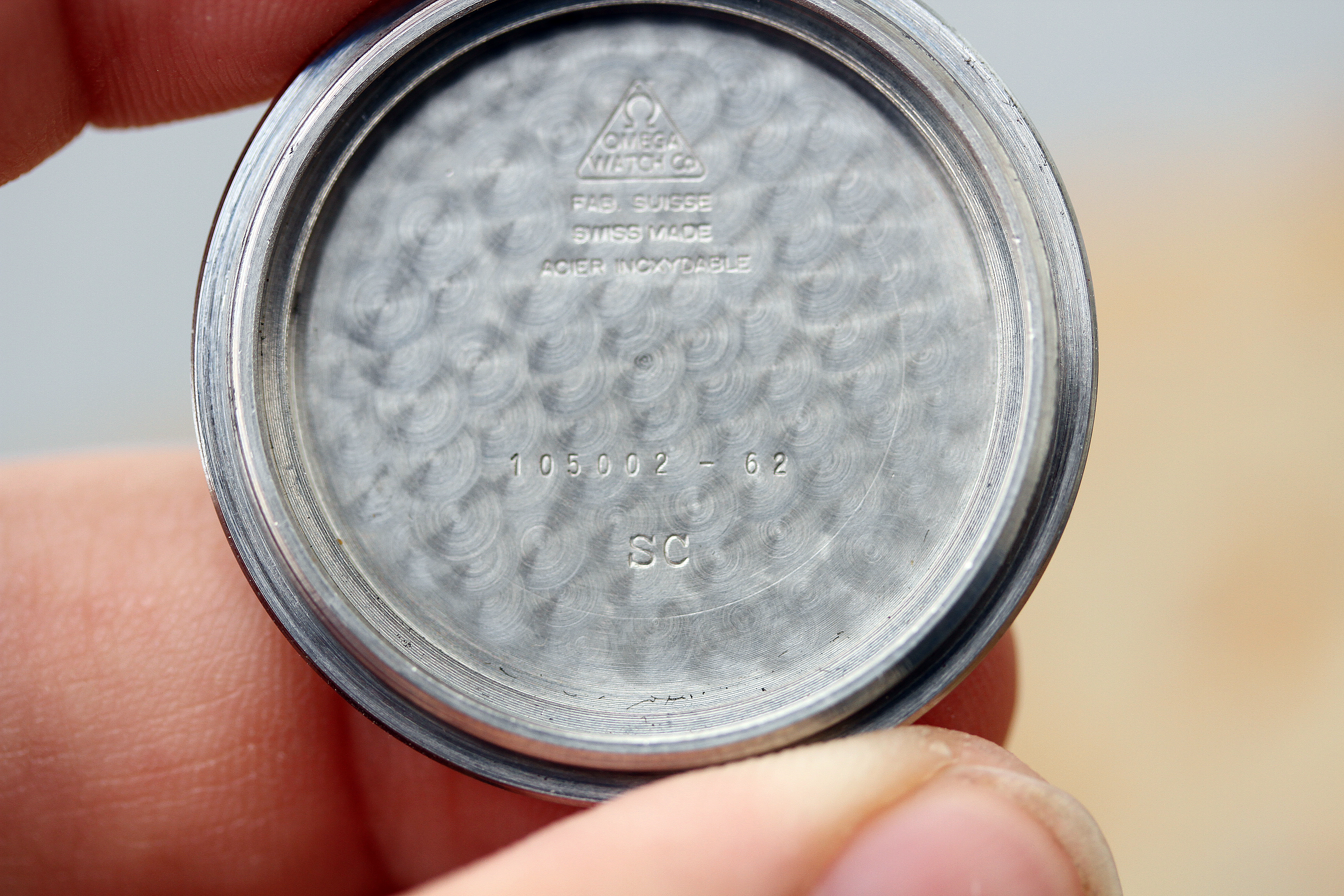 Caseback is in excellent vintage condition. Crisp Seamonster on back. Original owner had "Huff" inscribed. Caseback is stamped 105.002-62 inside.