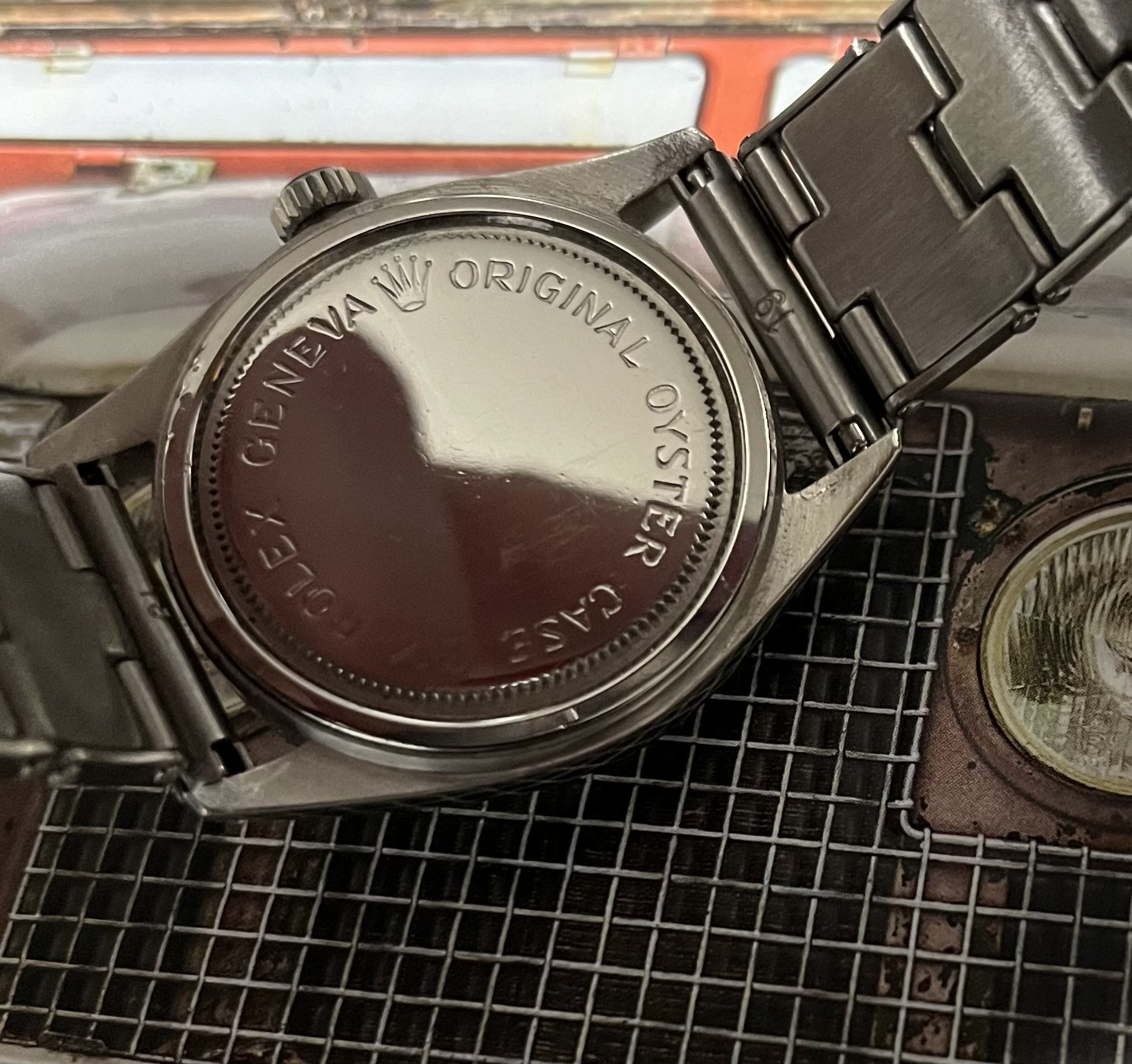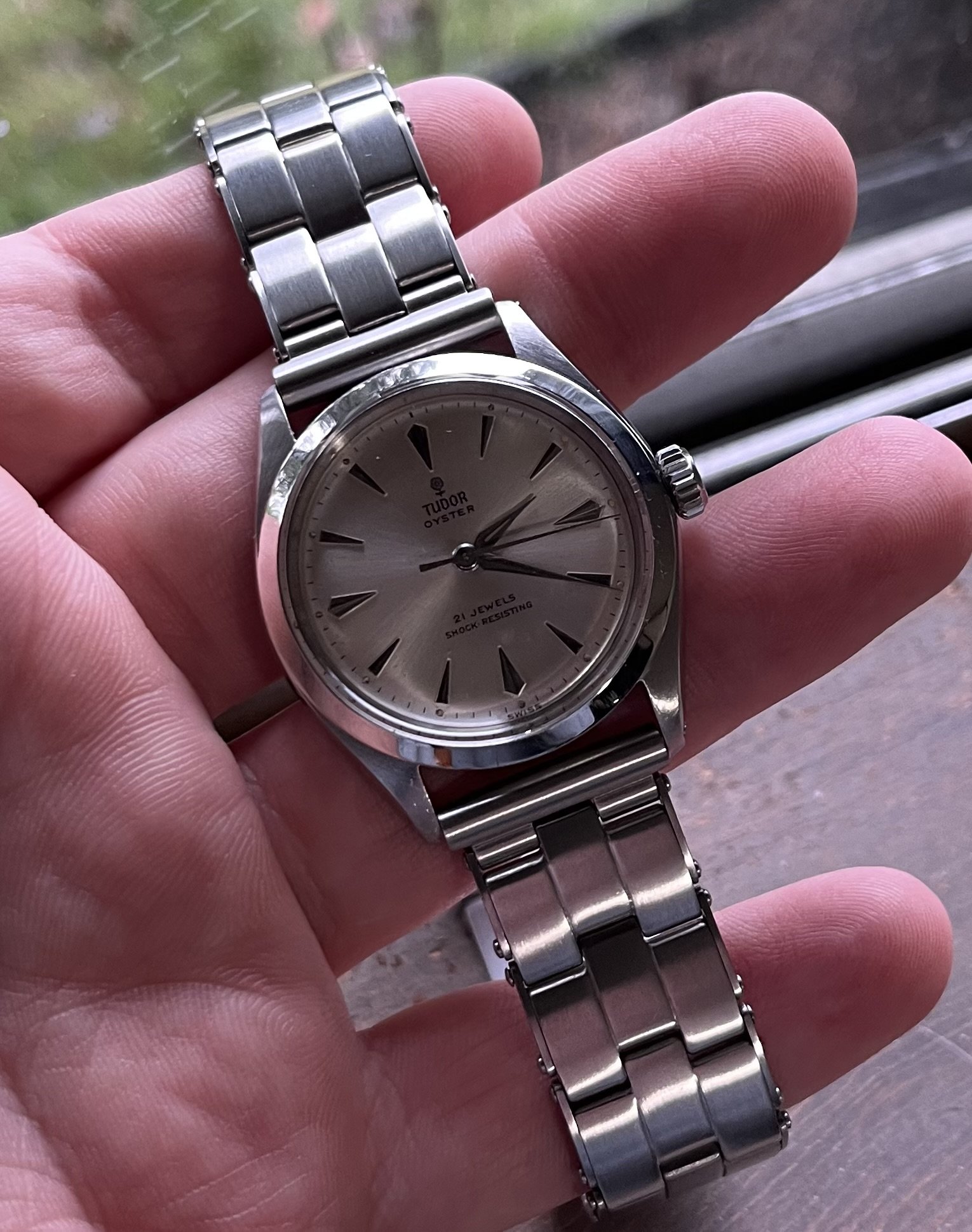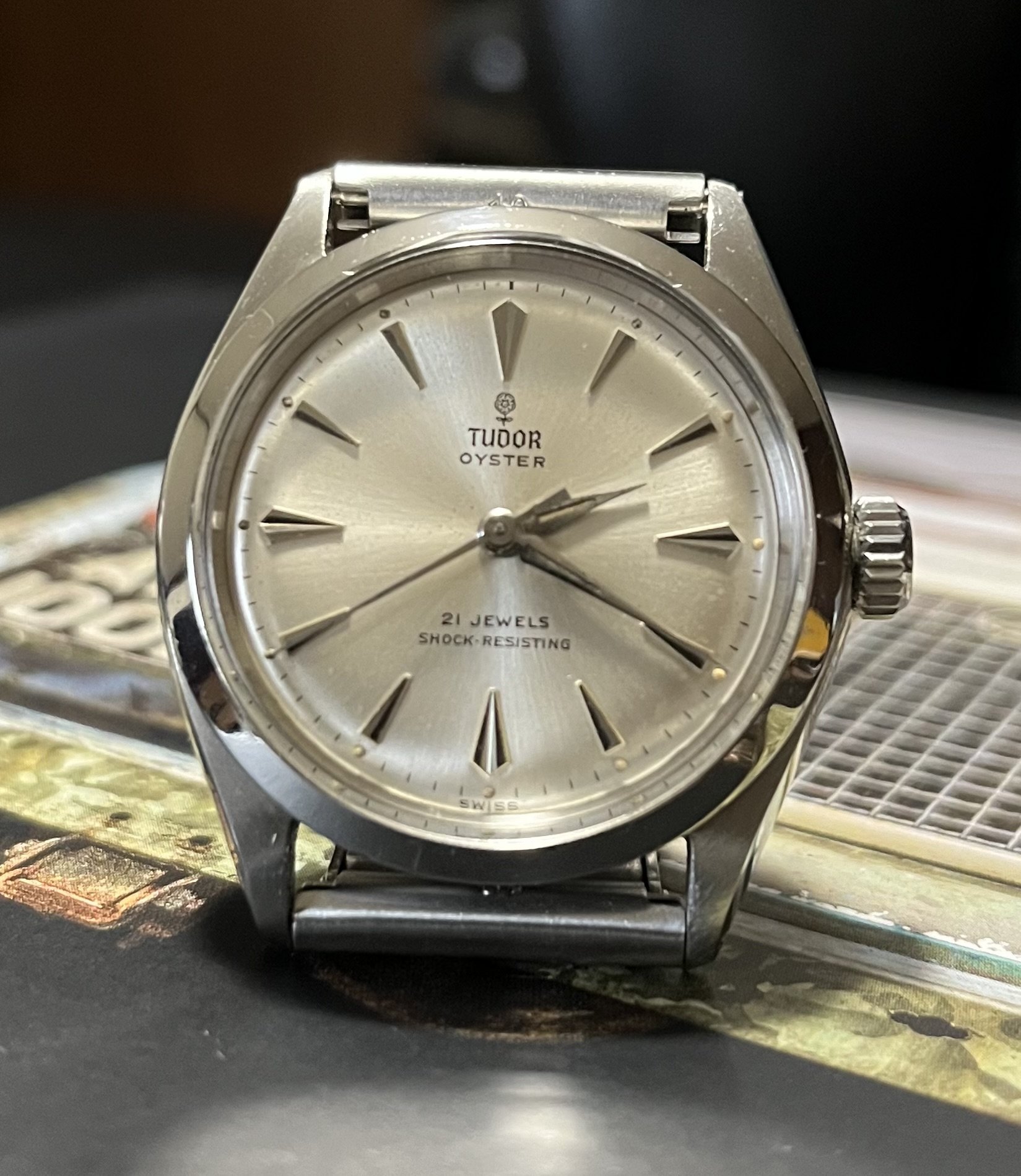 All original, some very light spotting on the dial and the hour hand is a little corroded. That being said, when you look down at it on your wrist, you can’t see this and it looks killer with the alpha hands and arrow markers.