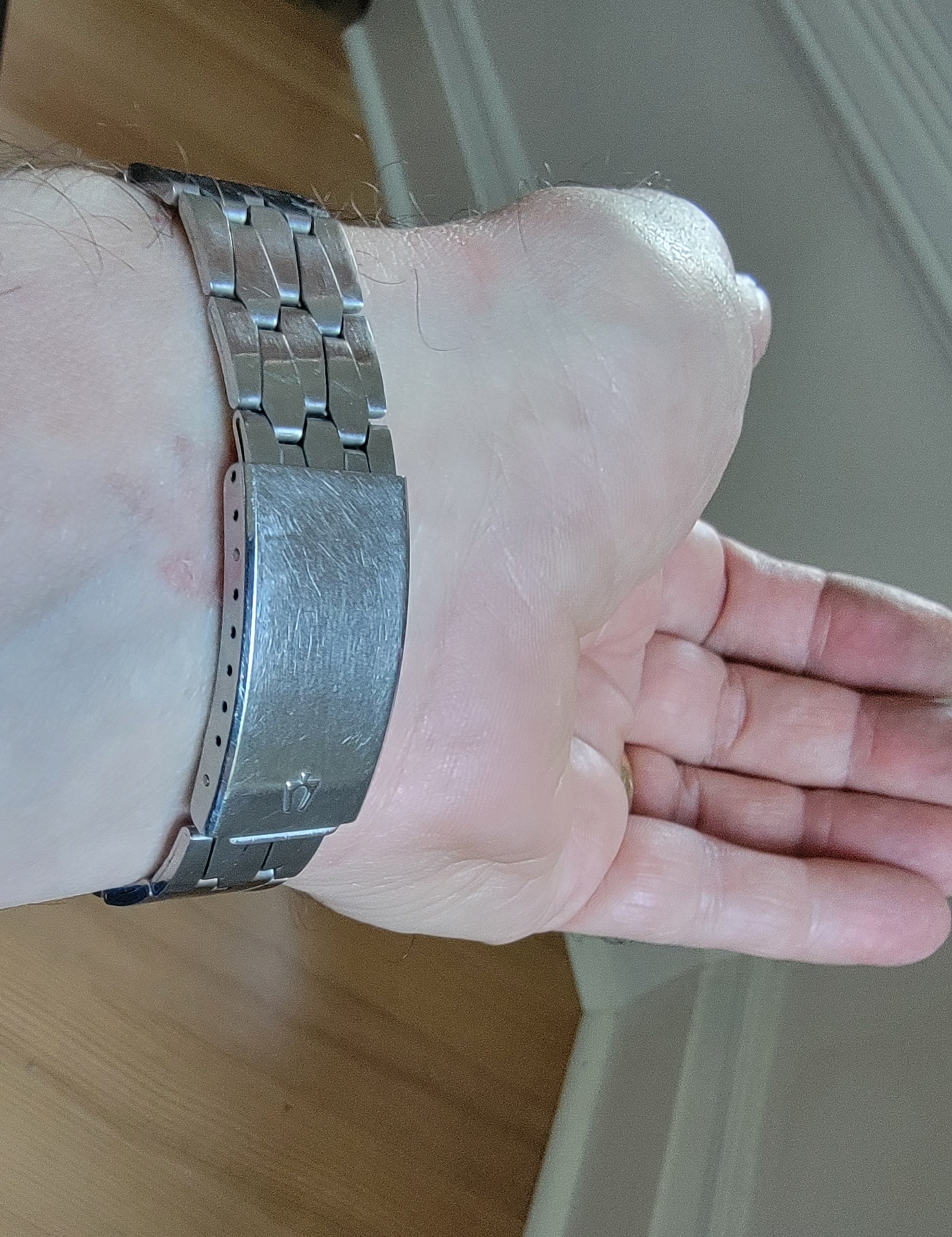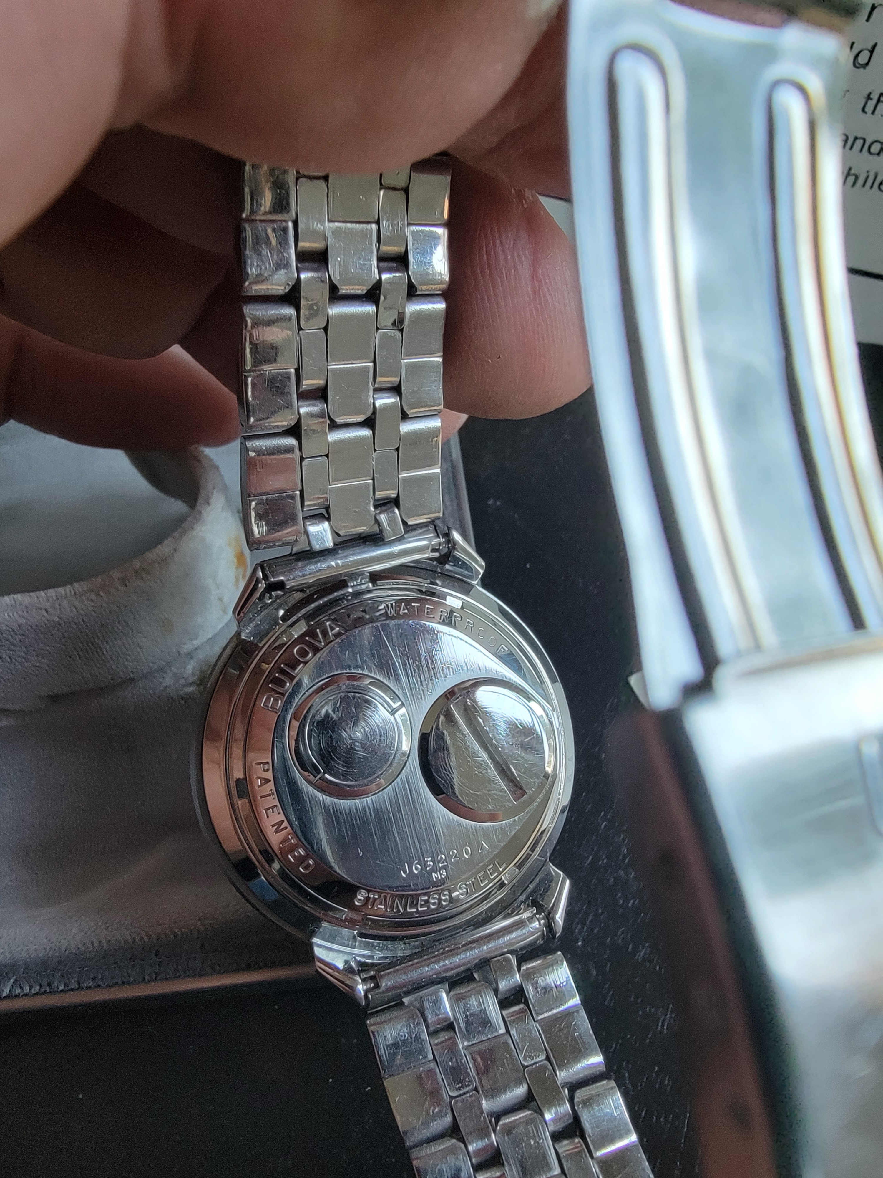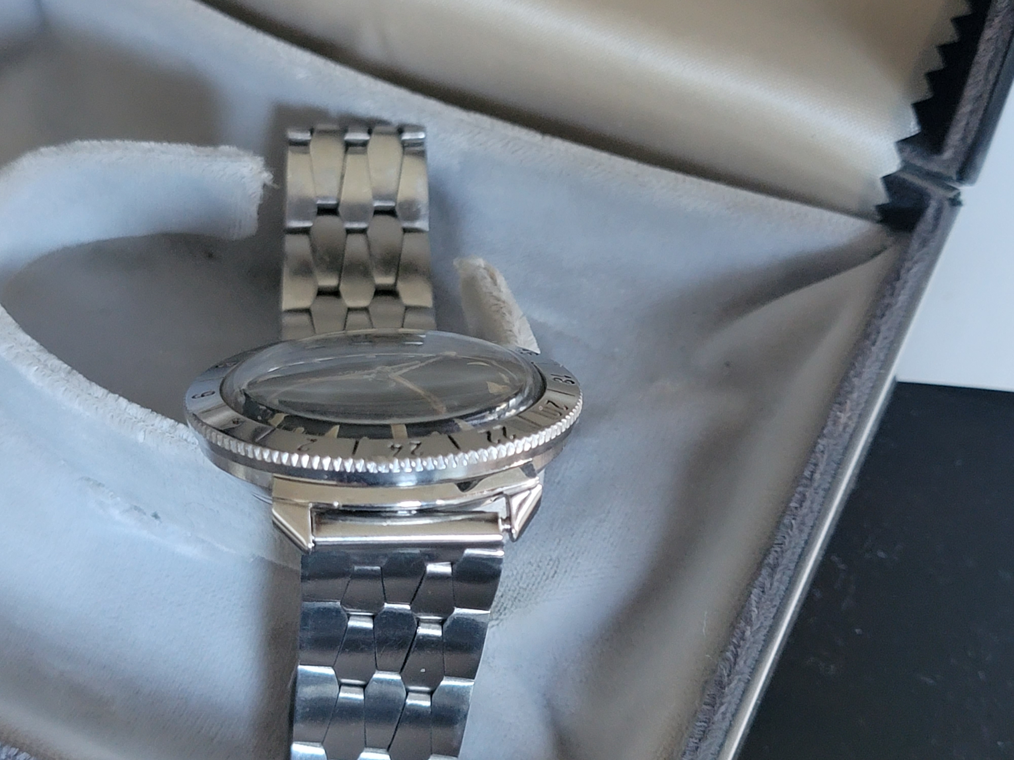 Includes extra vintage Champion Komfit bracelet. The watch is on a coffin bracelet that is not original to the watch. The bracelet is marked Hong Kong, which was not delivered by Bulova on 1963 Astronauts, although the 1963 Astronaut did come with coffin style bracelets.