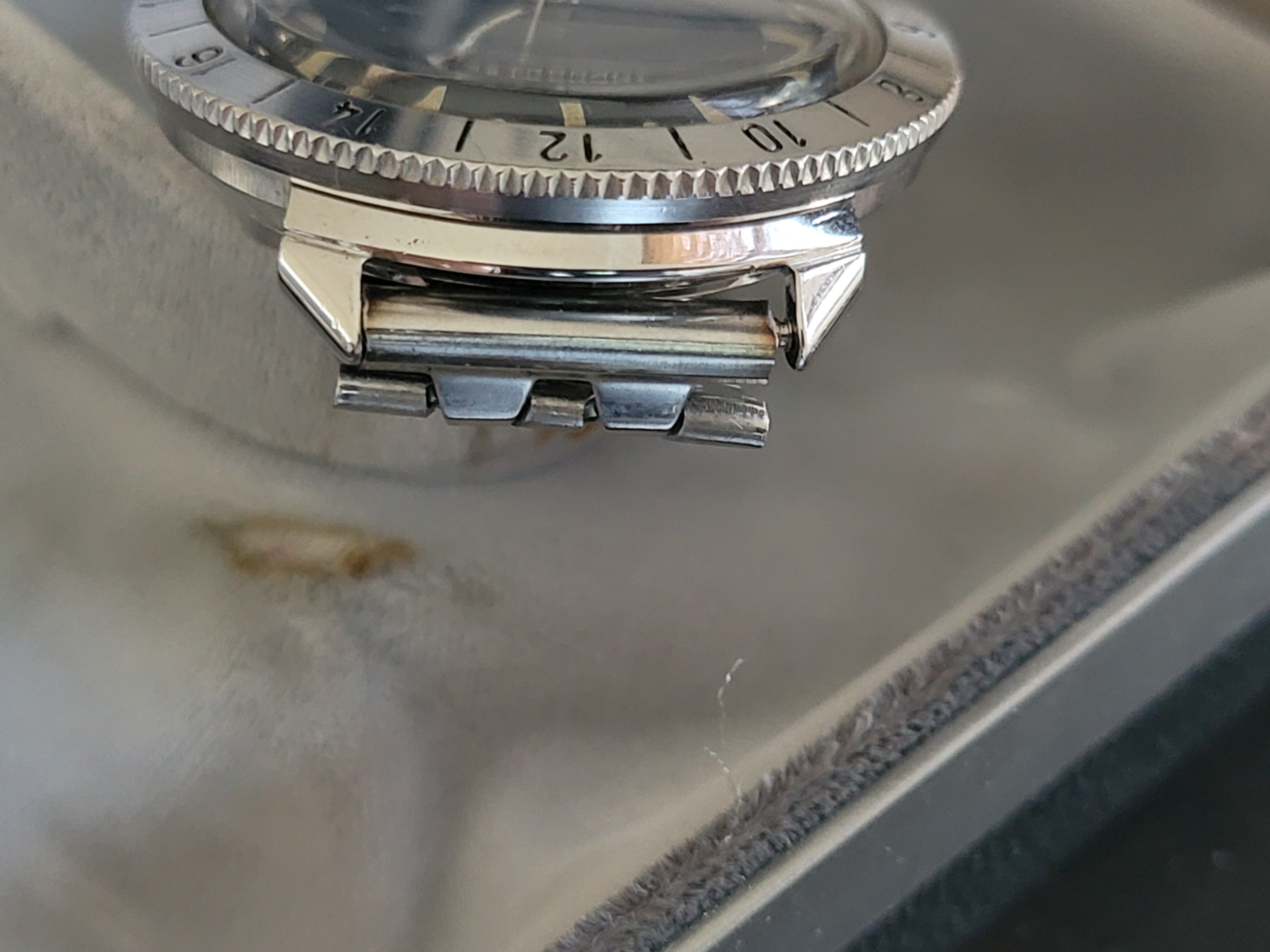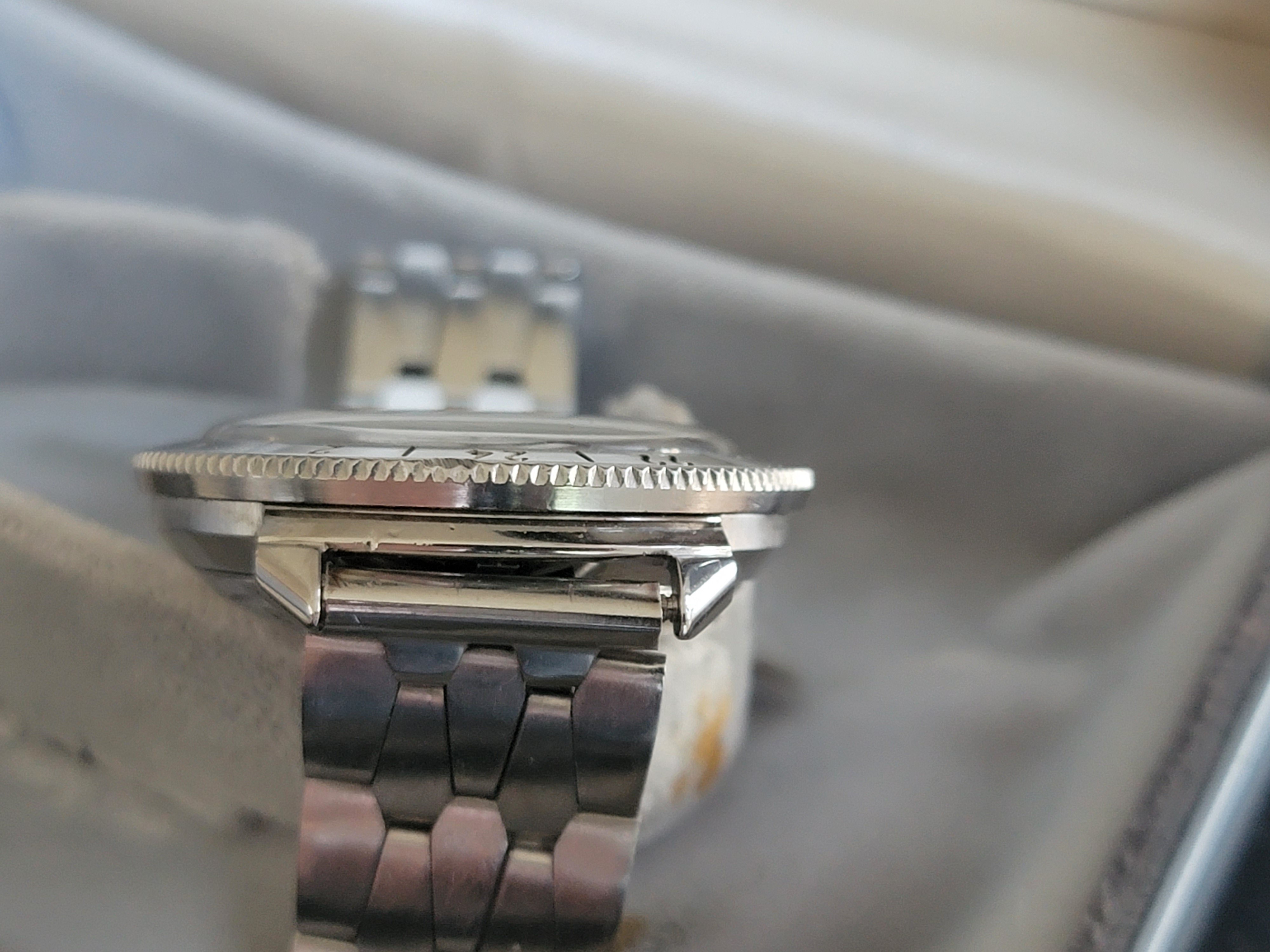 Note the nick on the bezel at the 24 hour. The bezel turns correctly (you should push it down before turning).
