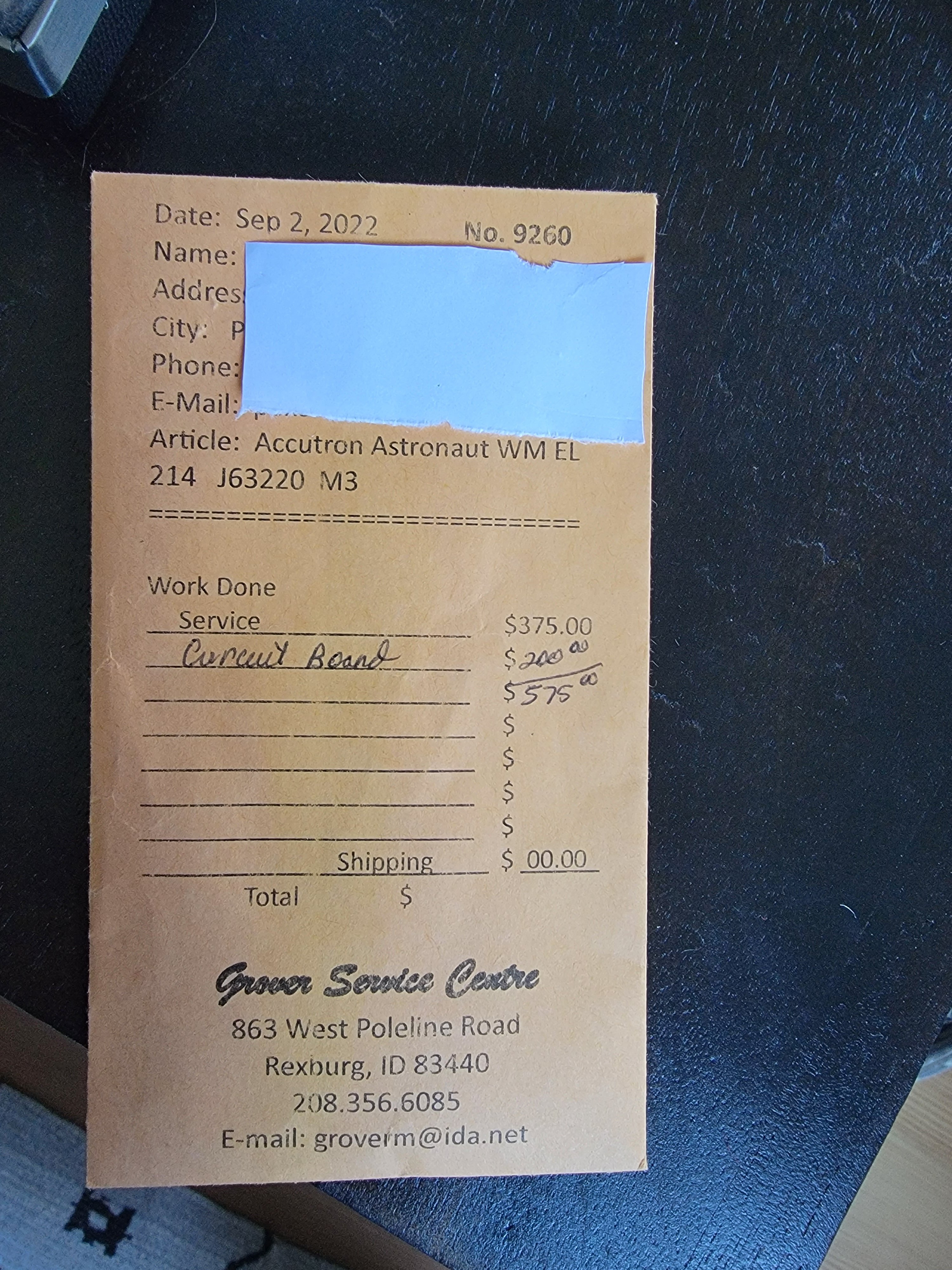 Sep. 2022 service including new old stock service board. Six month transferable warranty.