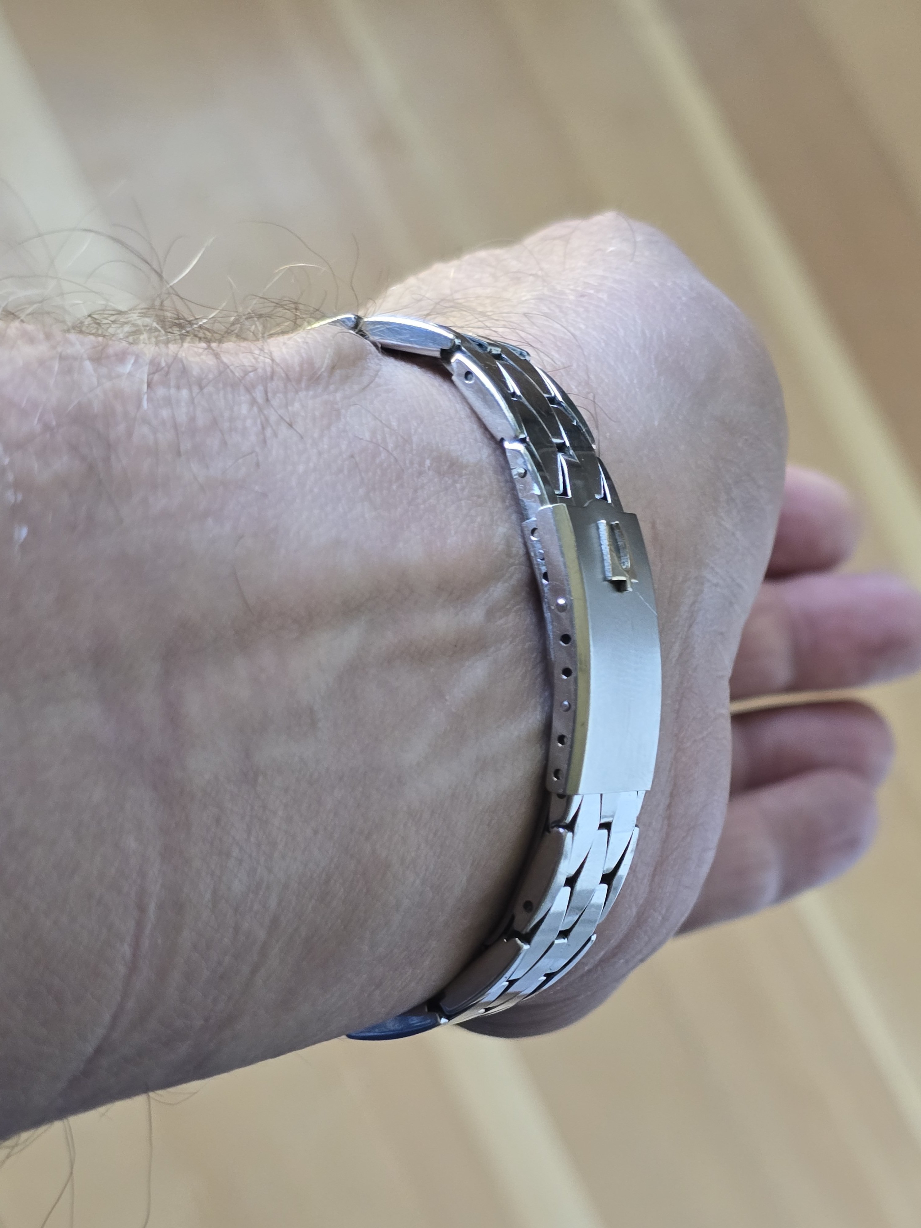 Original coffin bracelet in excellent condition. It fits my 7.25 inch wrist and has room for expansion in the clasp.