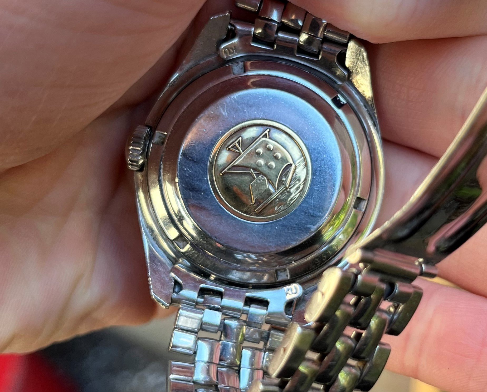 As you can tell the case is sharp and definitely unpolished. I deliberately did not polish the original crystal either. The hands show some corrosion. The crown is unsigned, which it should be. Note that it does not screw down on these Kontiki references.