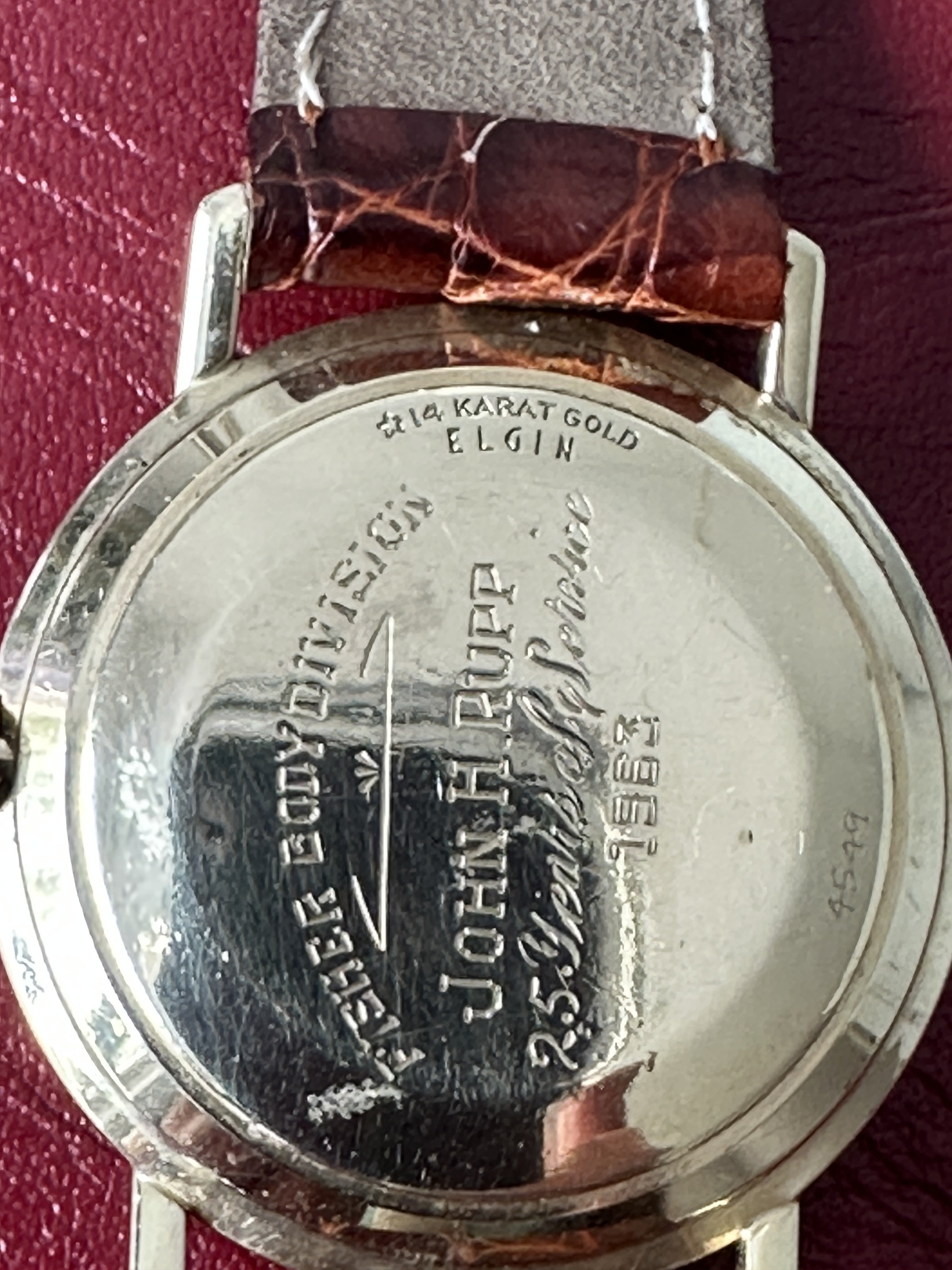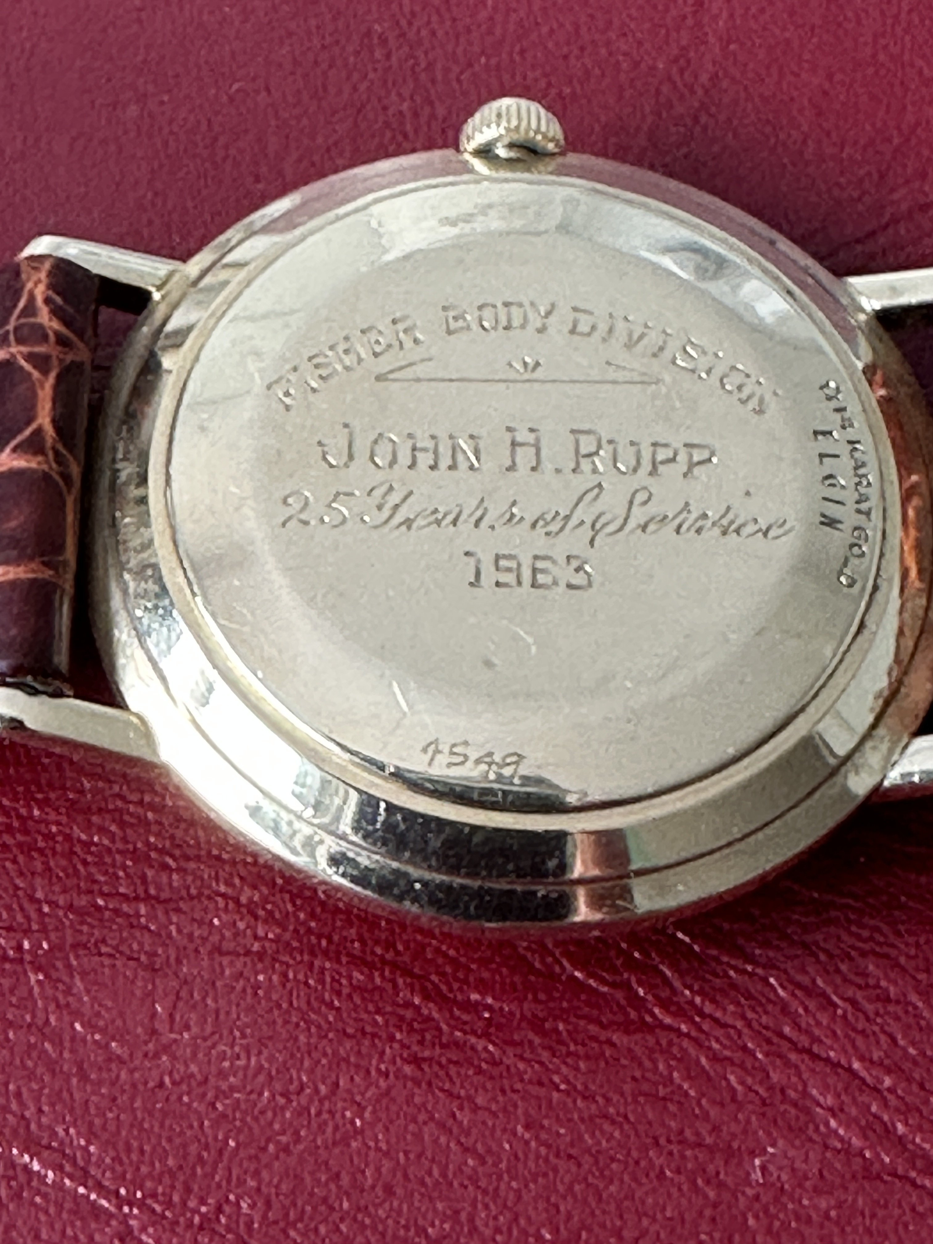 1963 Lord Elgin General Motors Fisher Body Division 25 Year14k Yellow Gold Presentation Watch