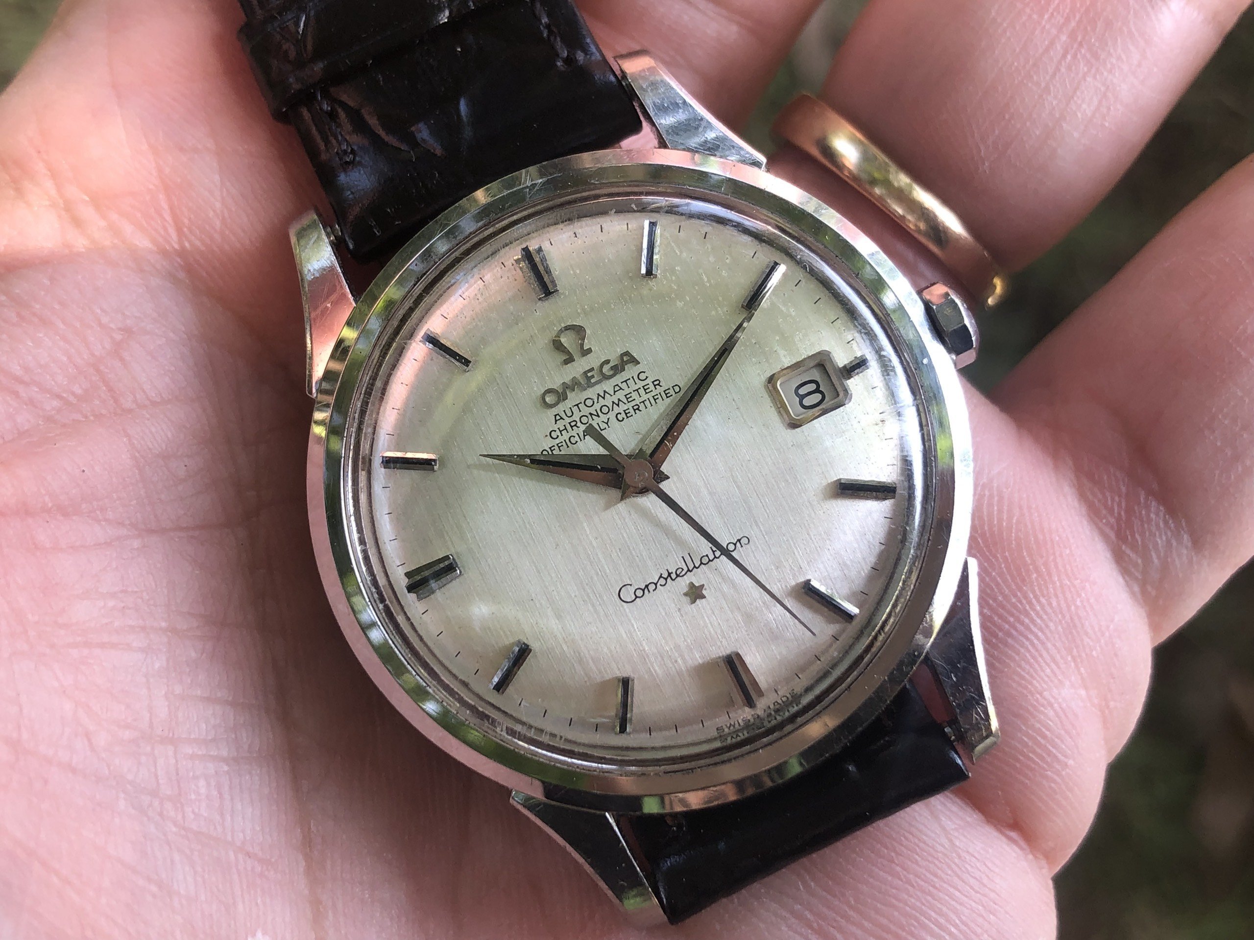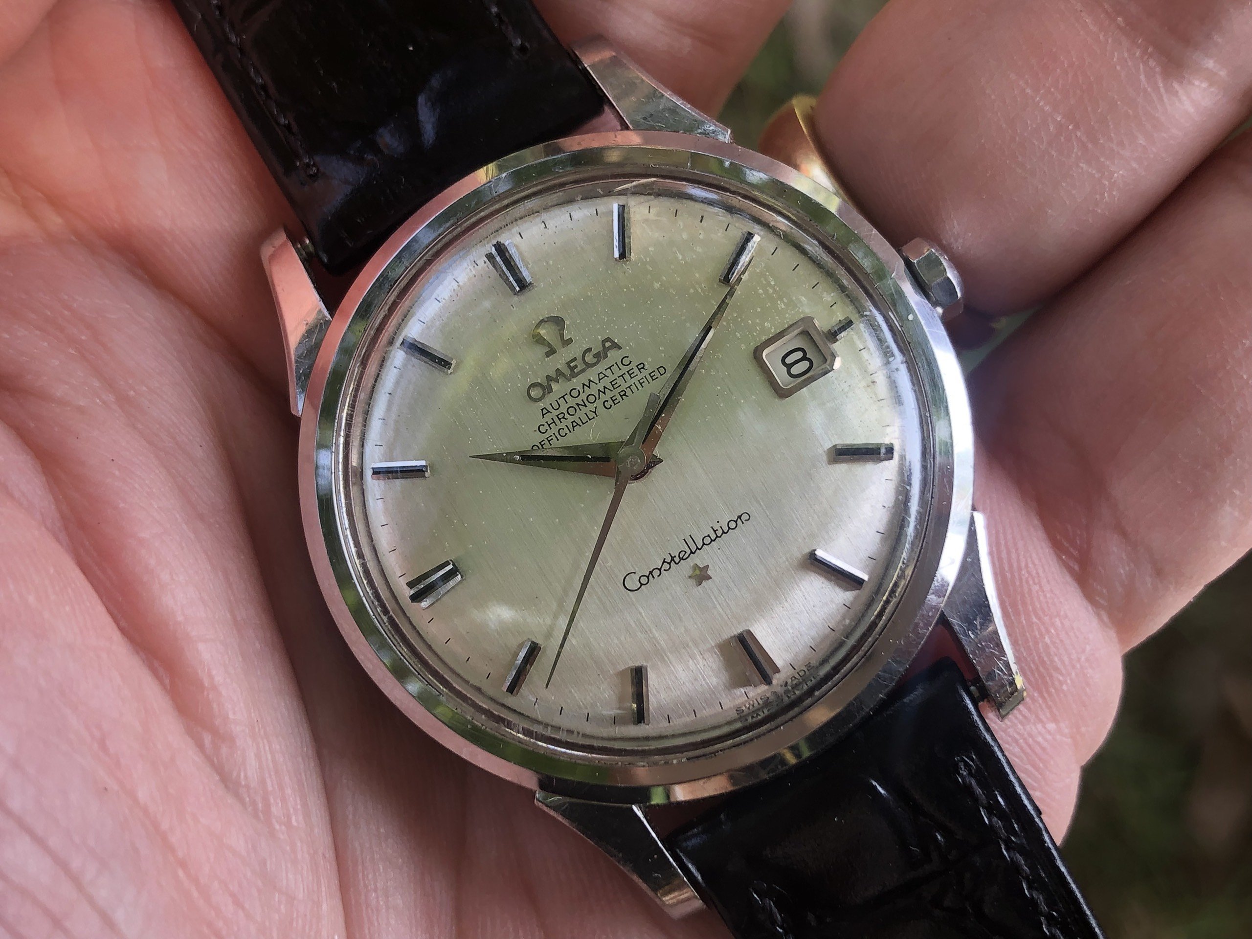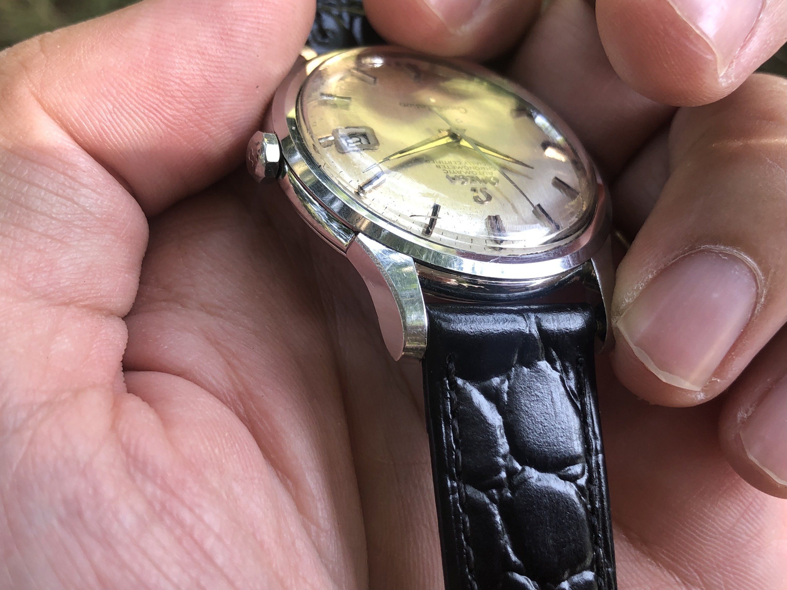 - Crown: Original and correct decagon crown, a bit tricky to wind but goes nicely with Connies. The crown has rusted spots.