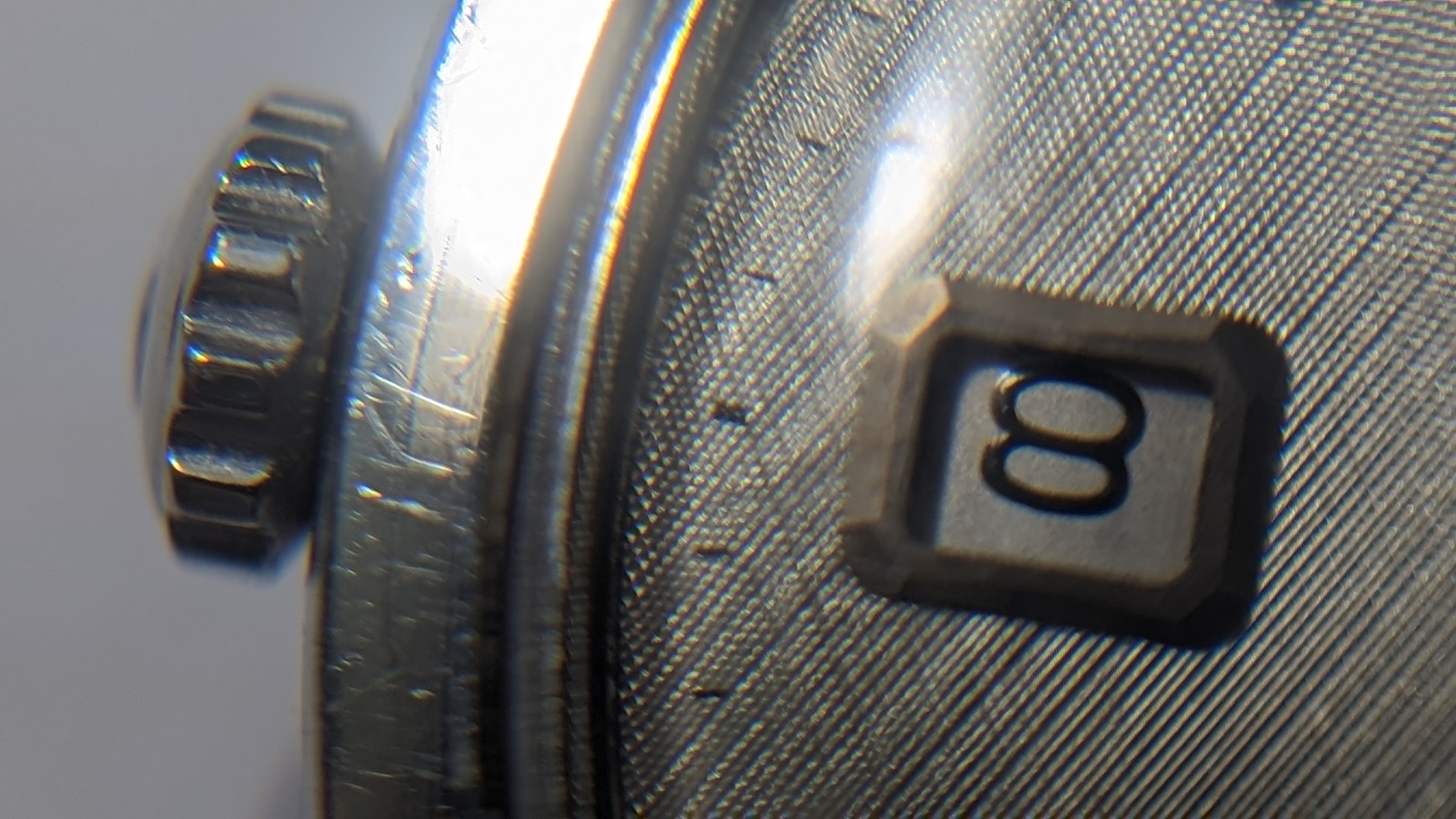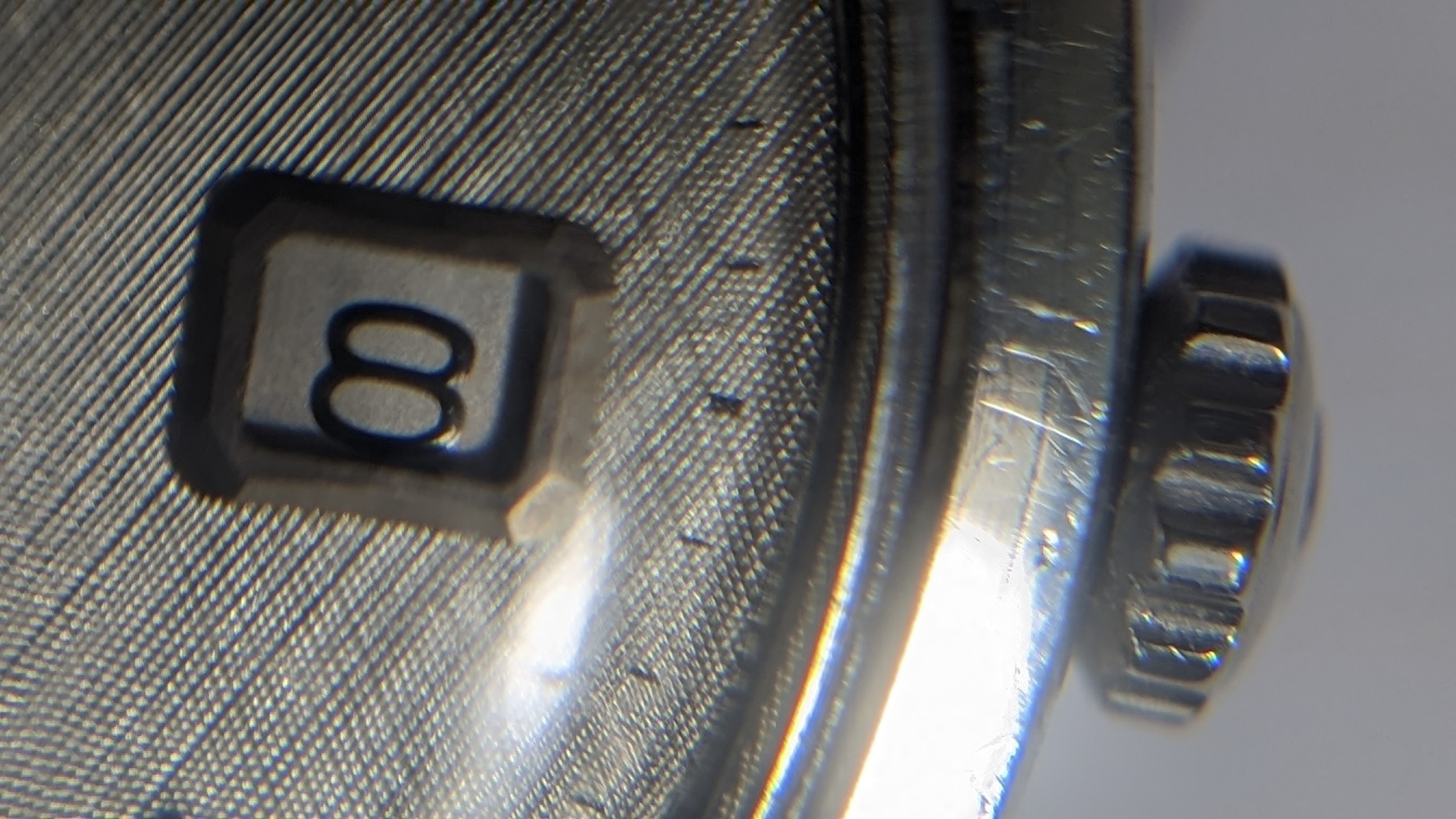 Case: Stainless Steel case and bezel with stainless steel back. Unpolished in my hands but not sure prior to my ownership. Examine the photos of each lug carefully. No damage beyond typical scratches of a watch that was worn proudly.