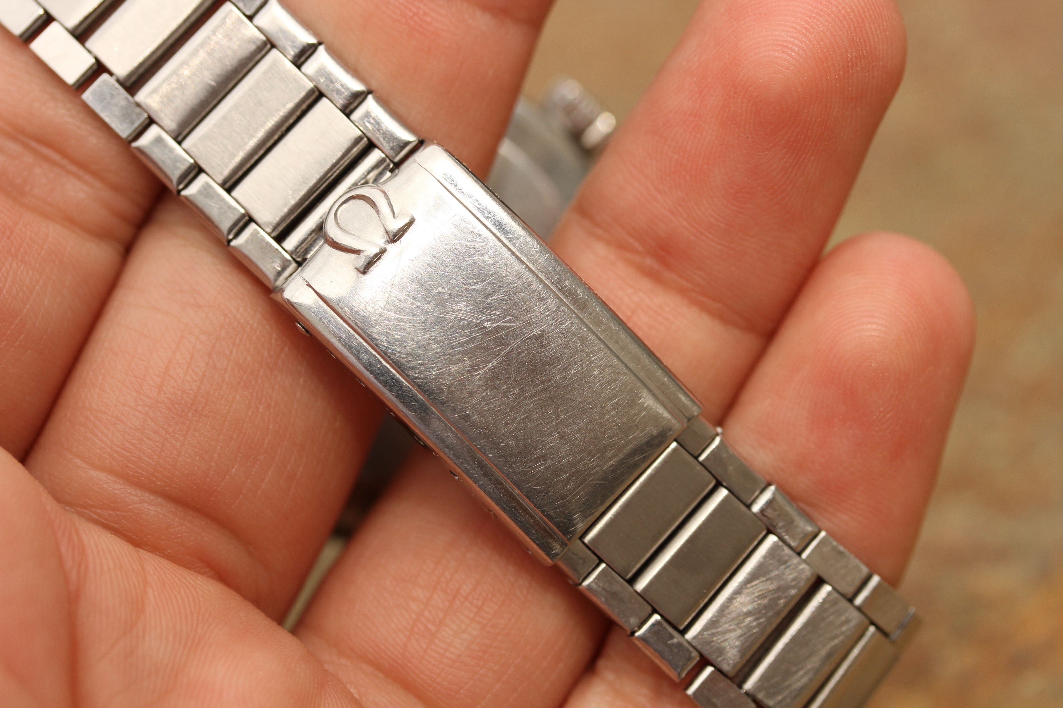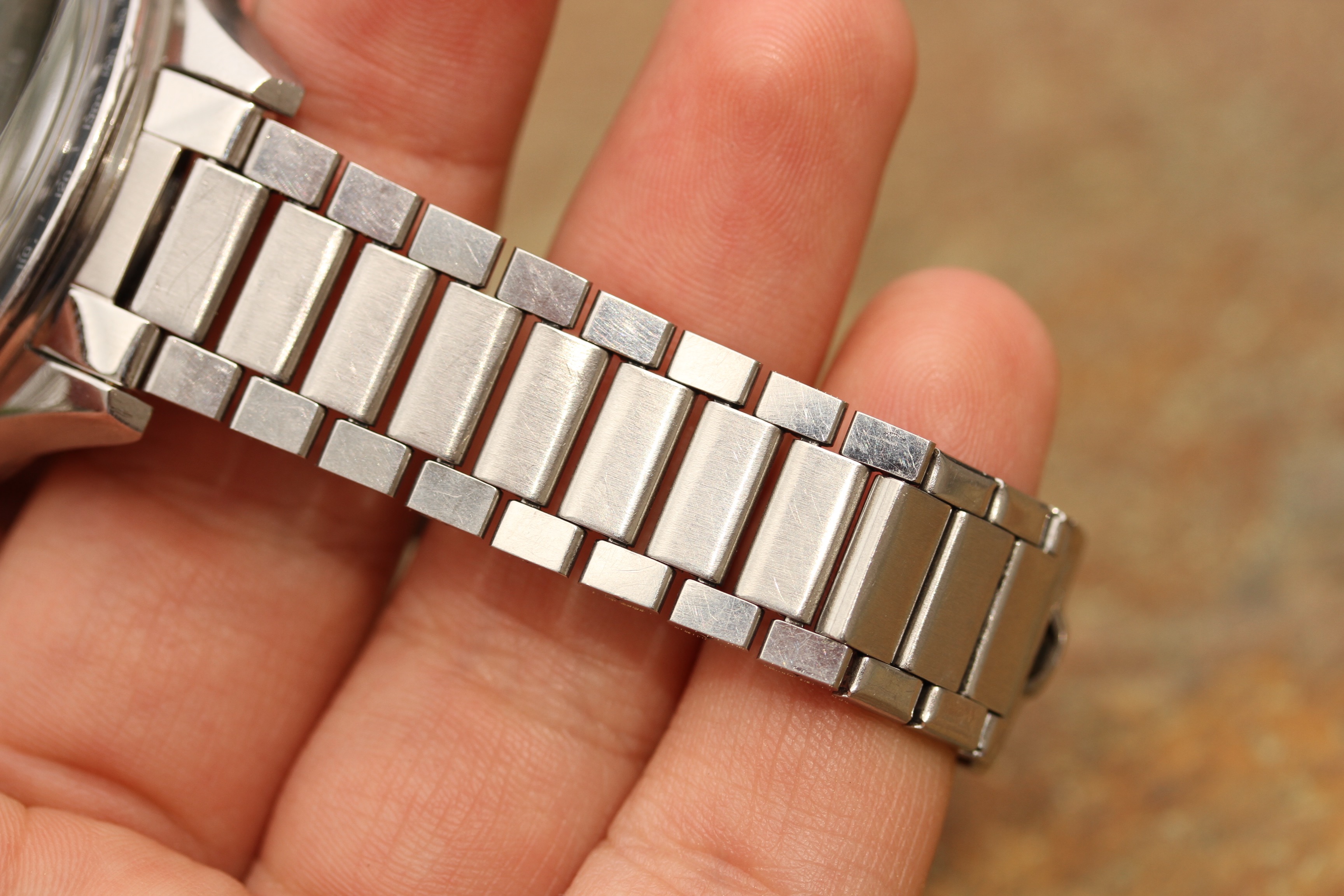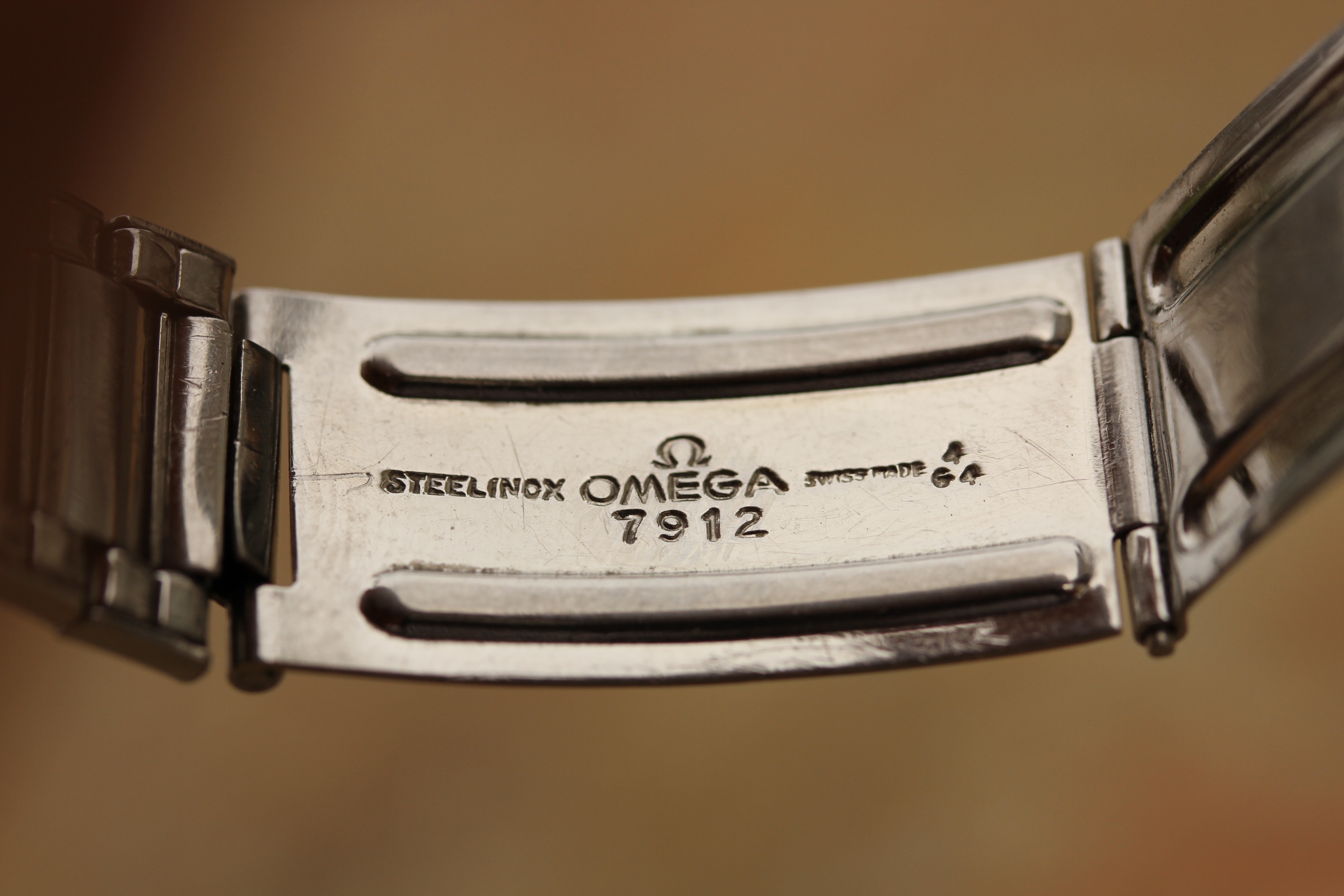 Bracelet is an Omega 7912 semi-stretchable flat link with correct "6" end-pieces and '64 date code on clasp. Excellent and tight condition.