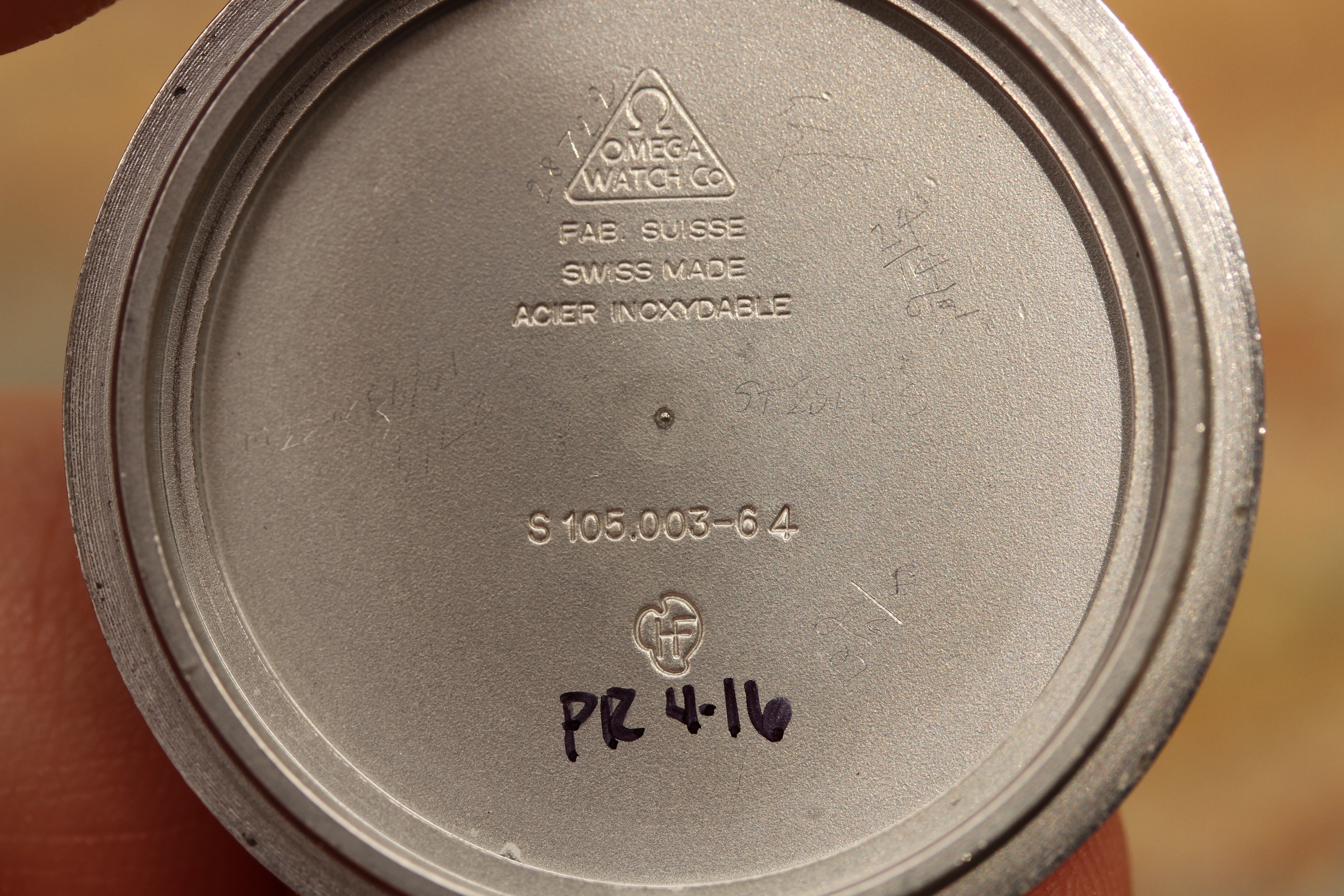 Caseback is original, with clear and crisp Hippocampus engraving. Stamped 105.003-64 inside.