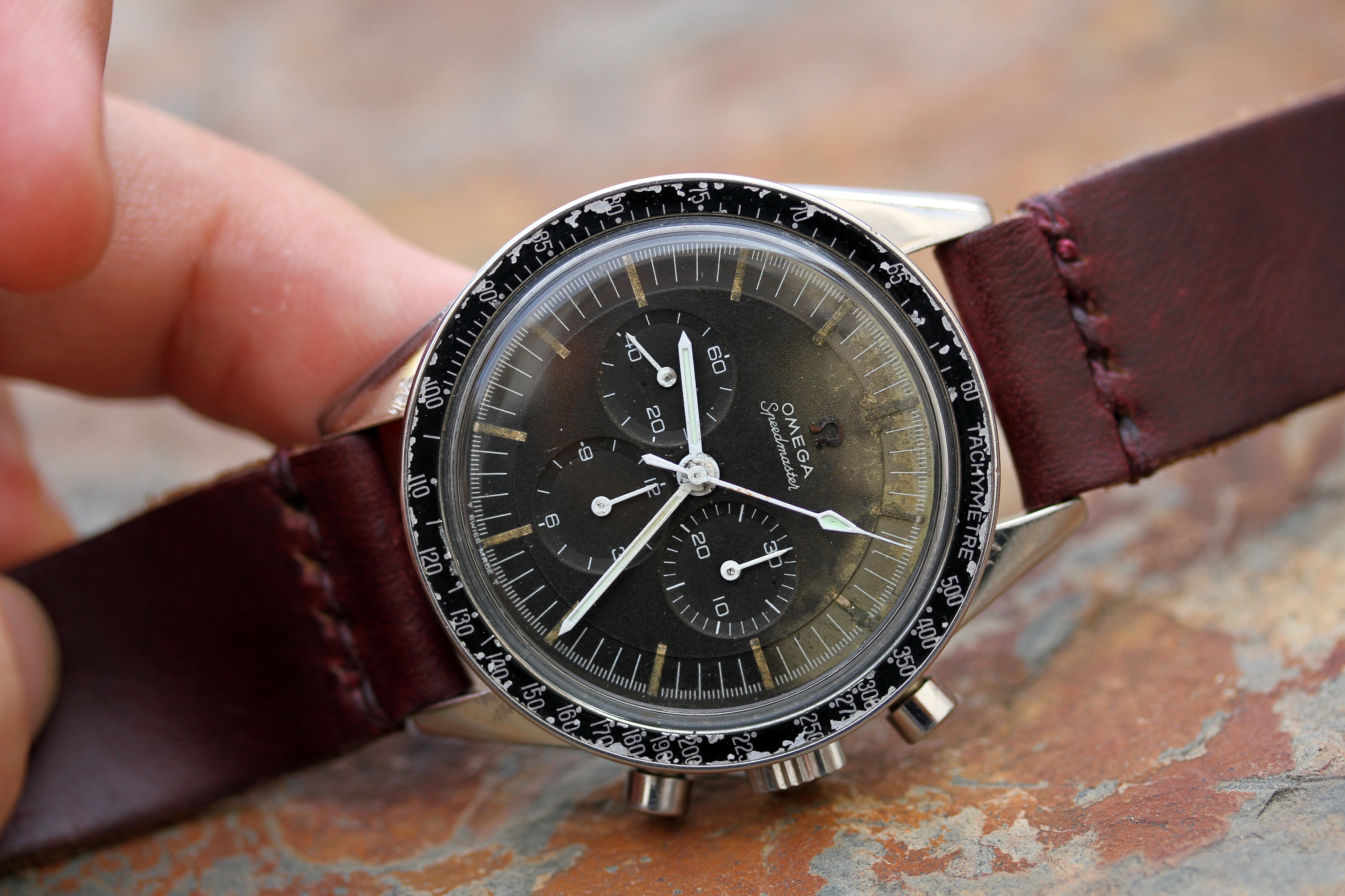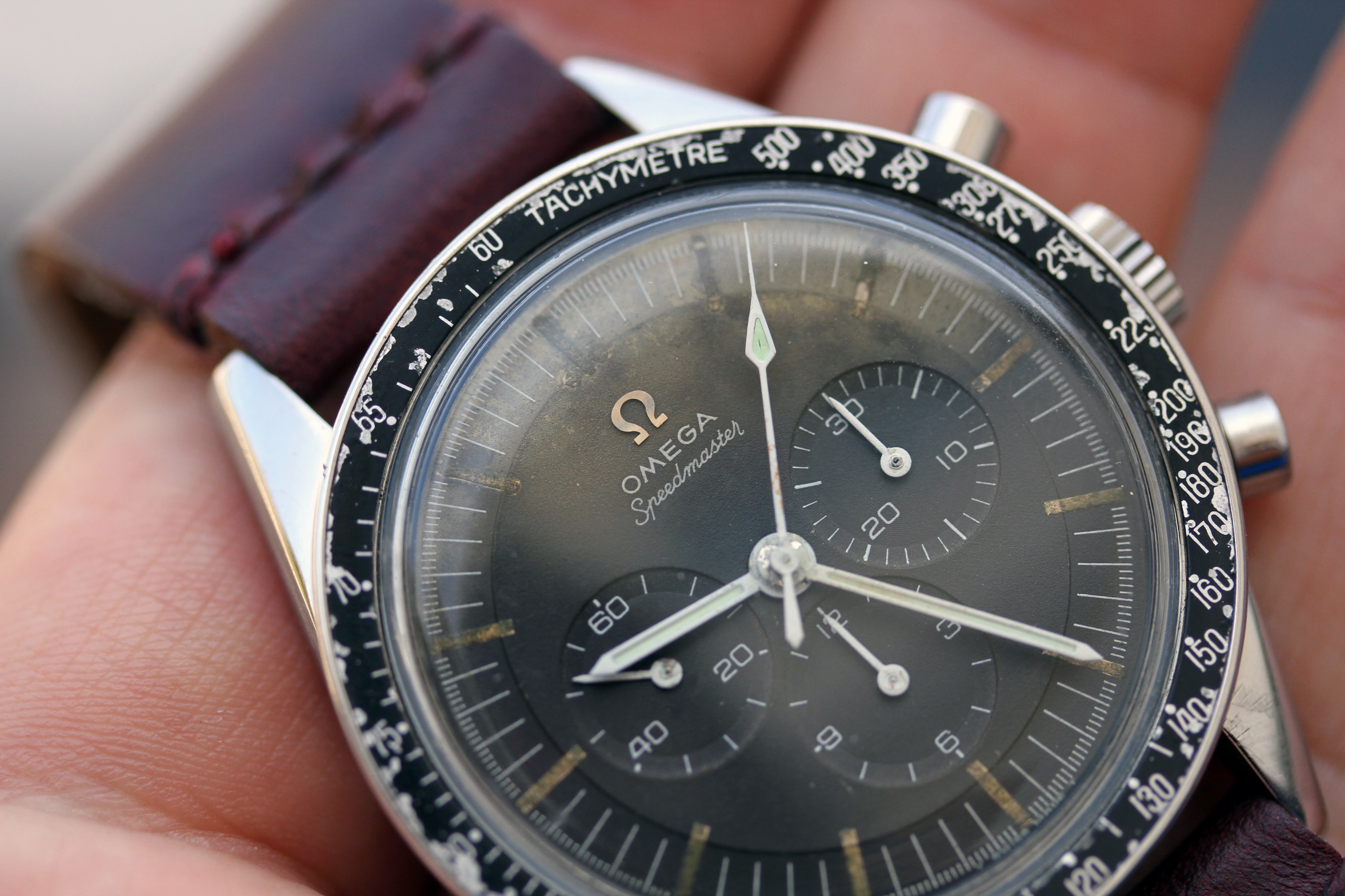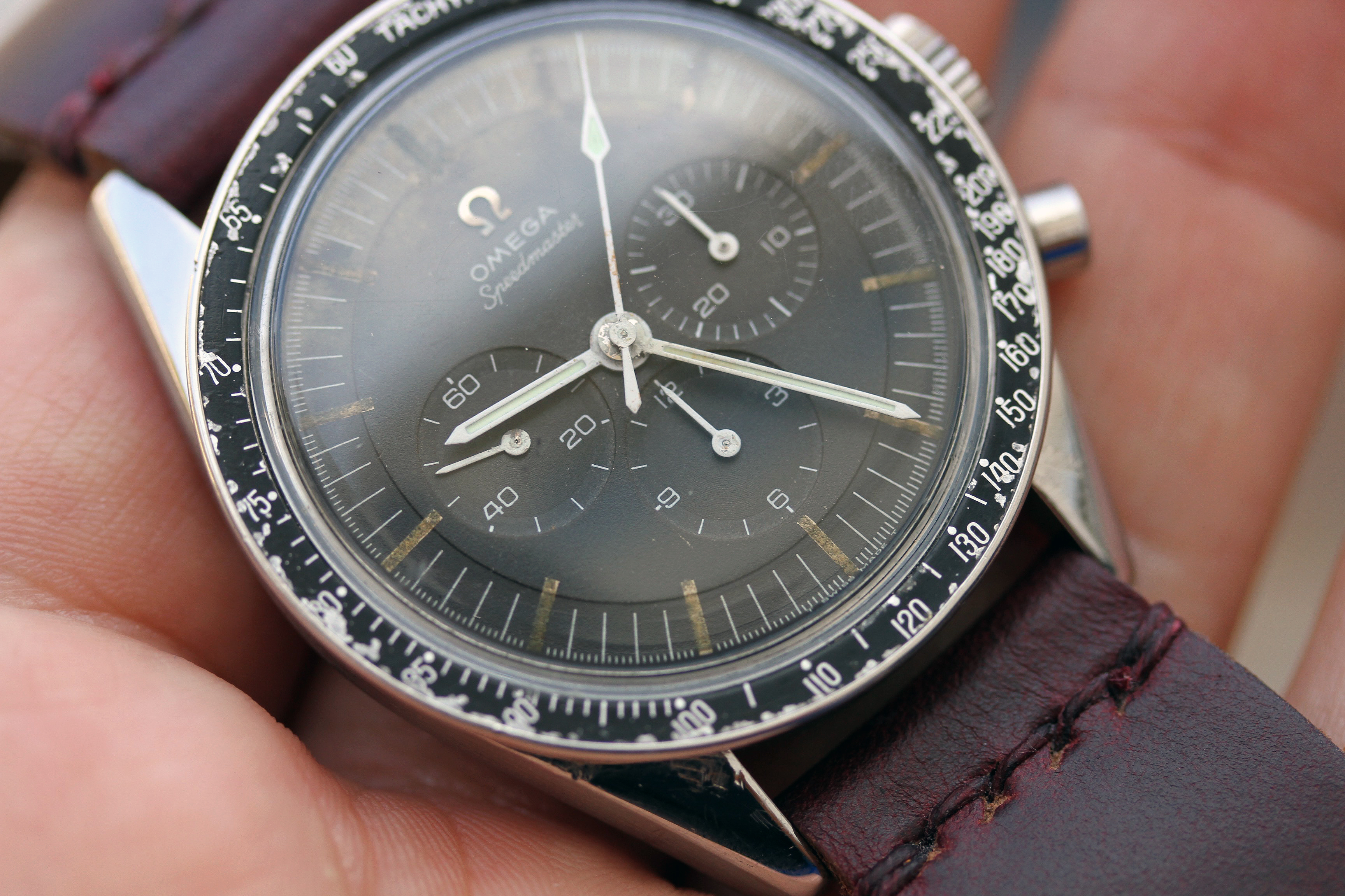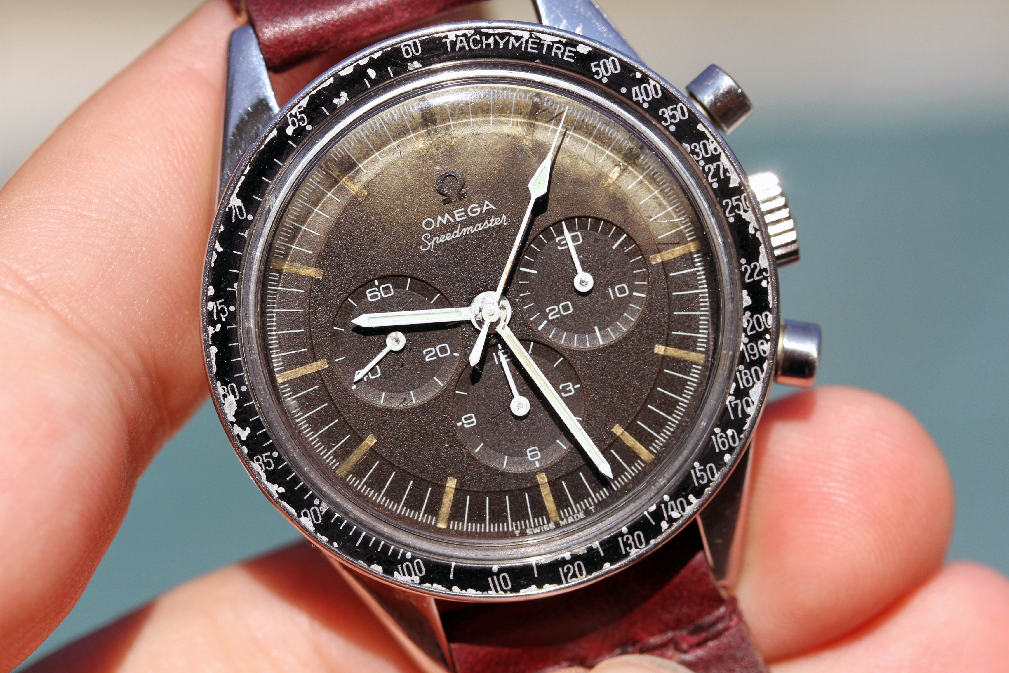 Dial is tropical brown with faded upper right side. It got "the look" and looks awesome in person. We'll call this one the "young moon" Speedy with the way it has aged 😀