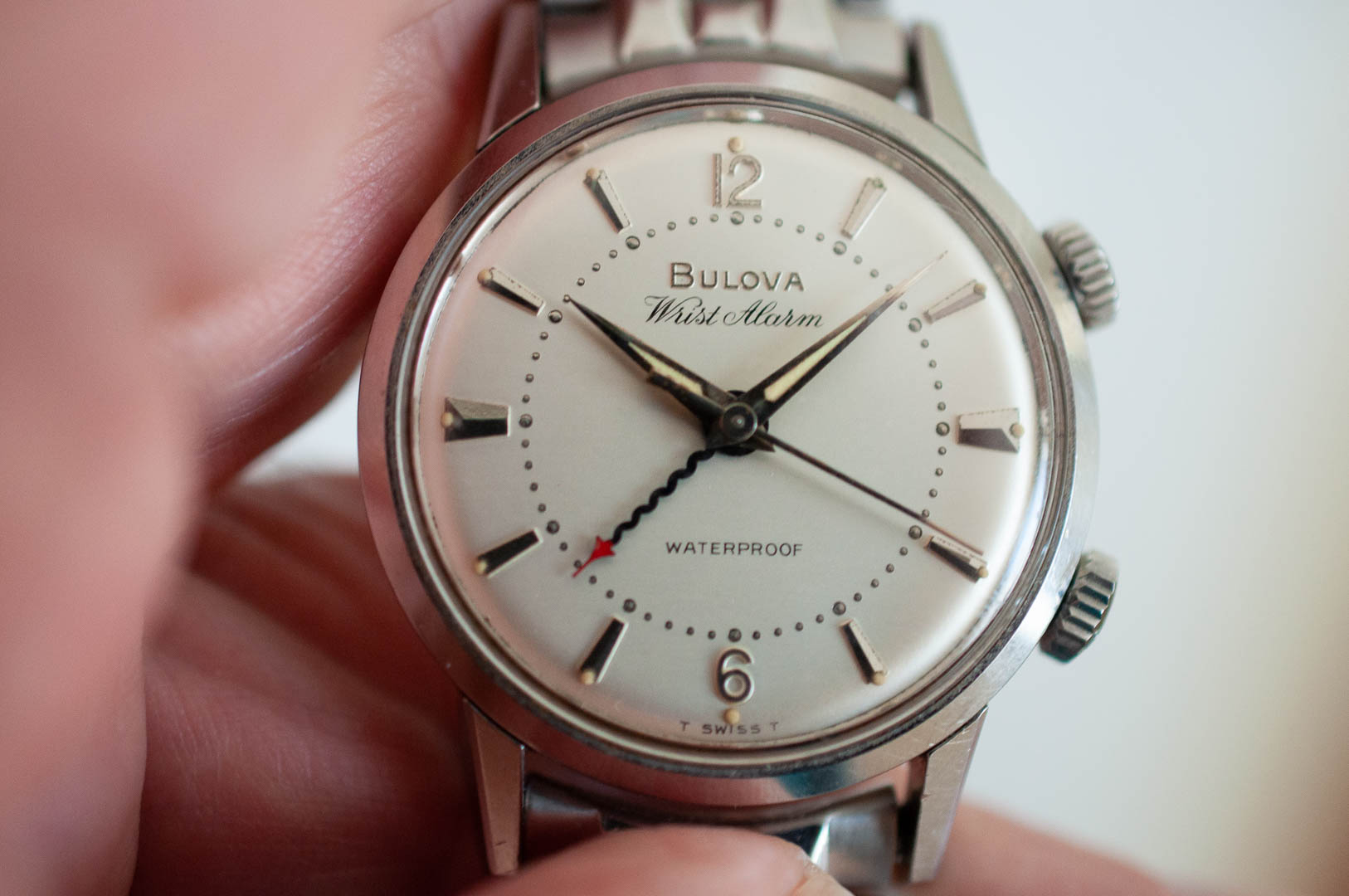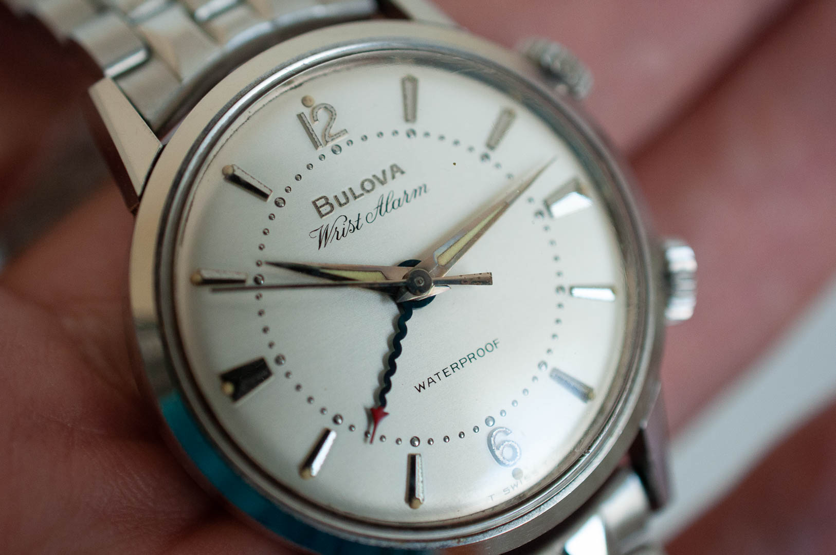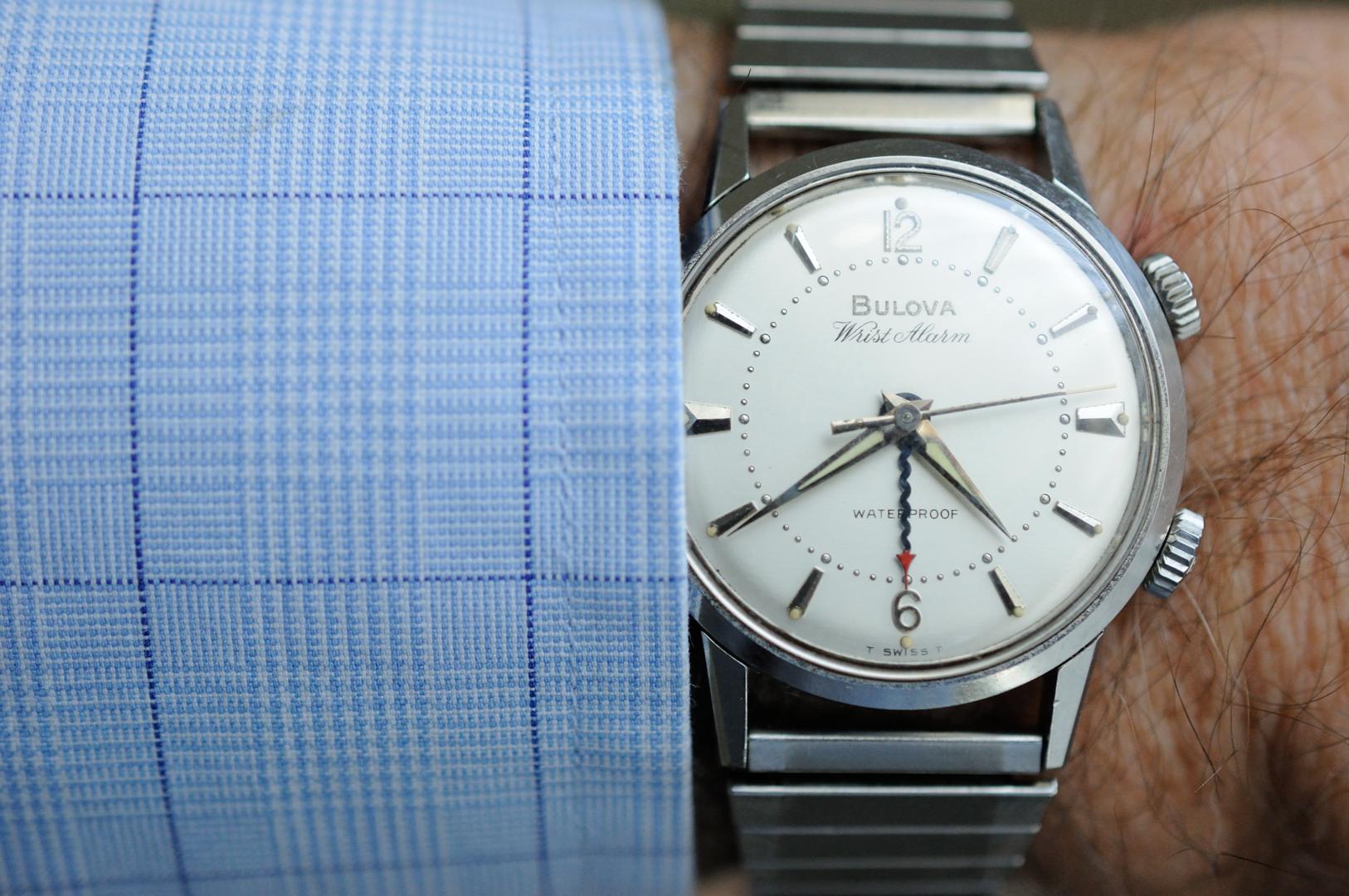 ··Most fun screen name at ΩFThis is one of the iconic alarm watches from Bulova. It's in very good condition, runs well ( I had it serviced about 8 years ago but don't have any papers, you probably want a service for daily wear) and the alarm functions. The stainless steel case measures 34mm x 41. Both crowns are signed. The JB Champion stainless steel bracelet will easily fit a 7.5 in (190mm) wrist with some more adjustment expansion.