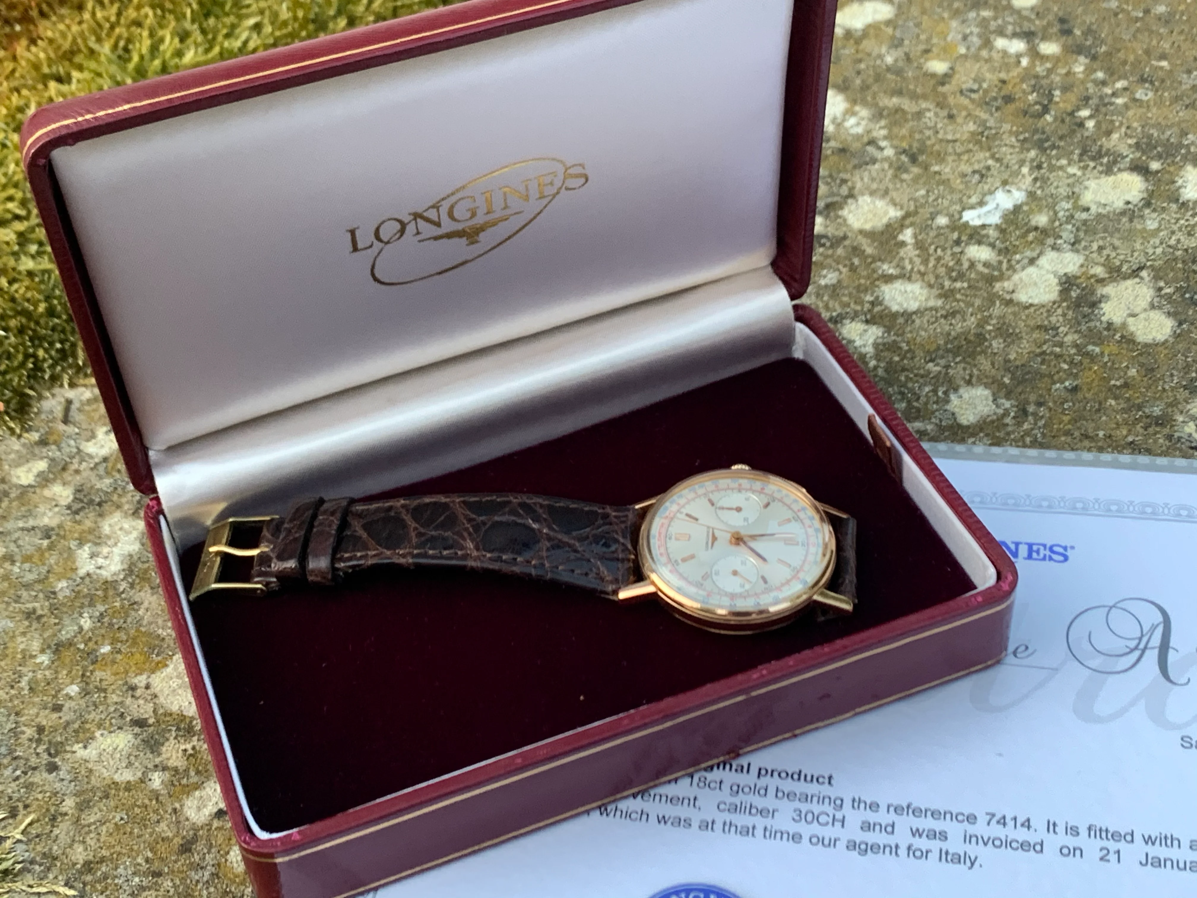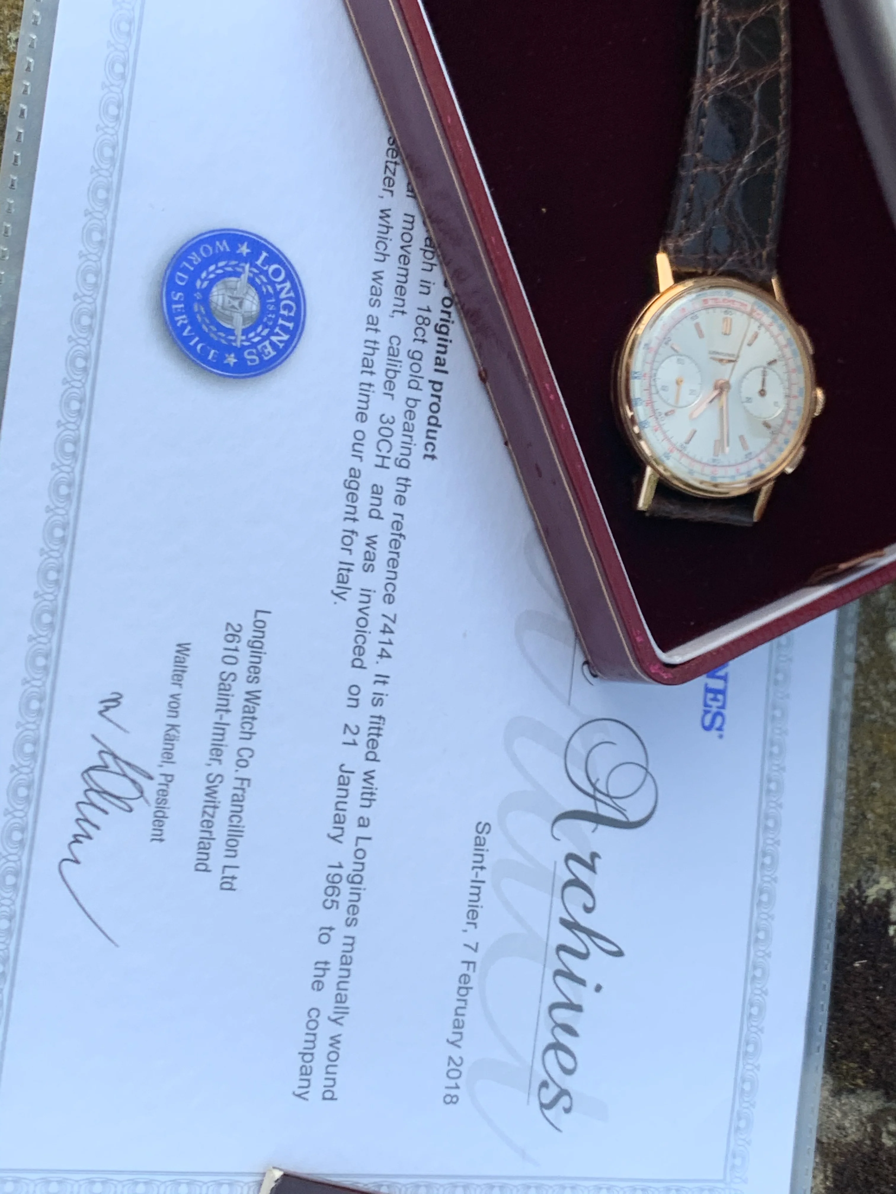 Box / Papers: As pictured, this includes box and papers. It also includes the Longines extract from the archives which is a nice addition to add to the provenance.