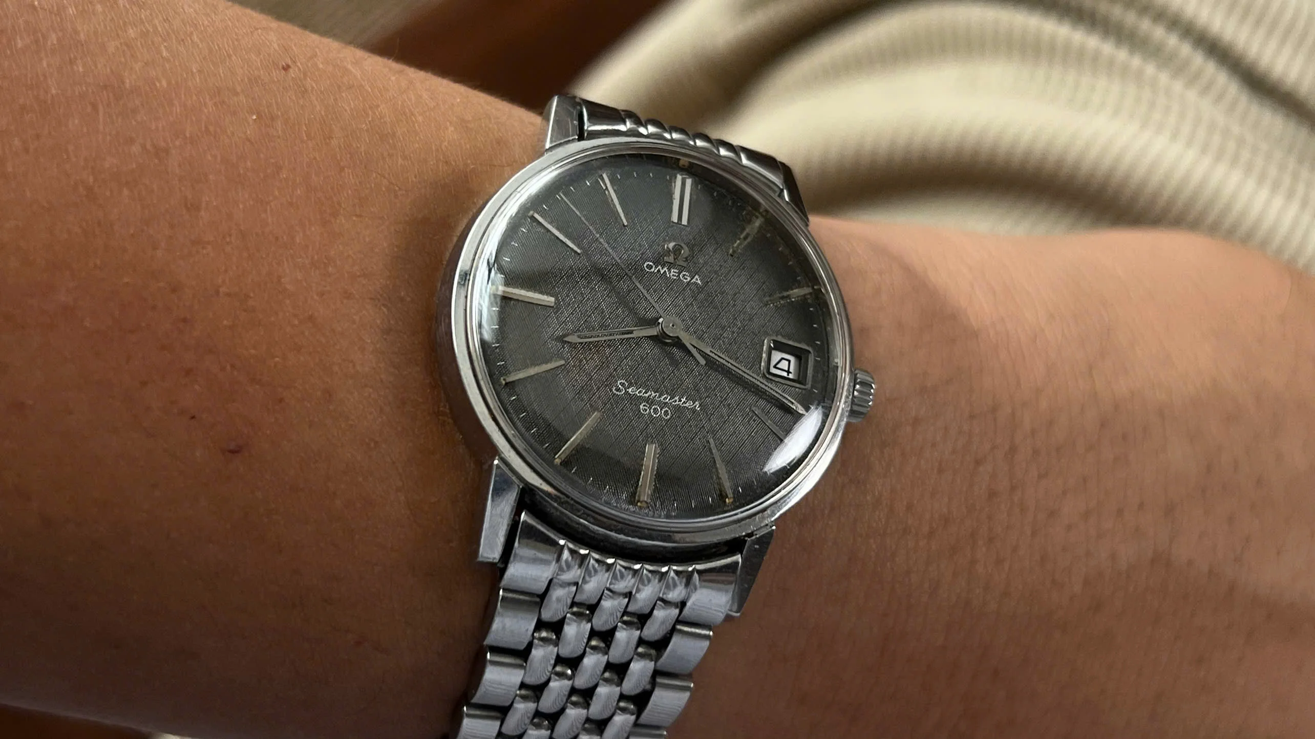 ·For sale is a 1965 Omega Seamaster 600, reference 136.011, featuring an uncommon original grey “linen” dial and powered by the hand-wound Cal. 611. The watch was fully serviced in July 2025 and is running well with strong amplitude and good timekeeping.