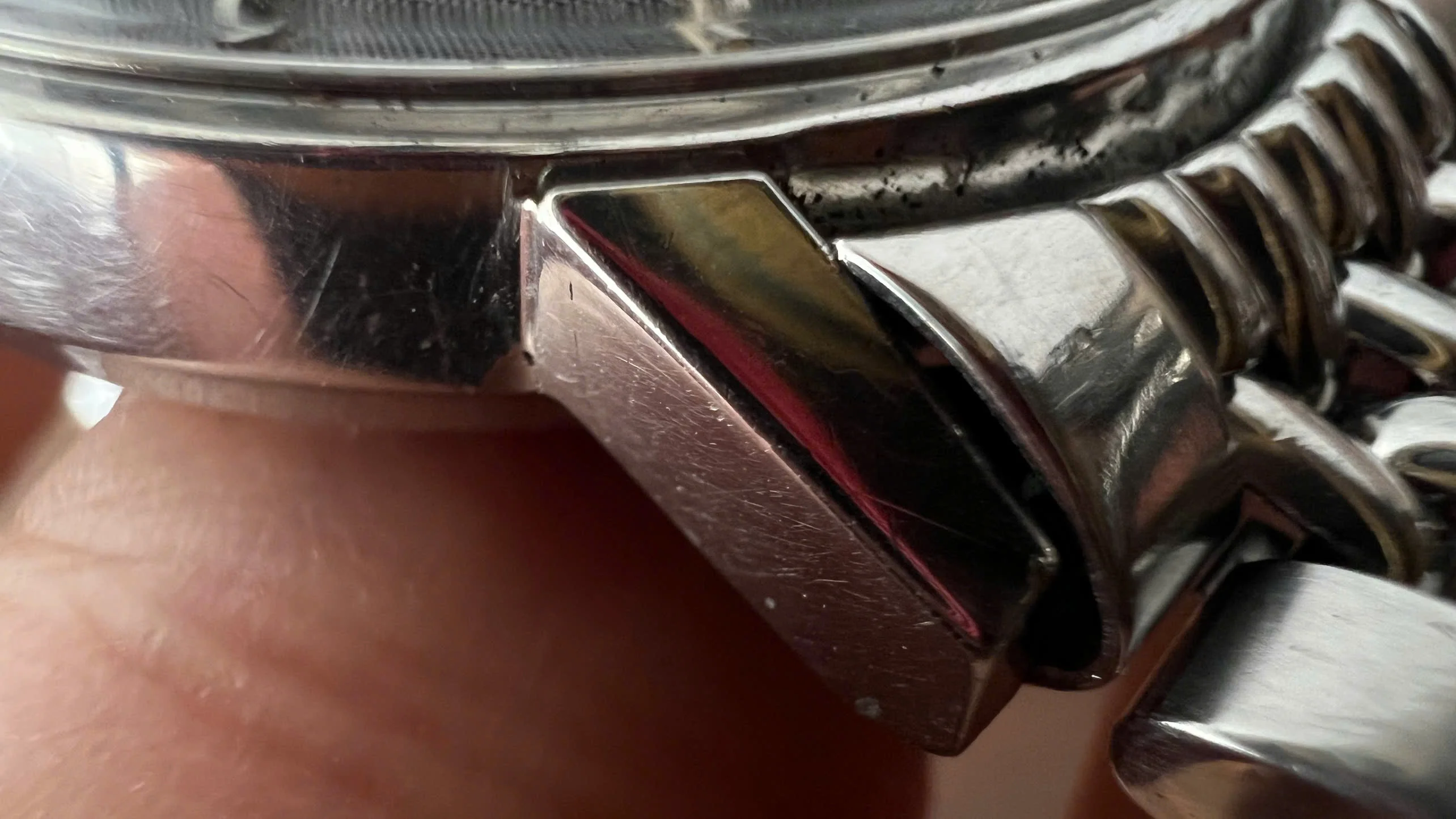 This example comes with the original Omega 5-row BOR bracelet (Ref. 1502 with 11 endlinks), fitting up to ~7.5" wrist. Head-only option is available as well.