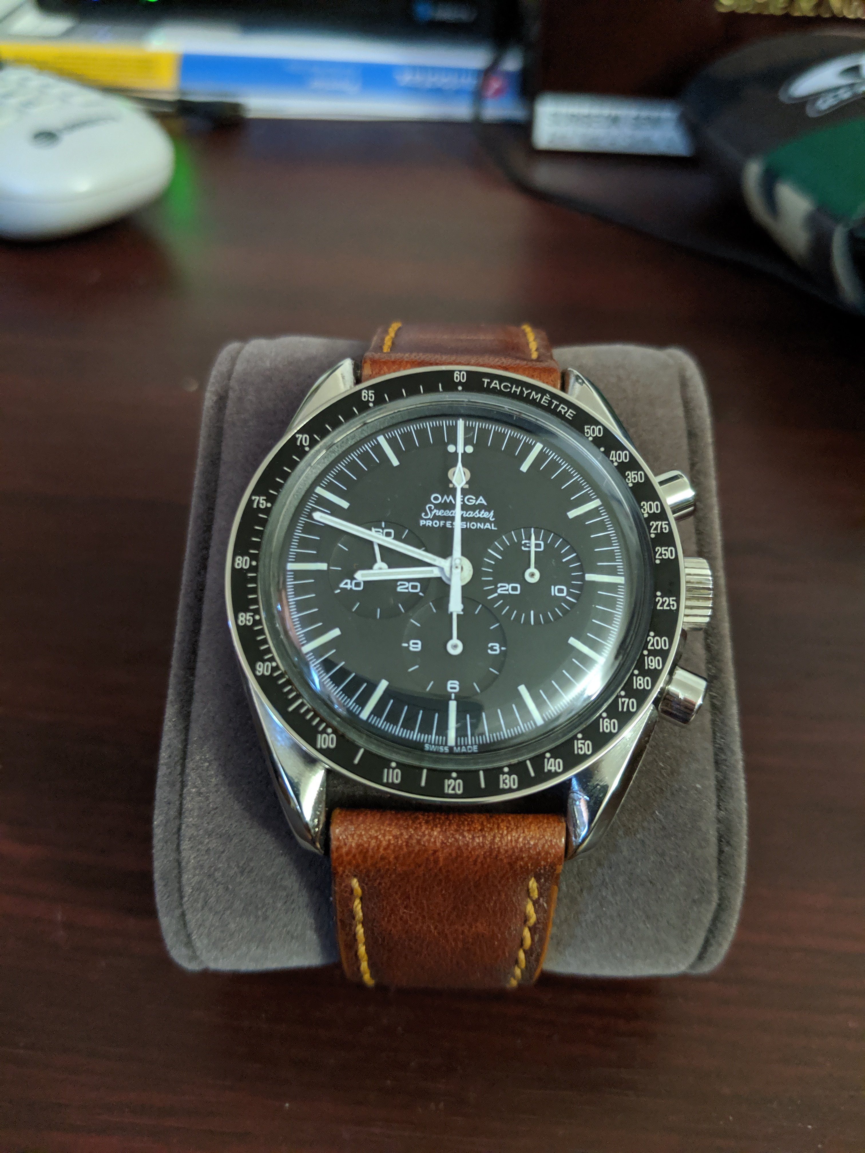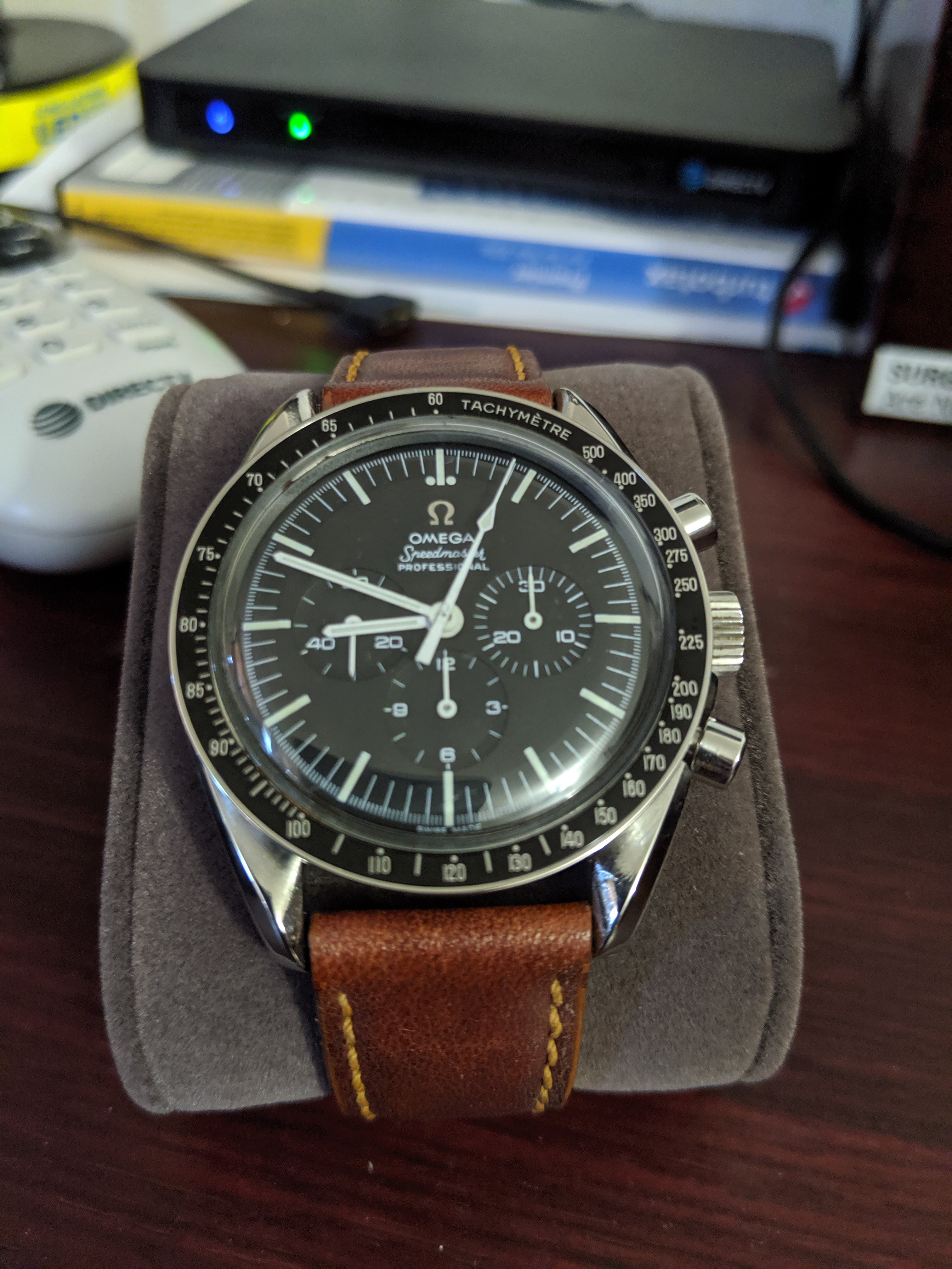 ·I have a 1965 Speedmaster that I've owned since new. Over the years the box and the other pieces that came with it have been lost. The problem I have is that it's been so long since I had this stuff, I don't remember exactly what color the box was and what was contained in it..If anyone could upload or email me a photo, I would greatly appreciate it. At least with some pictures, I would know what to look for to replace what was lost.