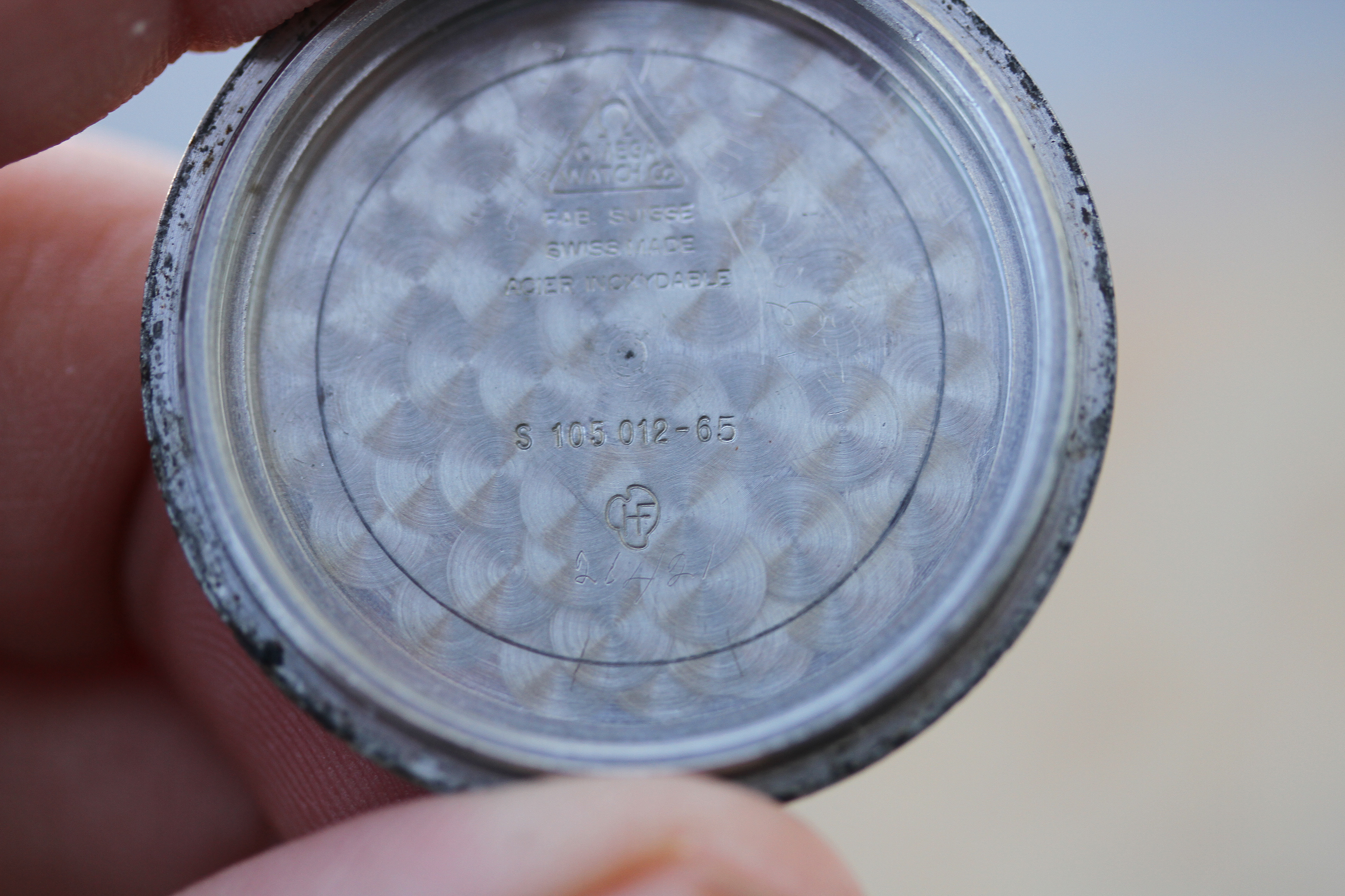 Caseback is in fair condition with crisp Seamonster, visible double step, stamped 105.012 - 65. Please note corrosion on the edge of the caseback.