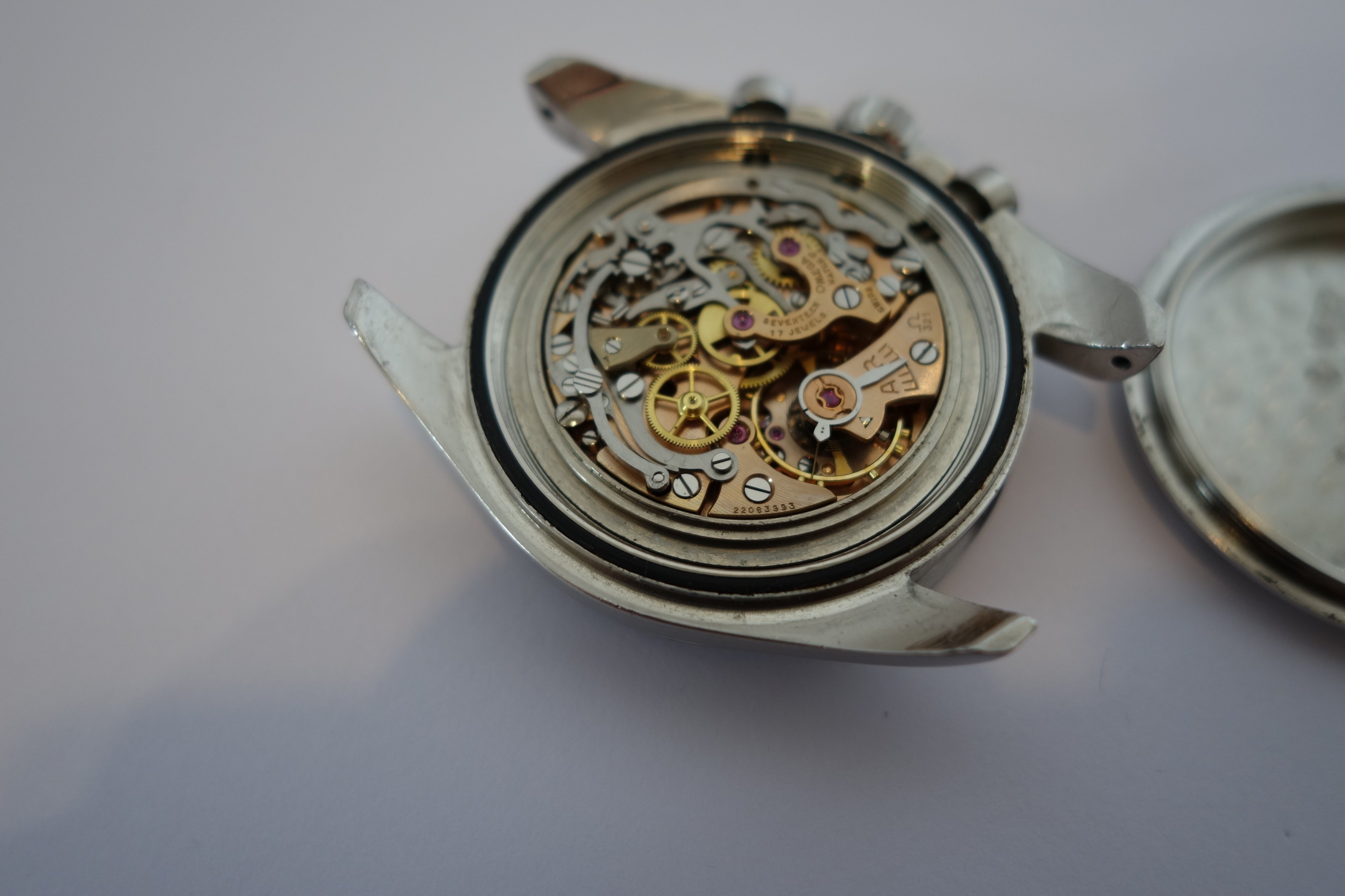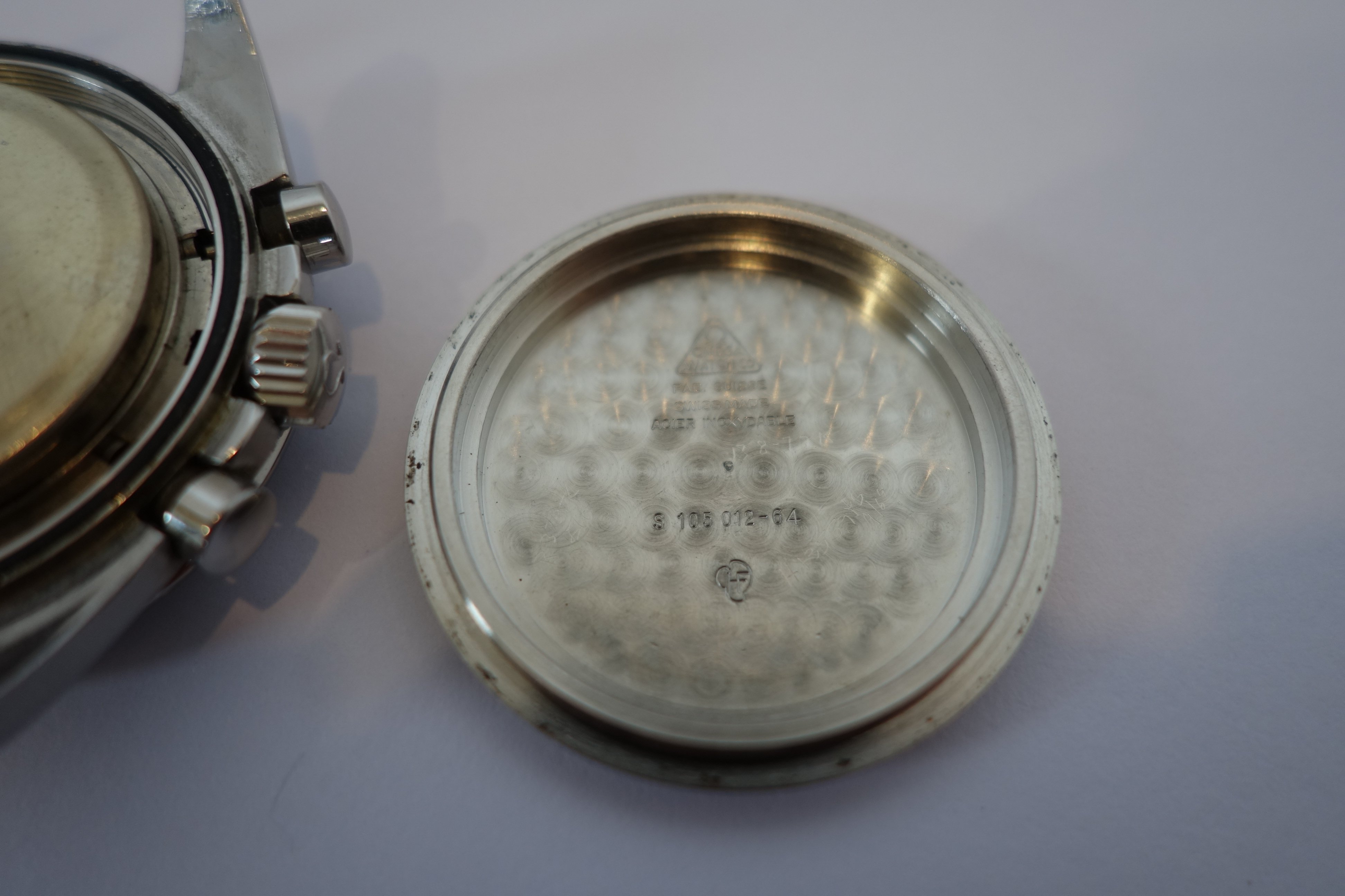 CASE: Overall good condition with minor nicks and scuffs commensurate with age, I would guess it has seen a light polish in the past. Double step caseback is in good condition, with clear hippocampus engraving on outside, and reference number on the inside. Original flat foot crown and short/fat pushers are all in good condition.