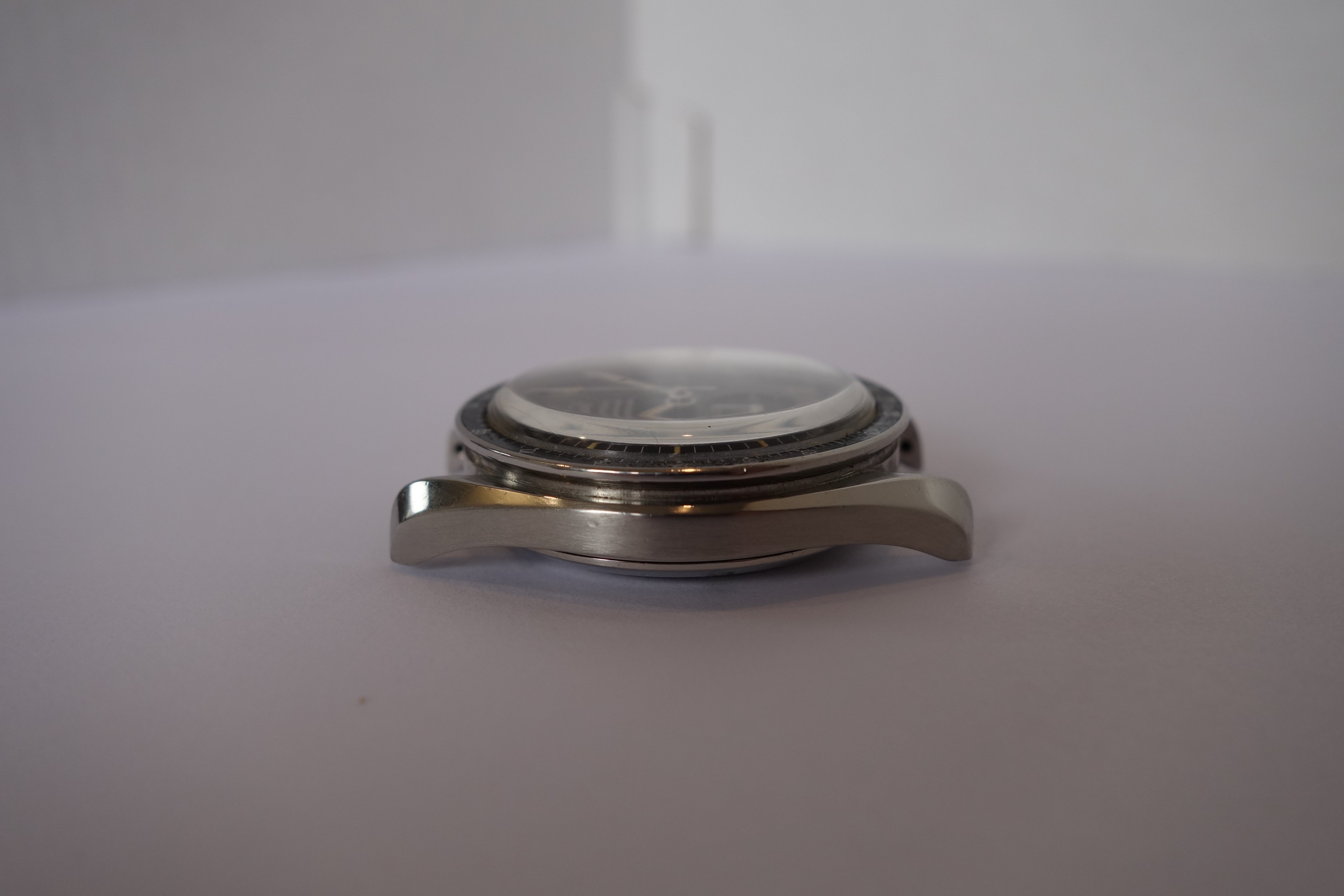 With great dial patina, and a rough but attractive bezel, this early Moonwatch has plenty of vintage character.