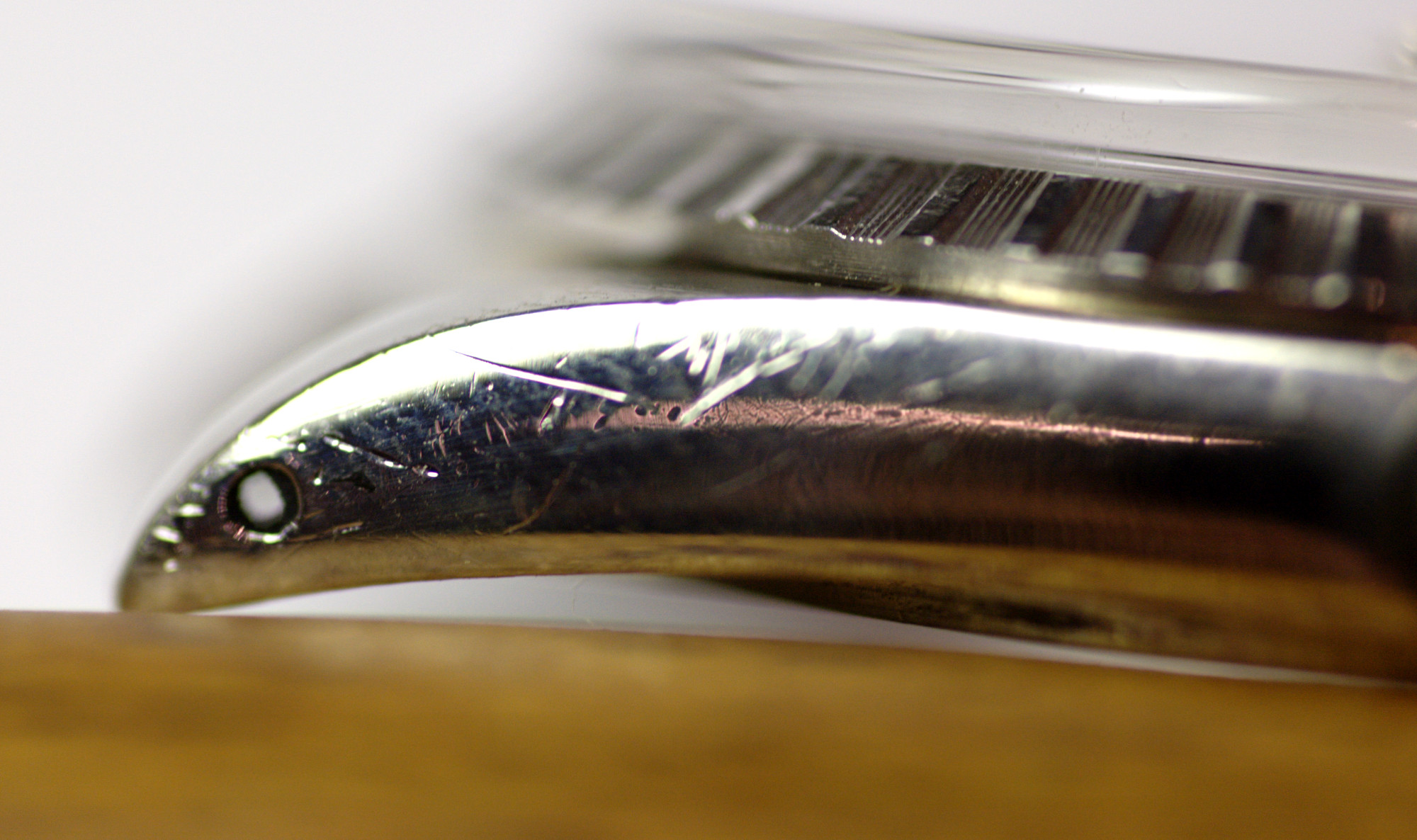 Condition : crystal is very good, case is quite OK except some hits on a lug, as pictures. I did not polish or refinish anything. Dial (originally champagne)+ hands are OK to poor, suffering from moisture damage. I got it from a retired watchmaker who had this laying around for decades, so I do not doubt the originality of the components, even if I can't guarantee the originality of the crystal. Screw threads are OK.