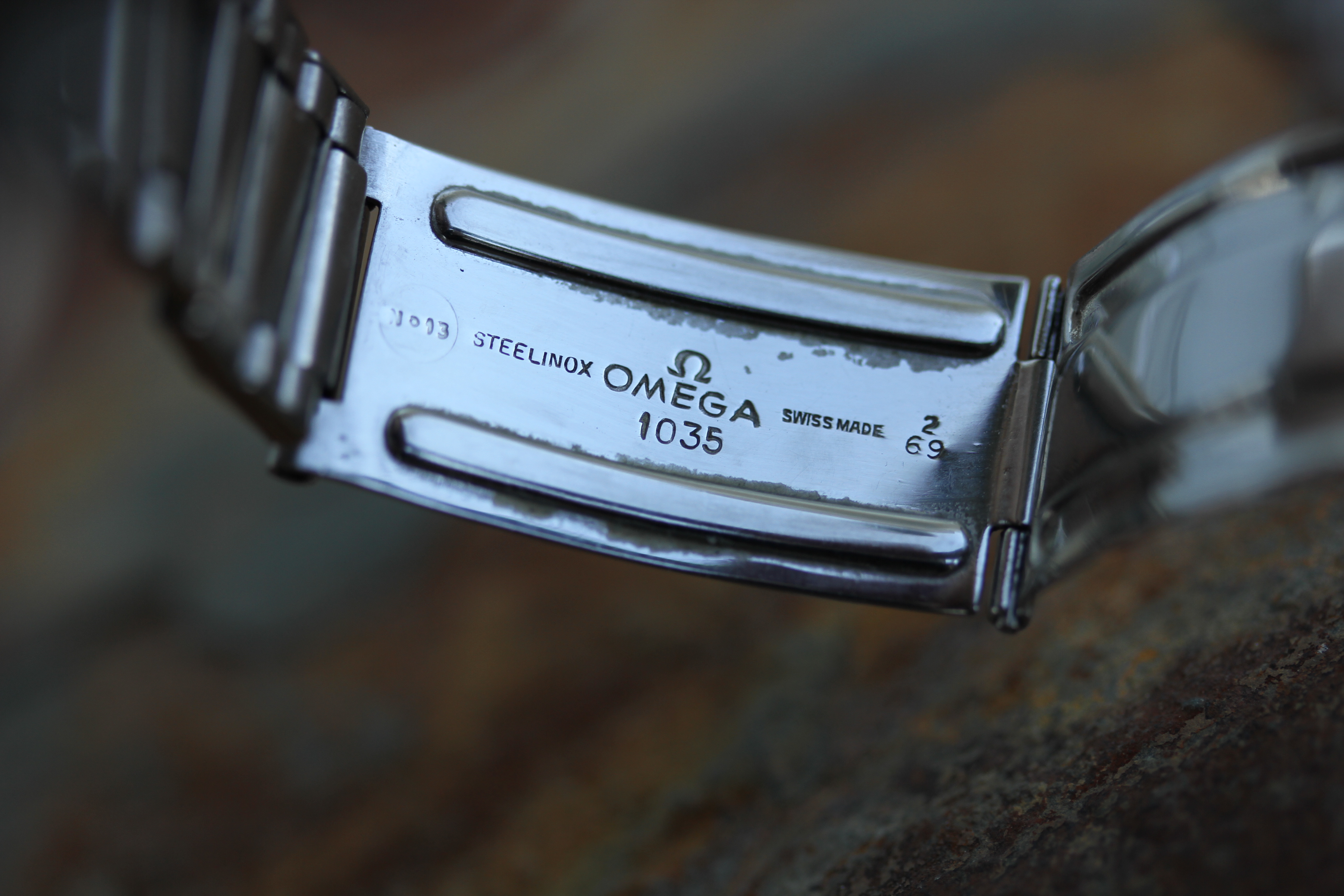 Comes on Omega semi-stretchy 1035 bracelet with 16 ends. There are 20 links total, 2.69 date stamp.