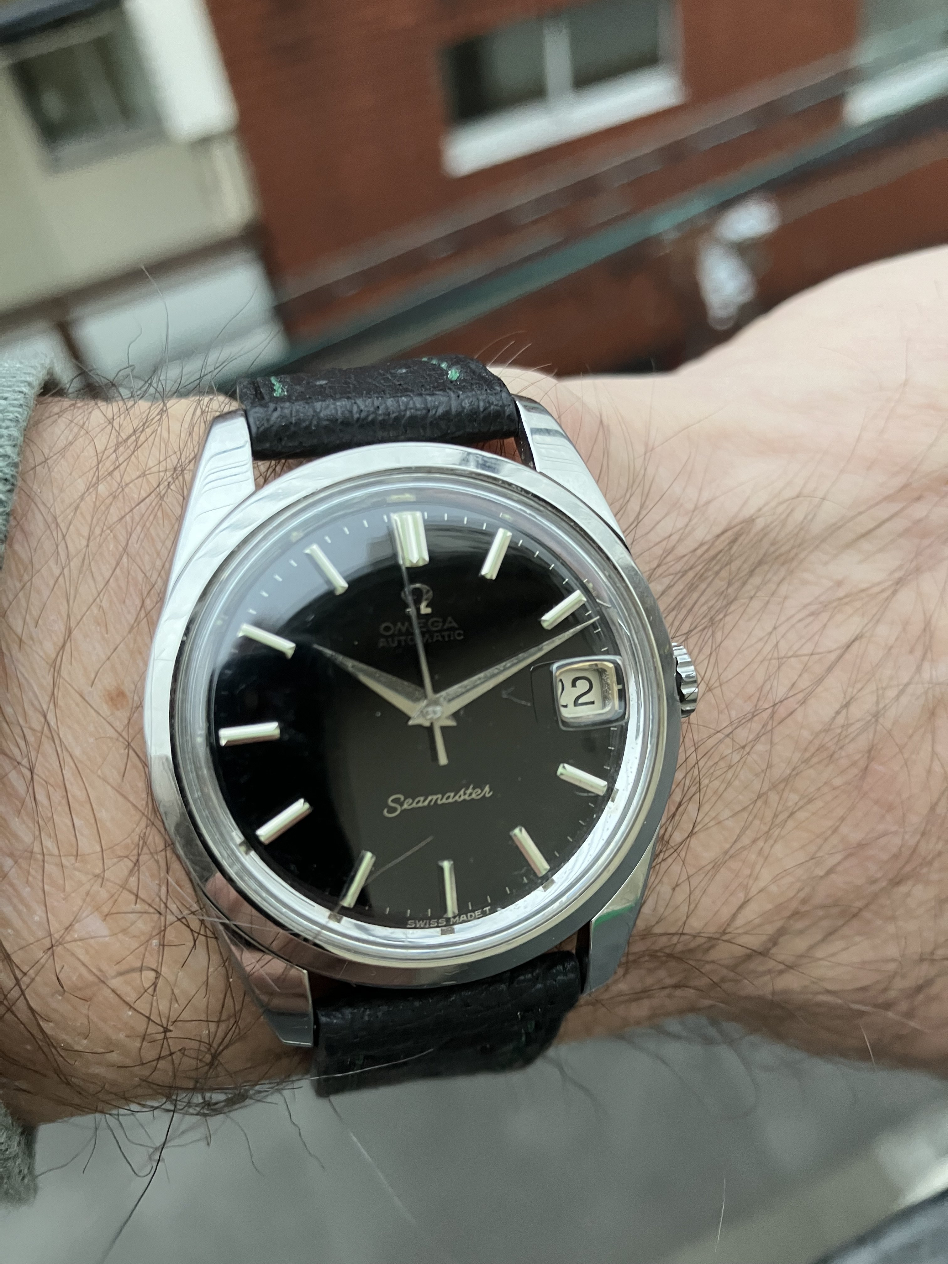 ·Selling my prized 166.010 Seamaster with an unusual gilt black dial in beautiful condition, with original thin scalloped crown. This watch was given a full service in December 2023.