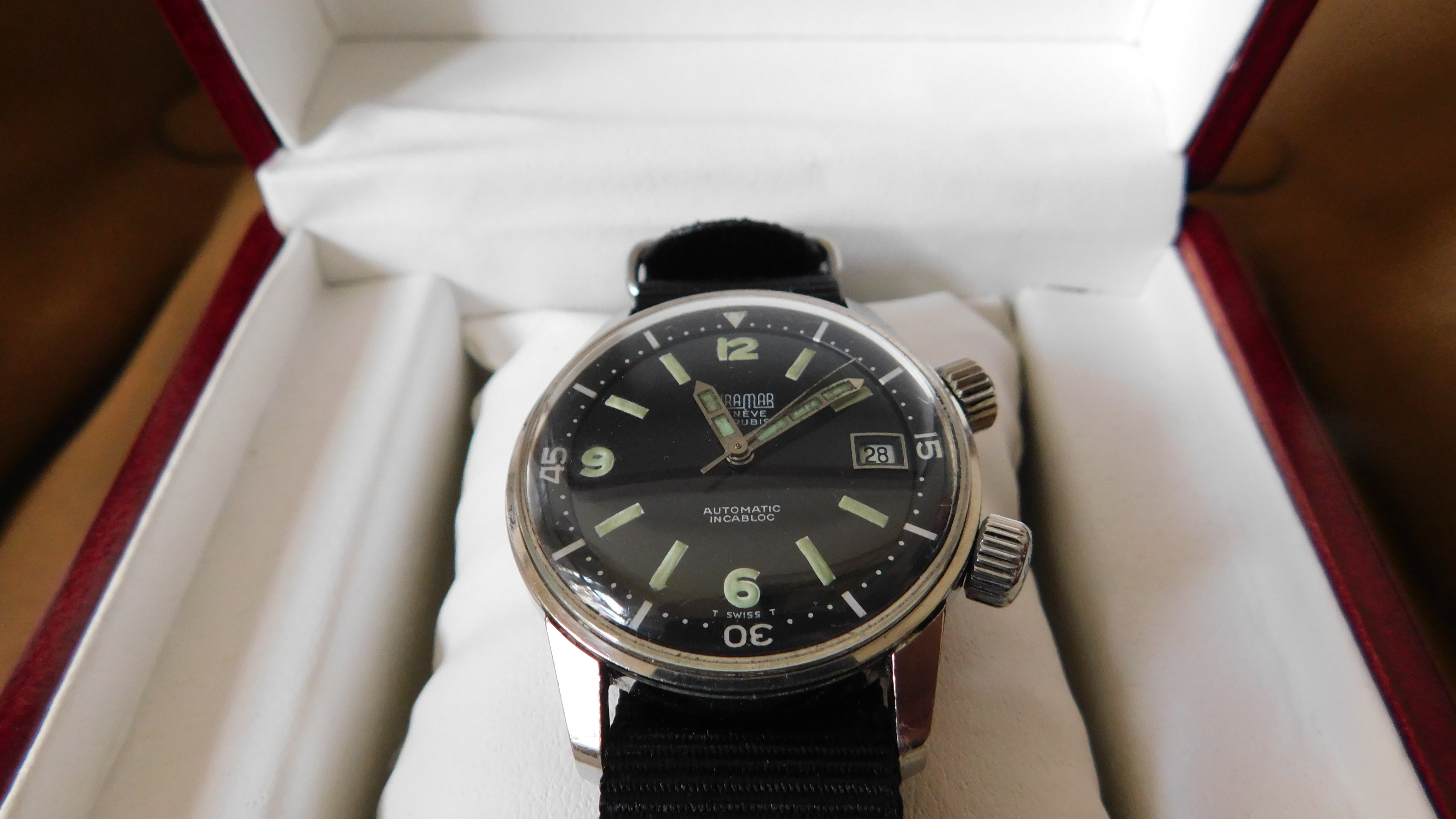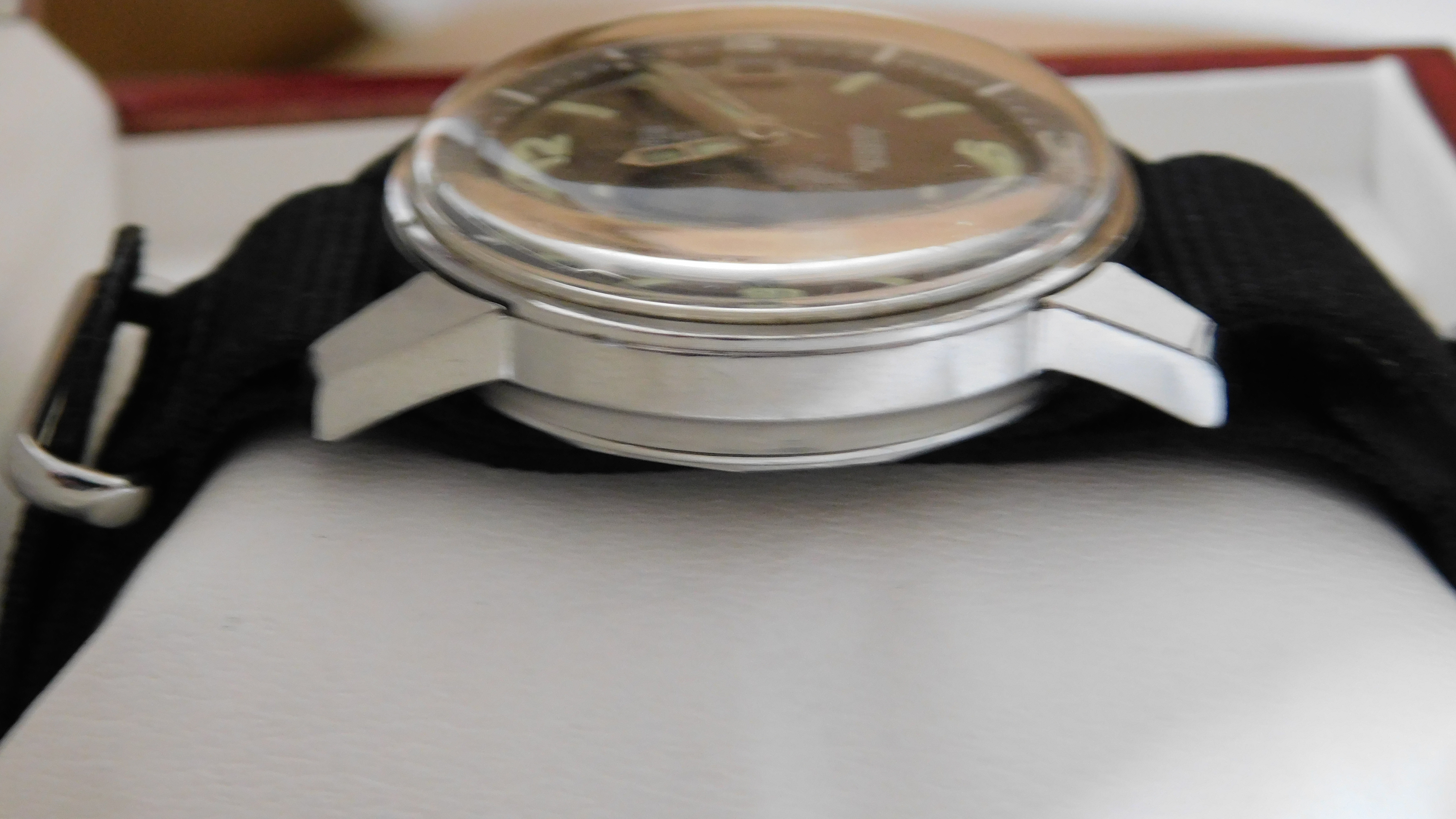 Comes on a black nylon NATO strap, which suits it well. I really enjoyed wearing this piece, but need to cover some new purchases, so this should go to someone who will wear and appreciate it!