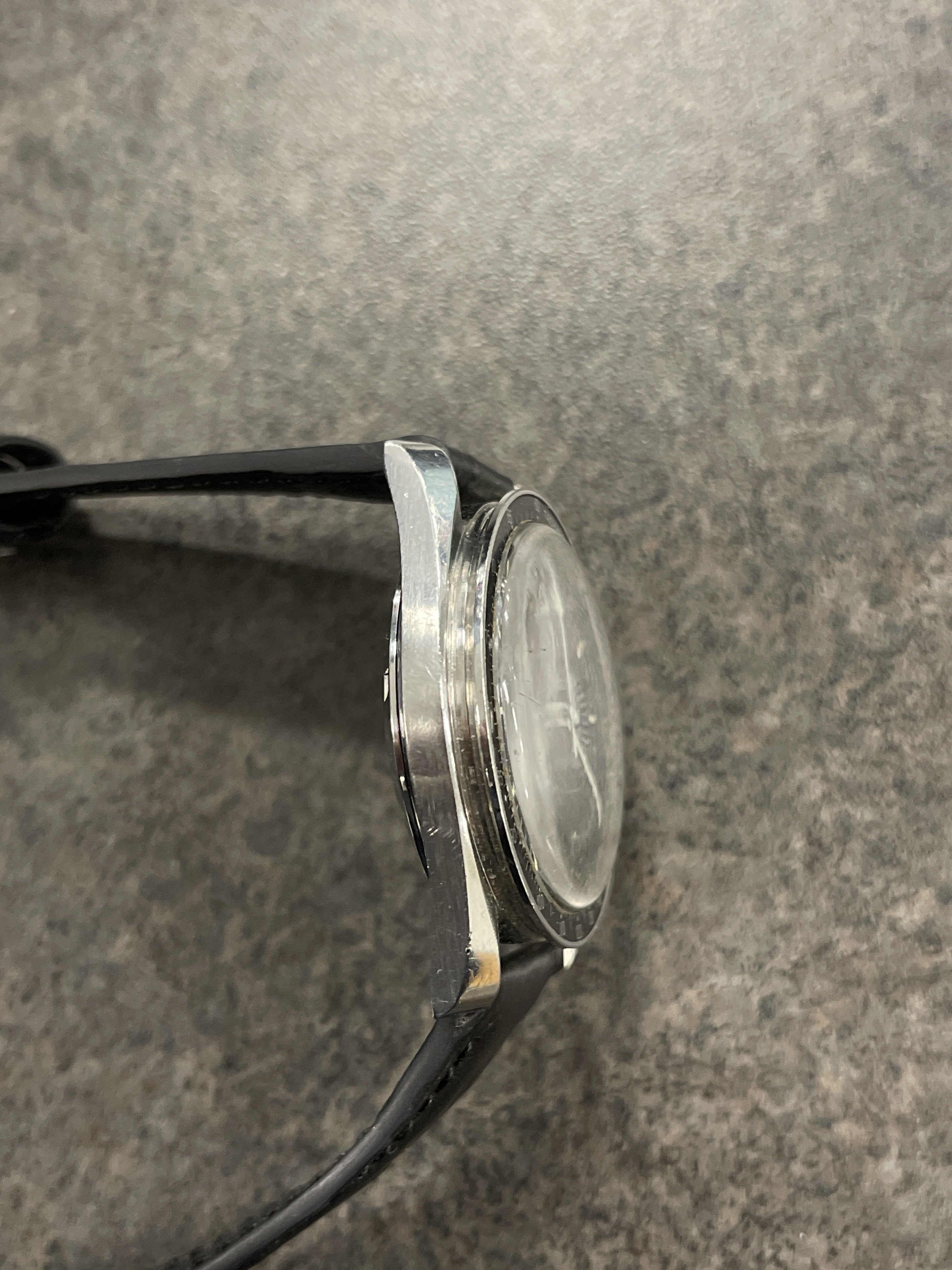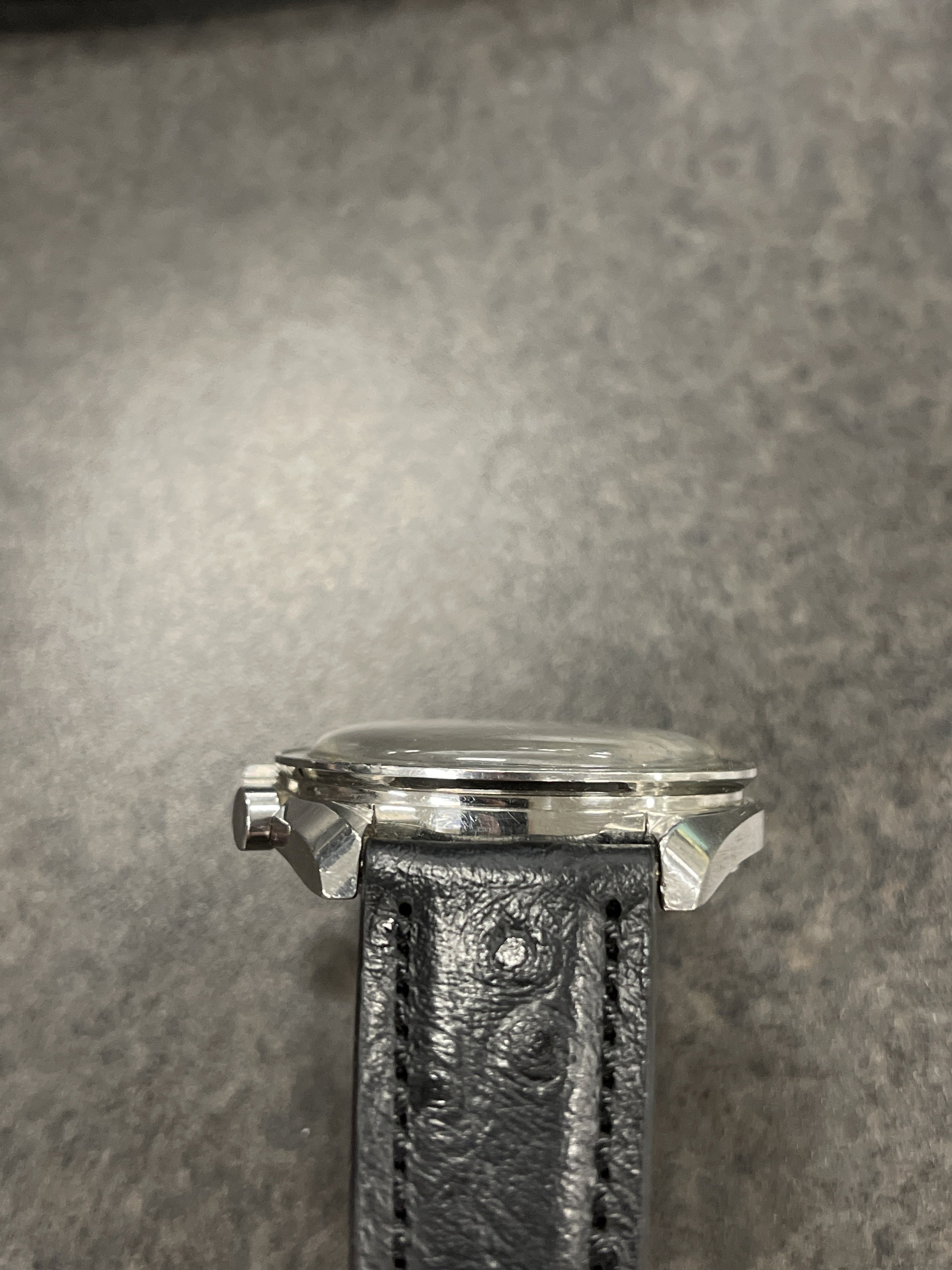 I would argue that this watch is unpolished. You can see the original brushing on the sides. Most 66CBs are so polished away that you can barely see the straight facets or stain brushes or the hippocampus on the caseback. There is a tiny chip on the bottom right lug that I tried my best to capture on camera. It is very minor. Pretty good shape for an almost 60 year old watch.