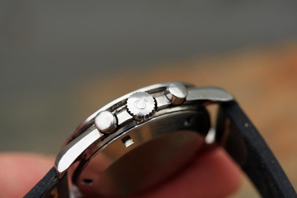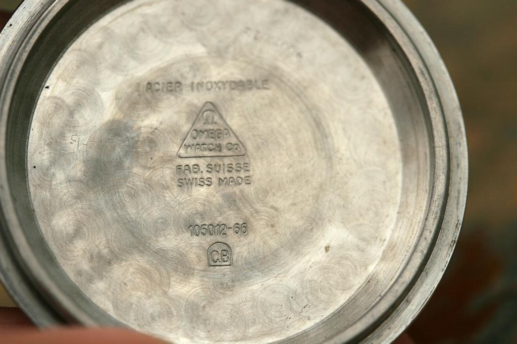 Caseback's Seamonster is worn down from use, but still partially visible. Caseback is stamped 105.012 - 66 and CB. CB stands for Central Boites, and these cases were made with a bevel on top of lugs, which is usually polished down over the years and hard to see. This case shows it clearly on each lug.