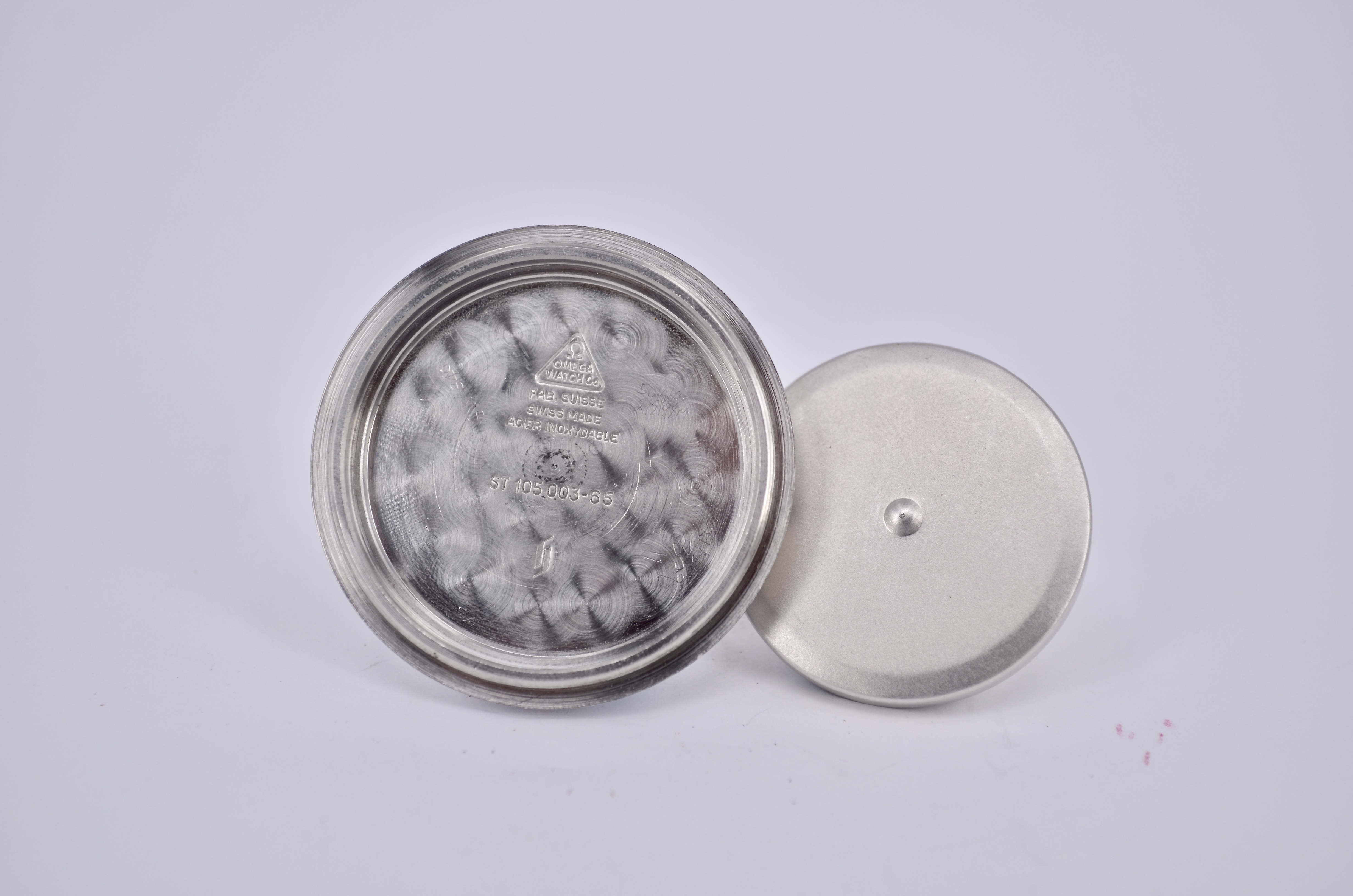 Case Back: Correct double bevel case back with Hippocampus stamped 105.003-65