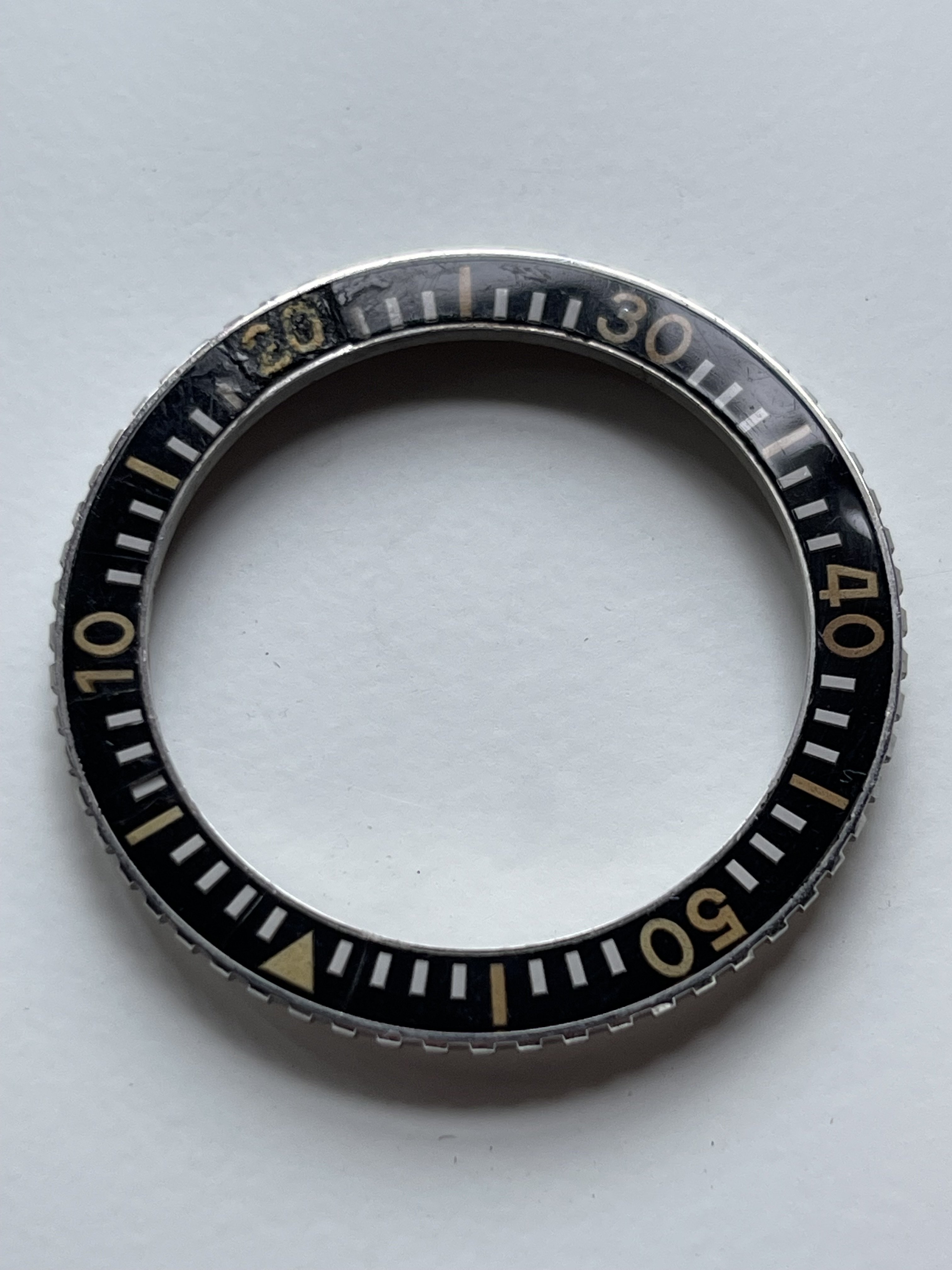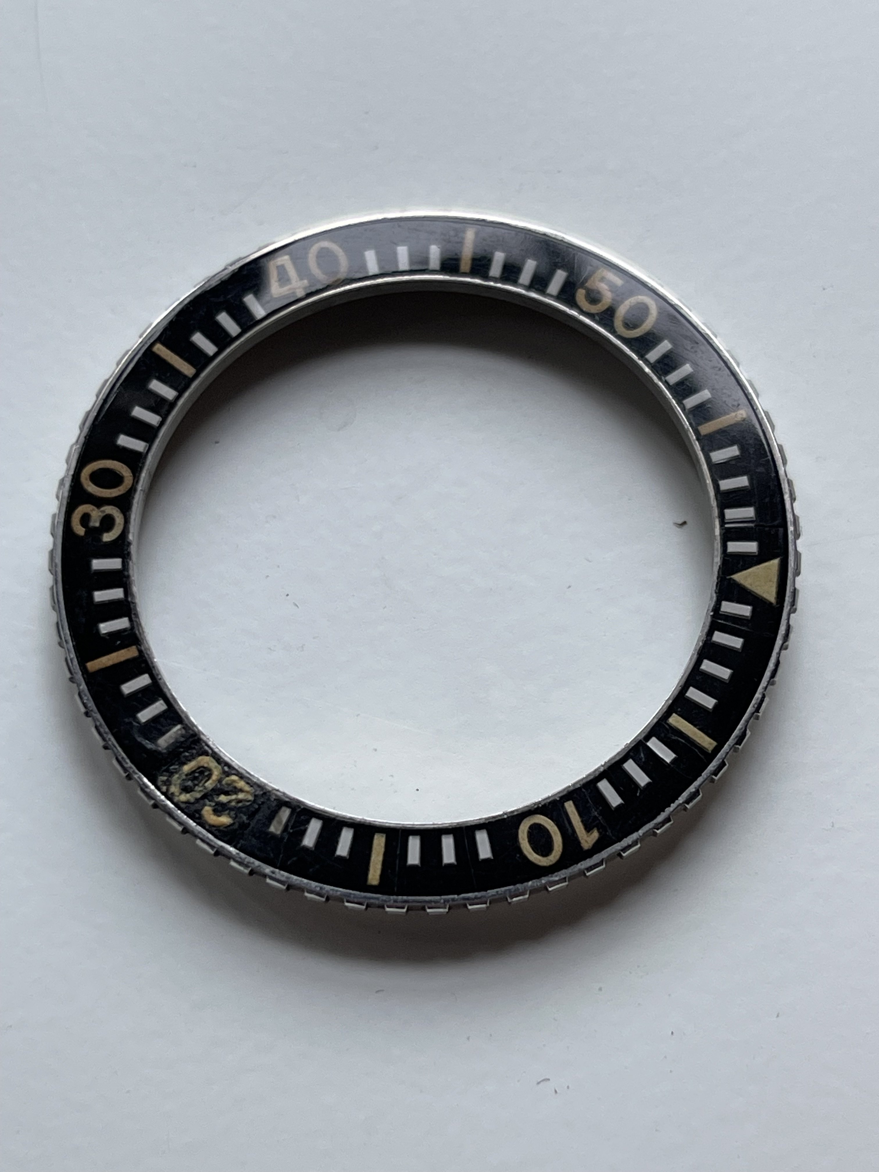 for sale here is an old complete bezel with insert for an Omega Seamaster 300, for the references 165.024 and 166.024.