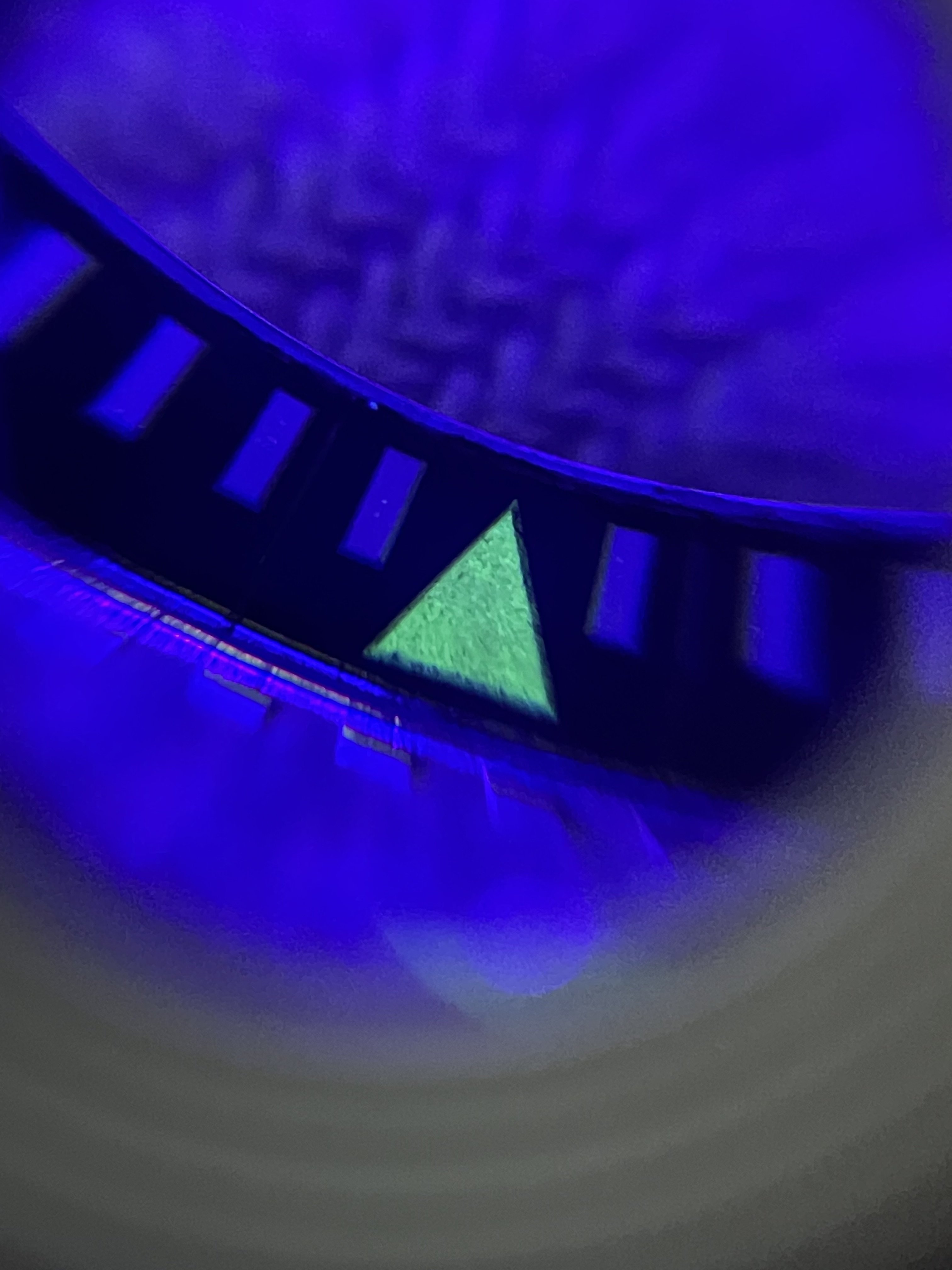 After illuminating under UV the tritium fades within a few seconds (as it should).