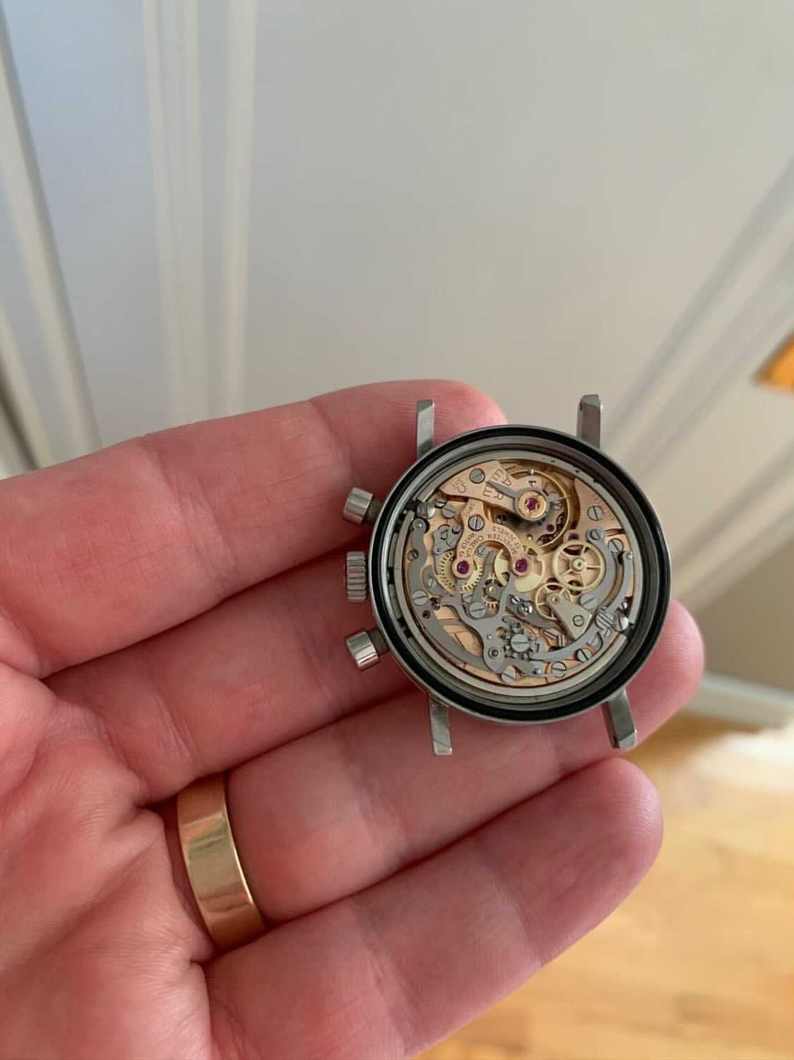 Movement: legendary original manual winding 321 caliber omega chronograph movement. 17 jewels. I just had it COMPLETELY SERVICED by my watchmaker PLUS a NEW mainspring and gasket. RUNS GREAT.